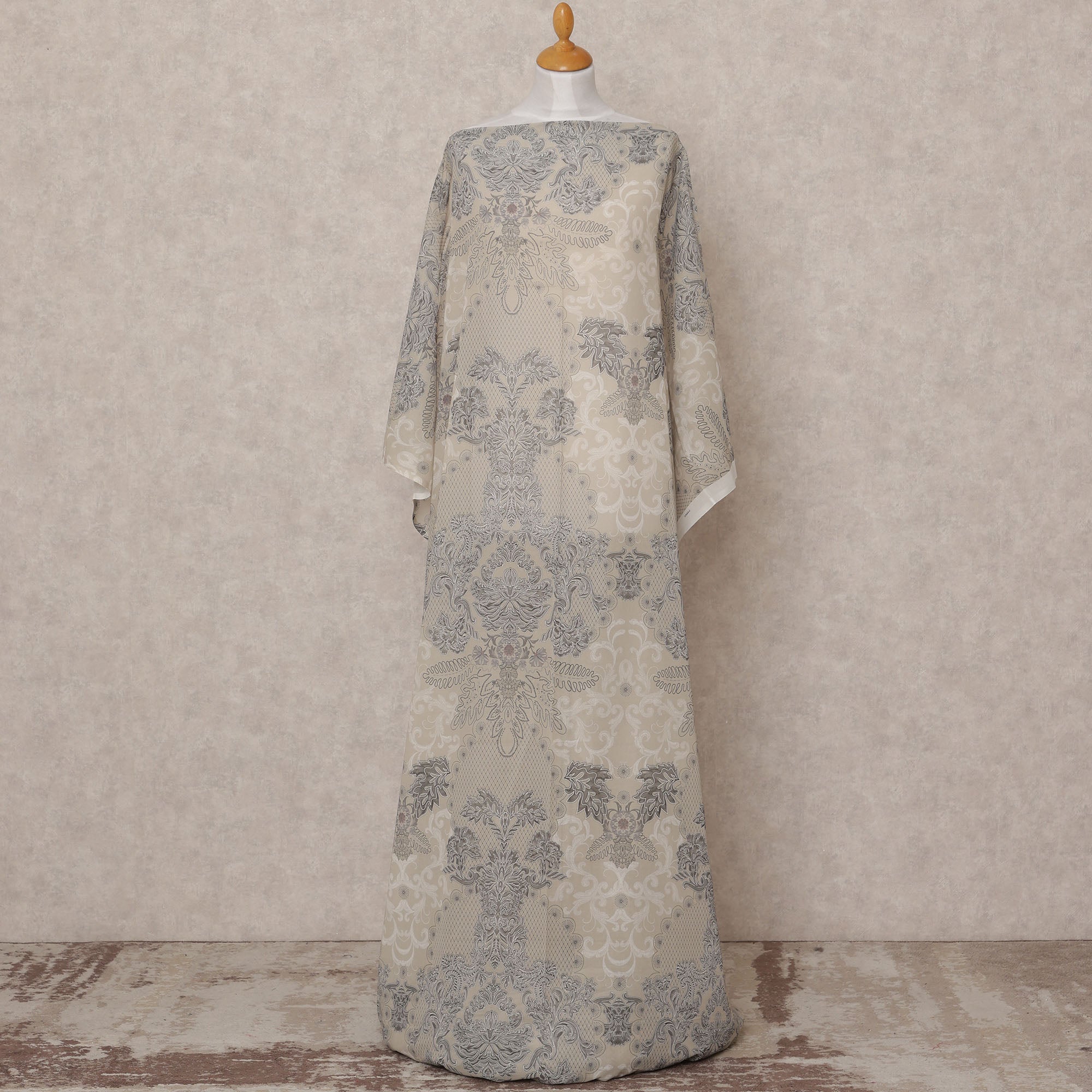 Beige Grey Patterned Somali Dirac Cotton Voile Fabric, 3.5 Mtrs, Width 150 Cms, Made in Italy-D24623
