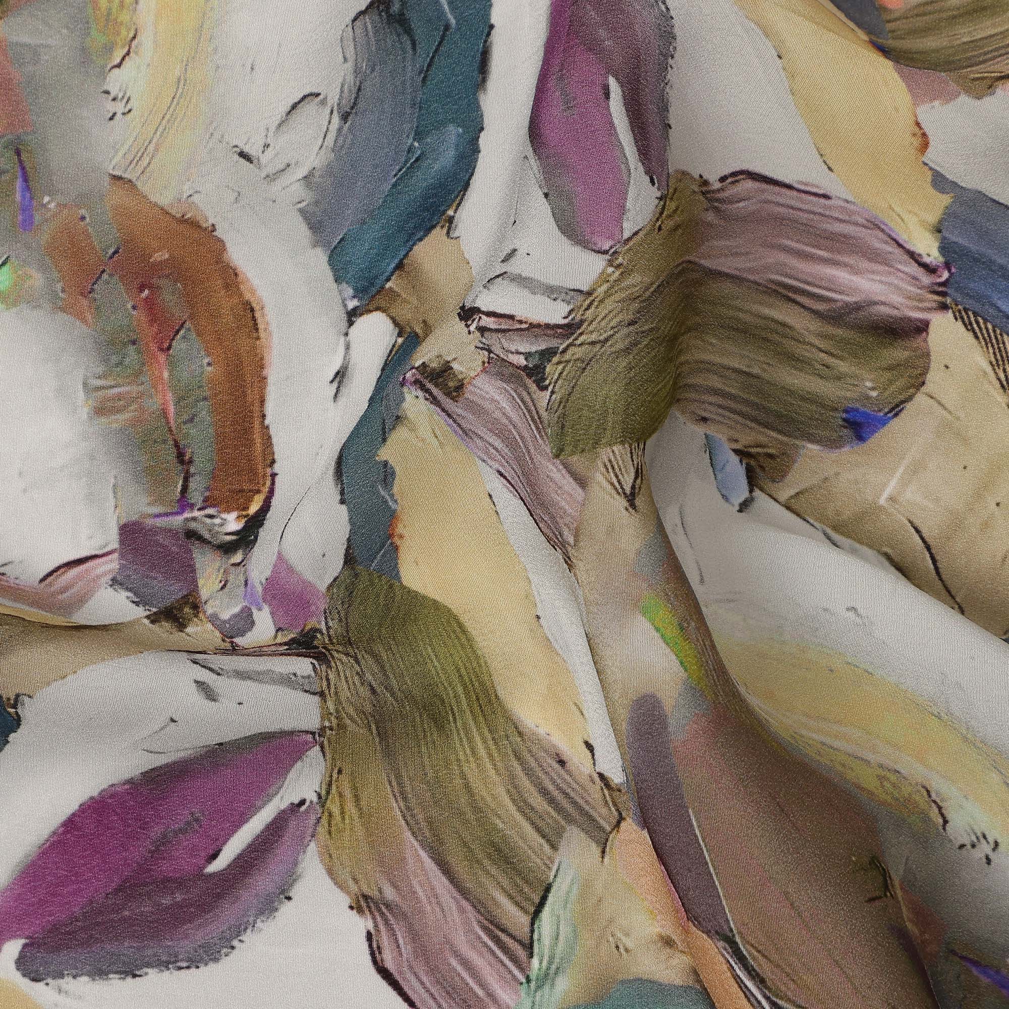 Beige Multicolor Abstract Brushstroke Printed Viscose Crepe Fabric, 110 Cms, India-D27068