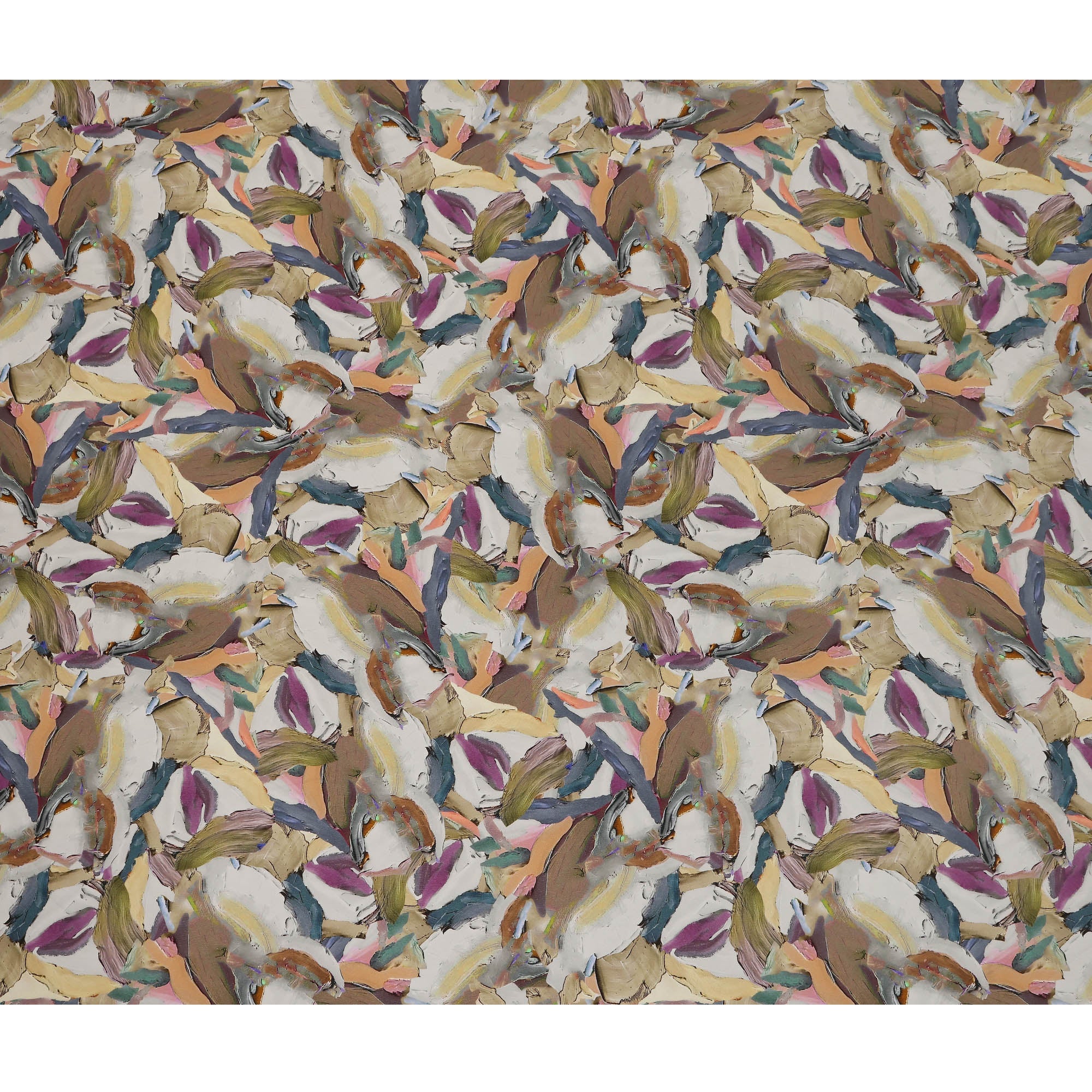 Soft beige base enhanced with multicolor abstract brushstroke print for a sophisticated contemporary look.