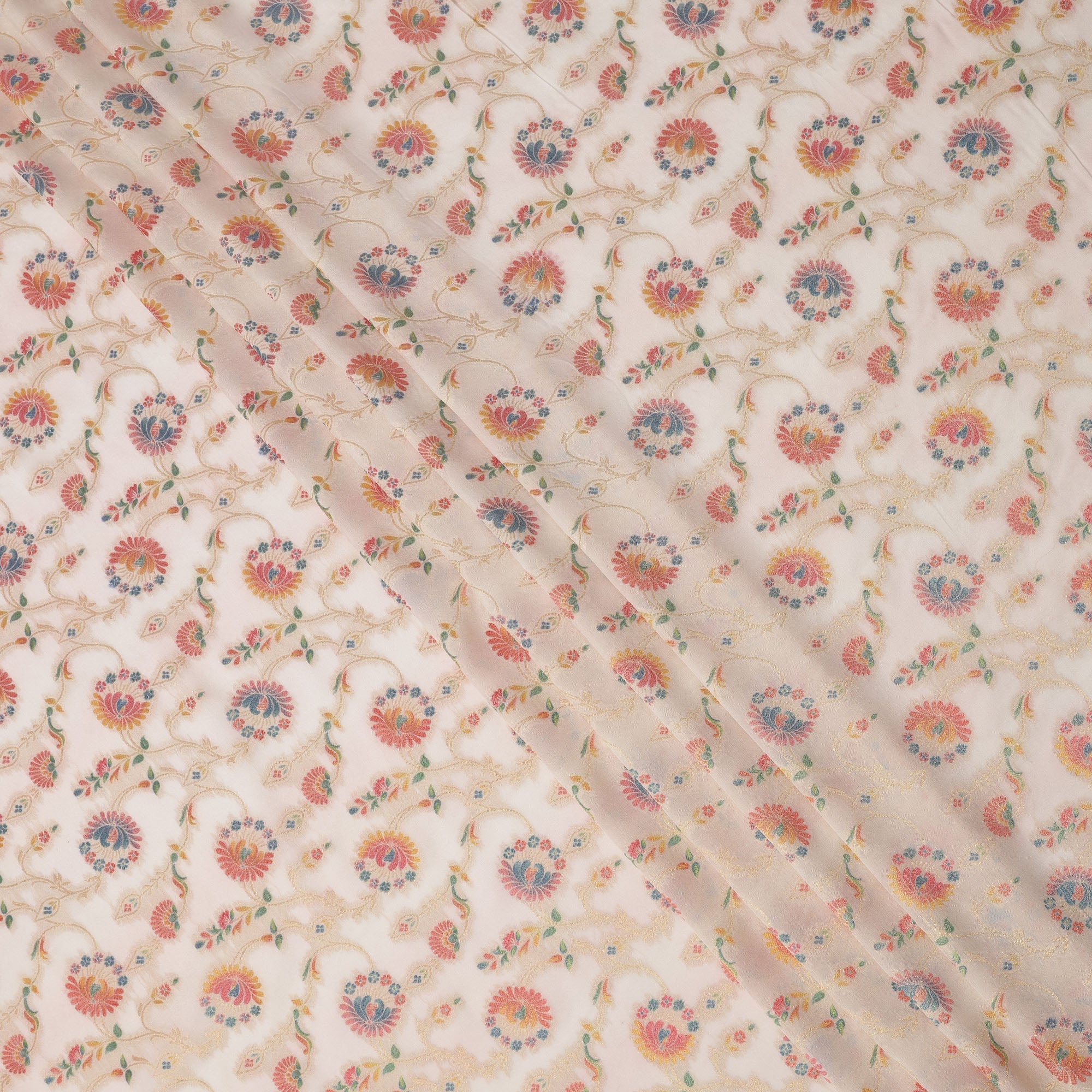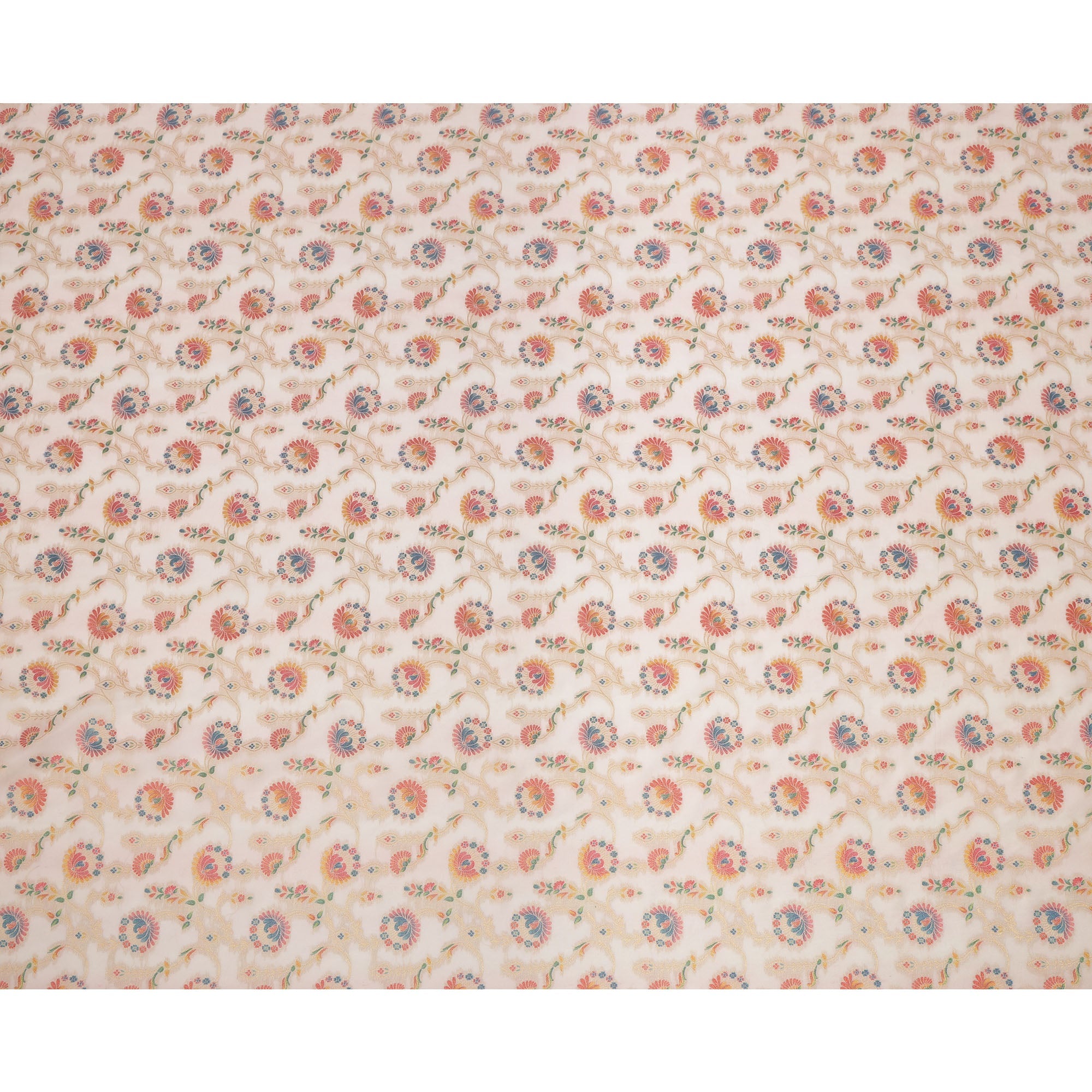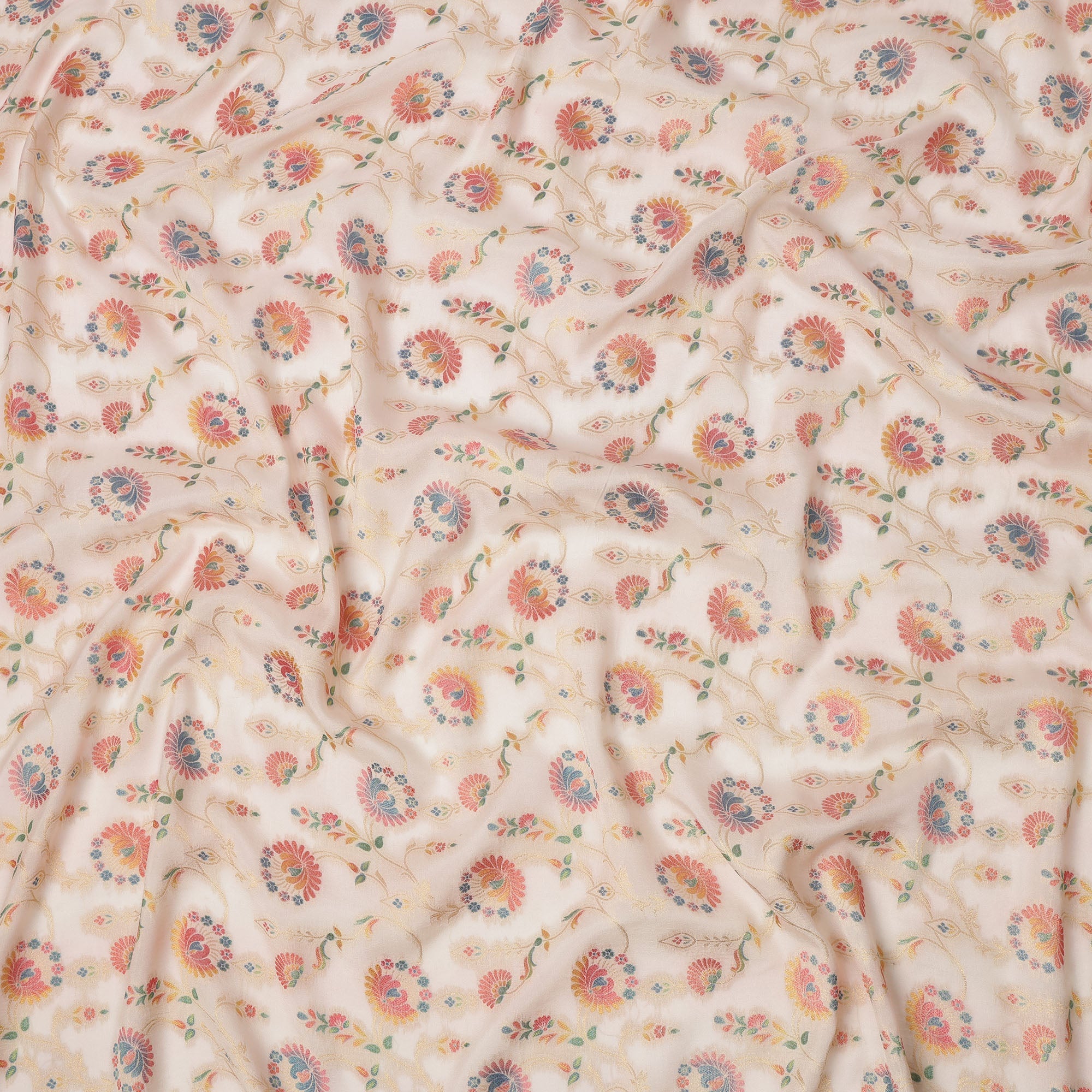 Beige Multicolor Floral Design Viscose Fabric with Metallic Detailing, 110 Cms Width, India-D24794