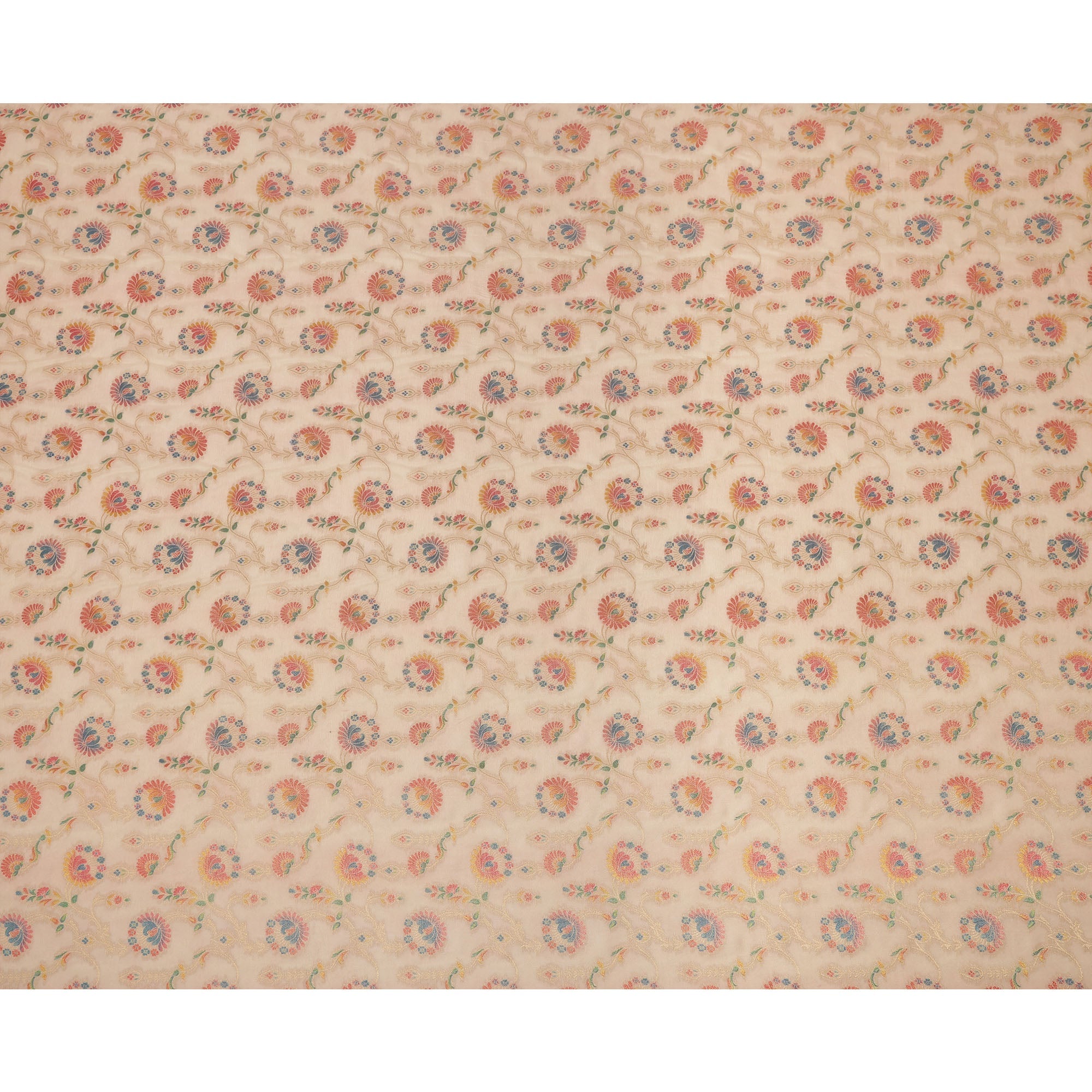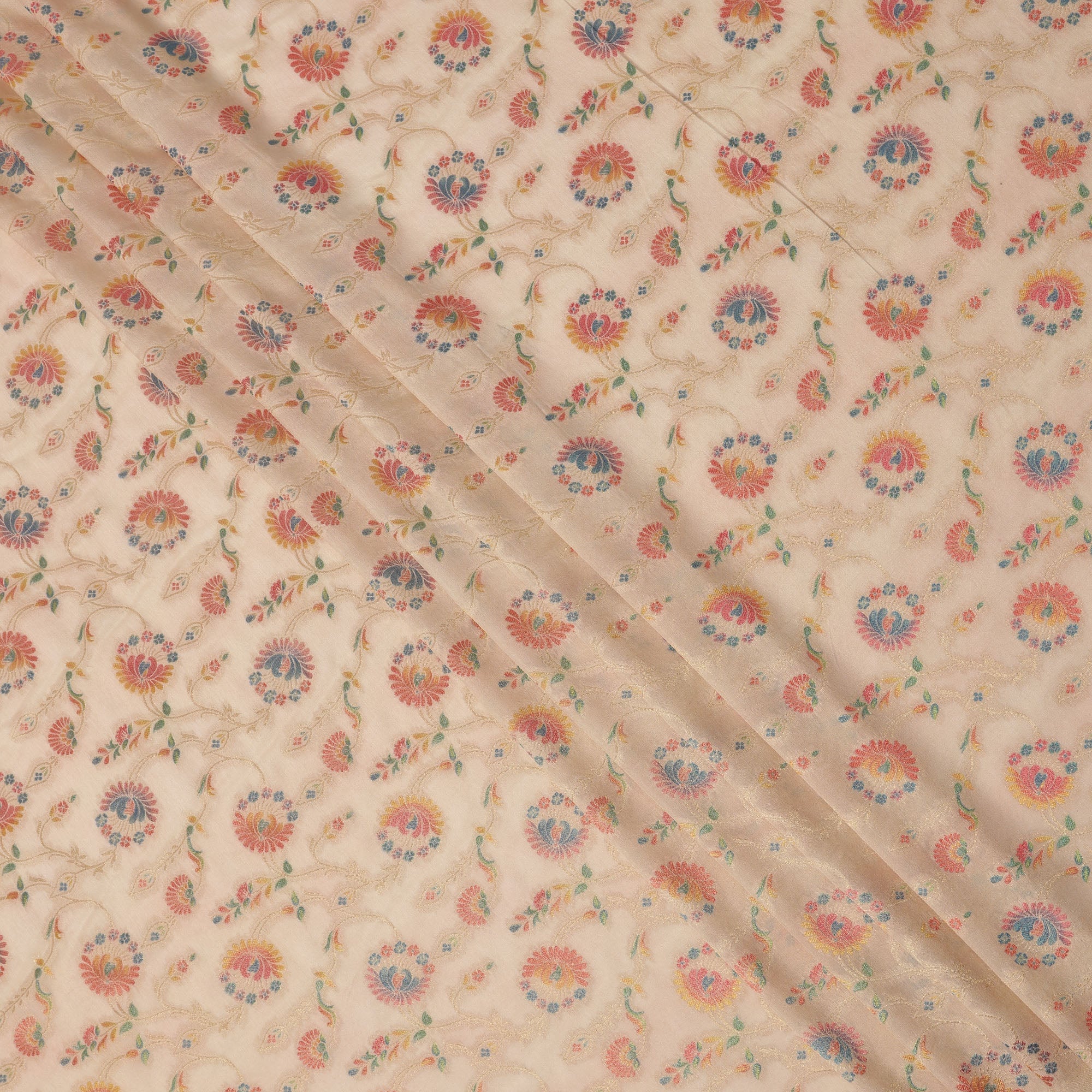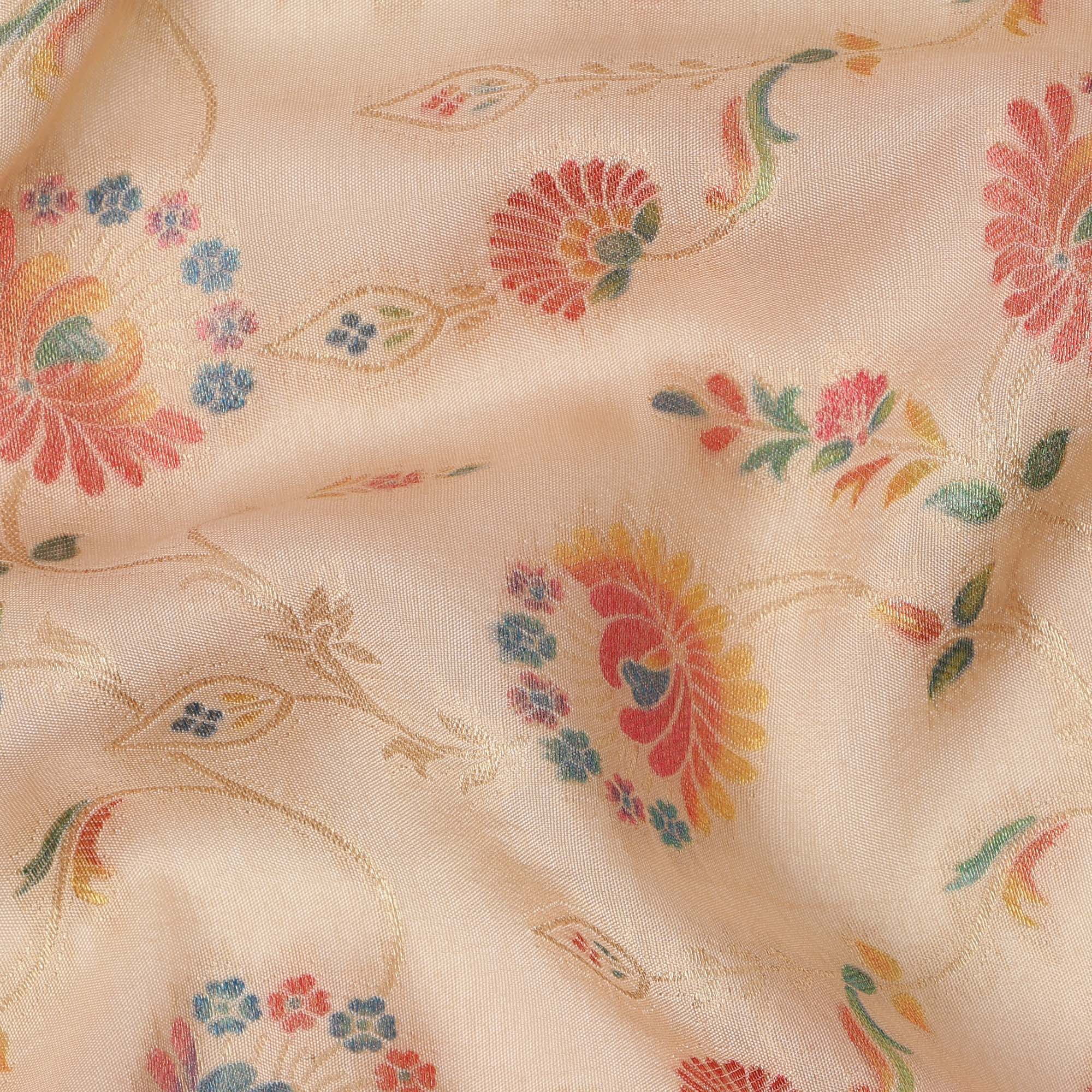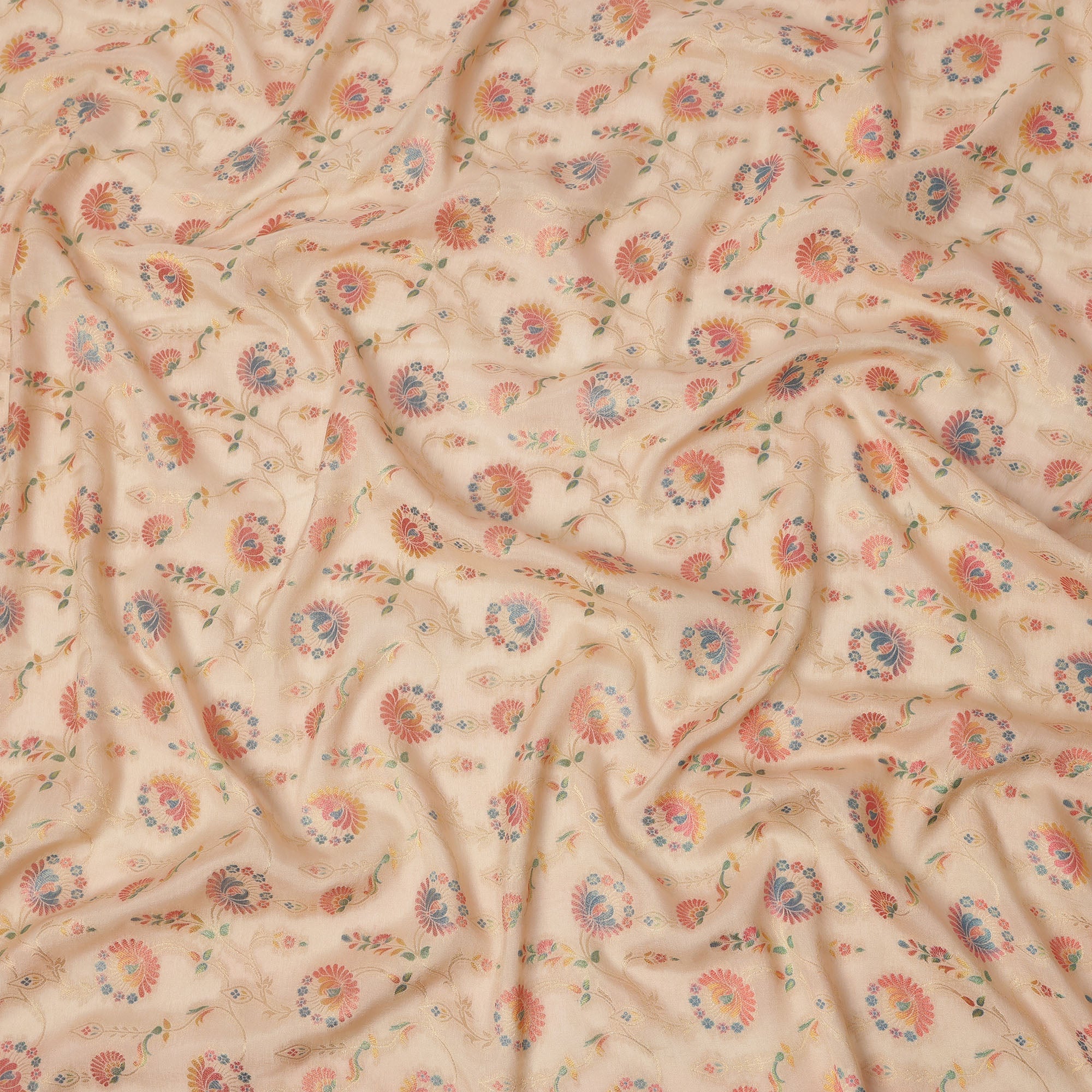 Beige Multicolor Floral Design Viscose Fabric with Metallic Detailing, 110 Cms Width, India-D24799