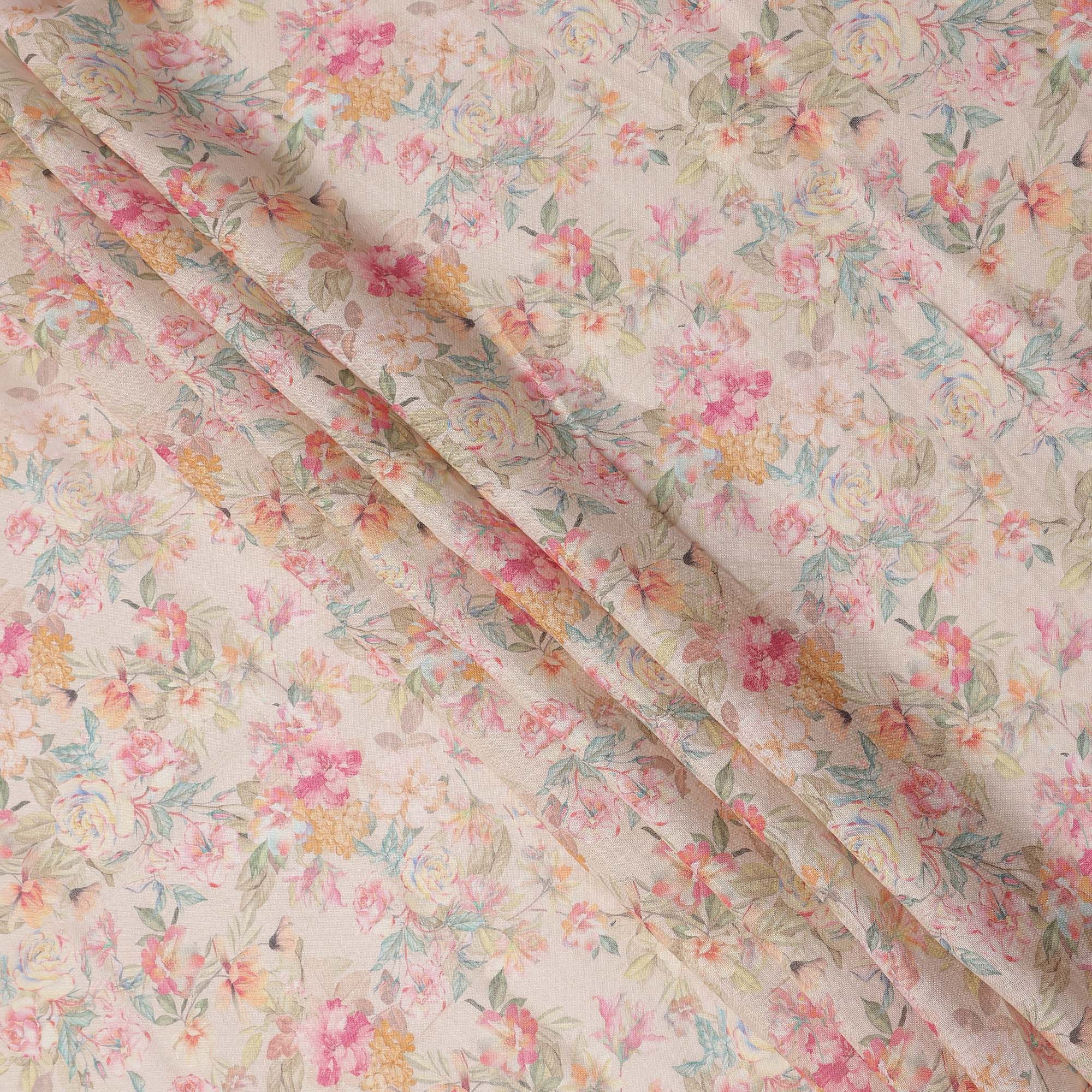 Beige base adorned with multicolor pastel floral prints