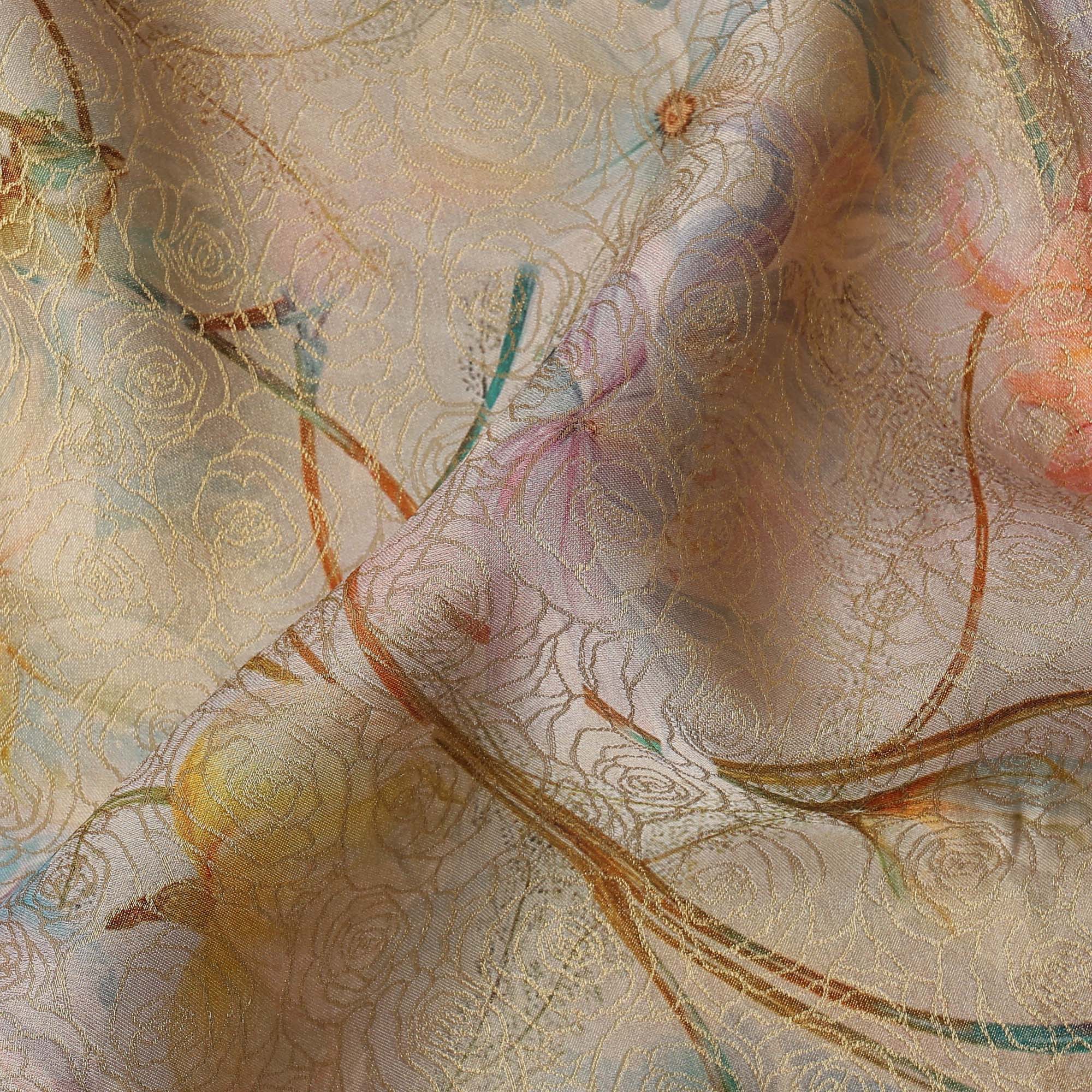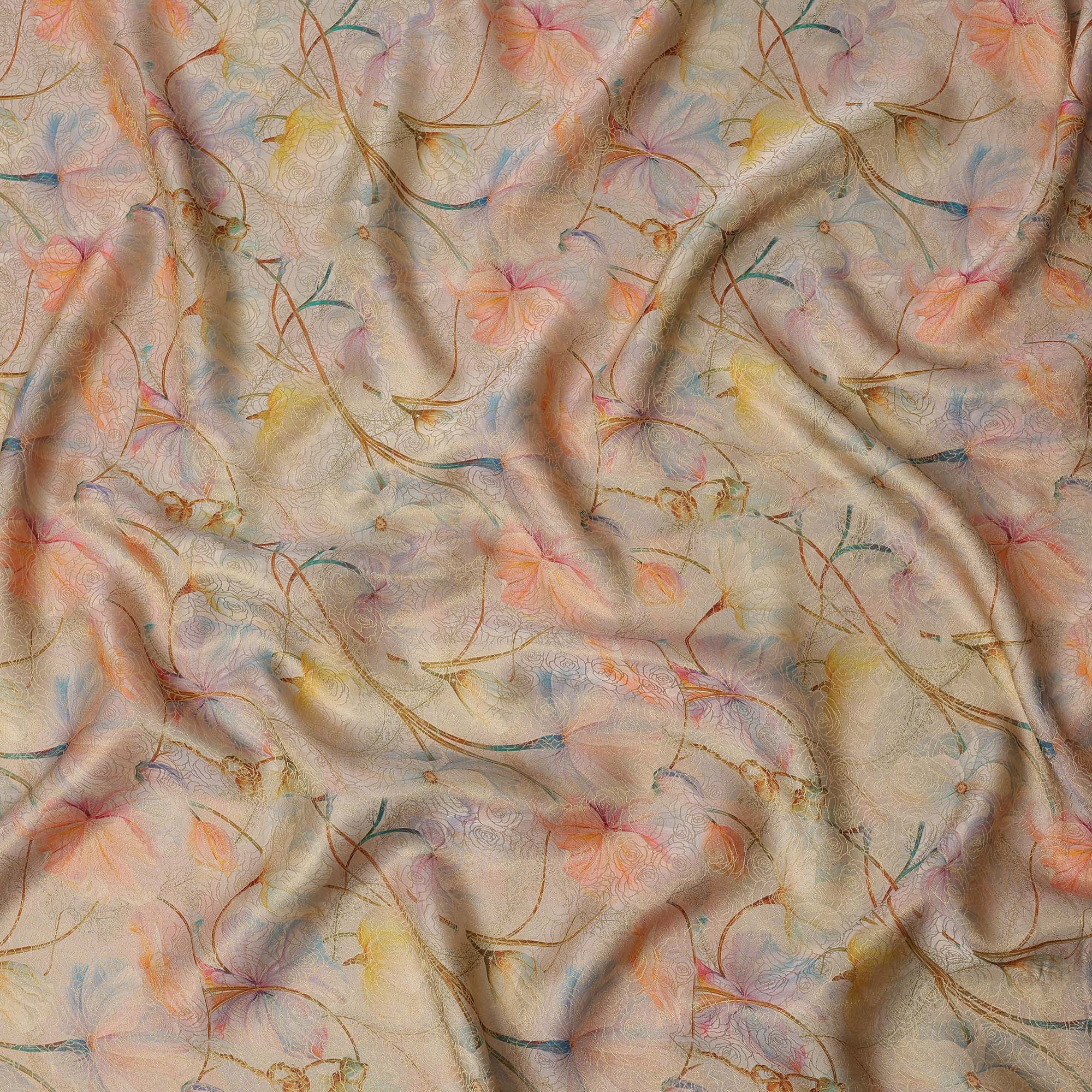 Beige Multicolor Floral Printed Synthetic Satin Fabric, 110 Cms Width, Made in India-D26240
