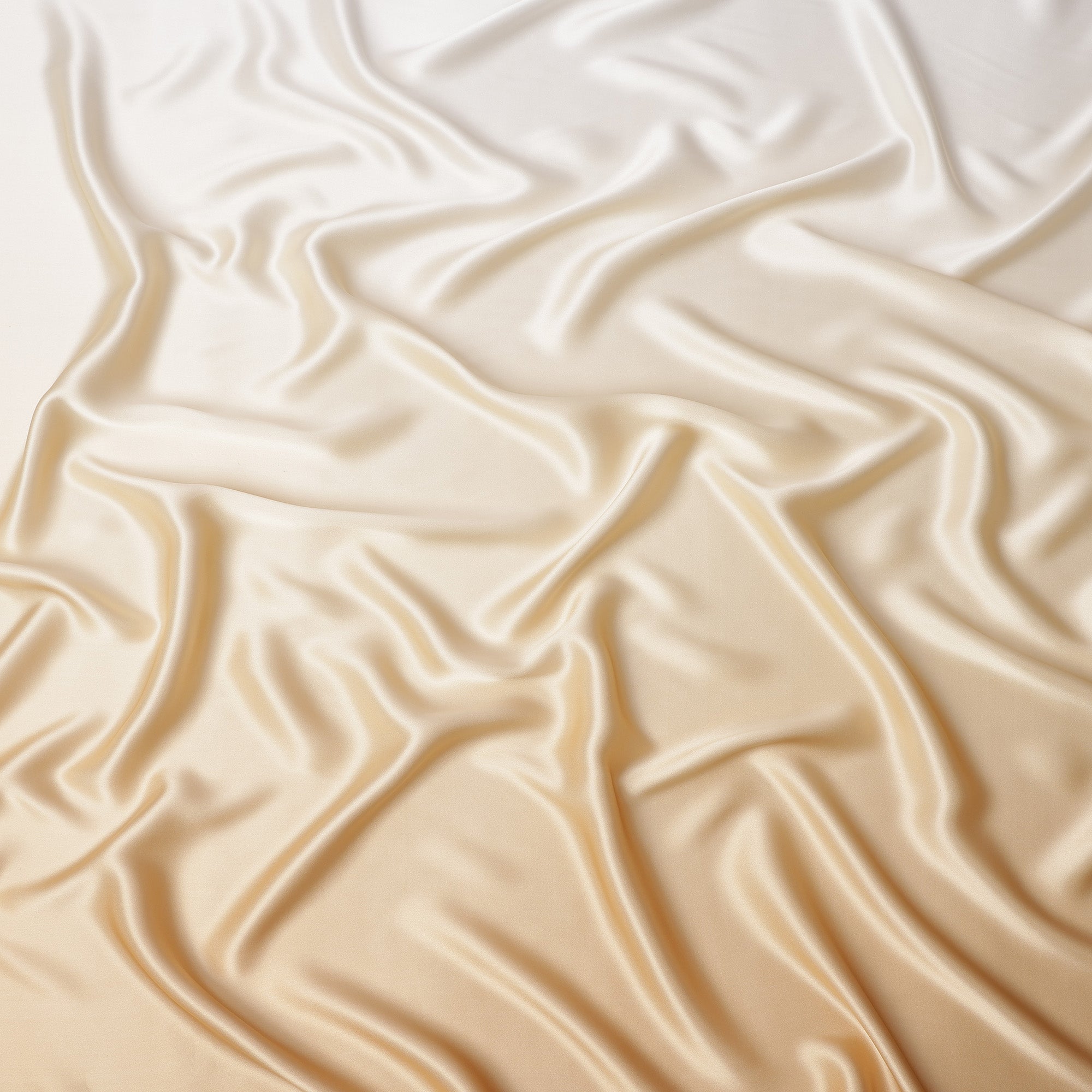 Beige ombre dyed pure silk satin fabric with a luxurious sheen