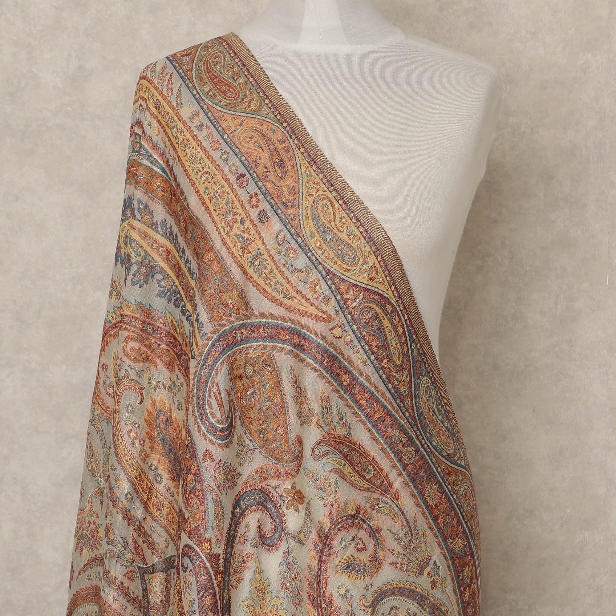 Elegant beige base highlighted with intricate multicolor paisley designs