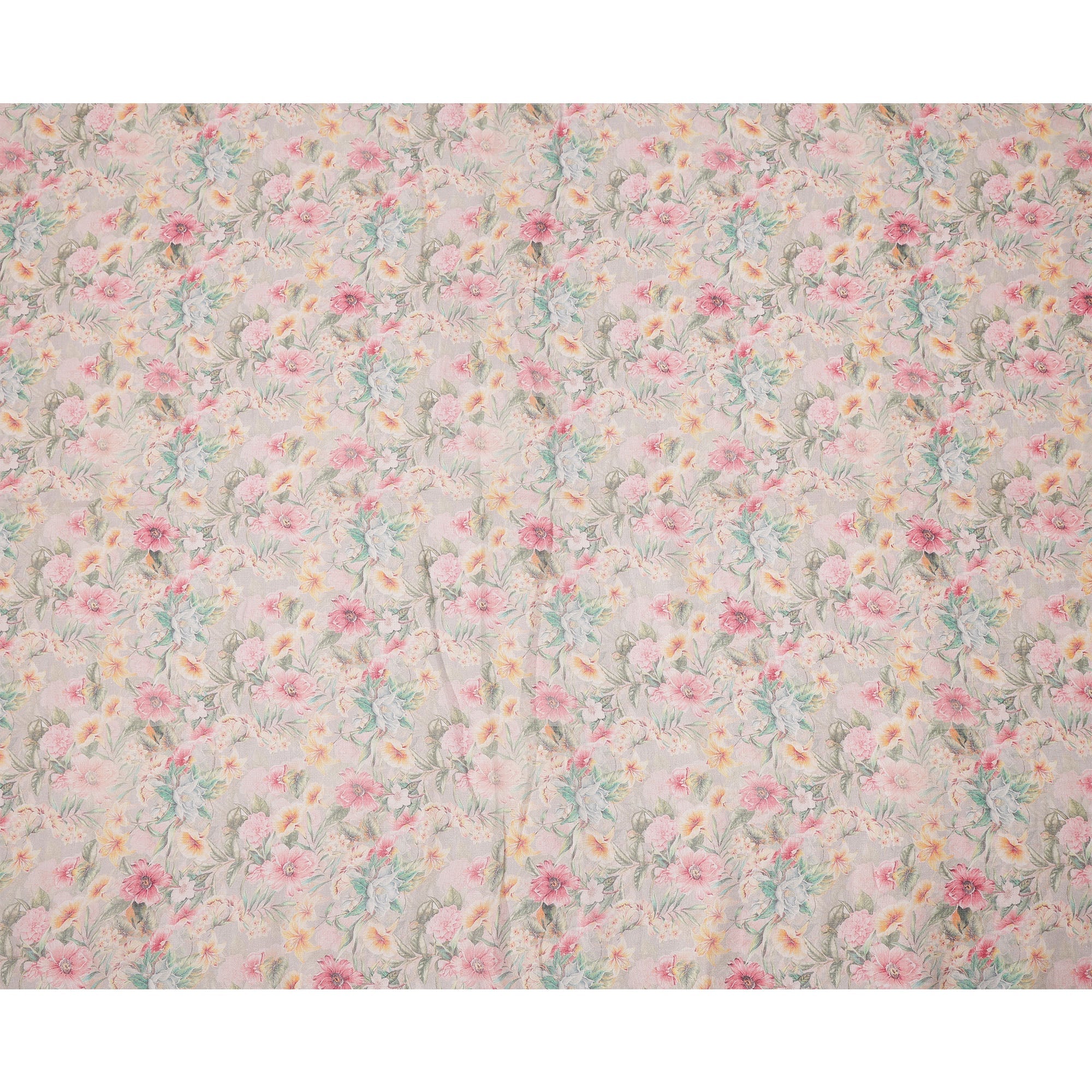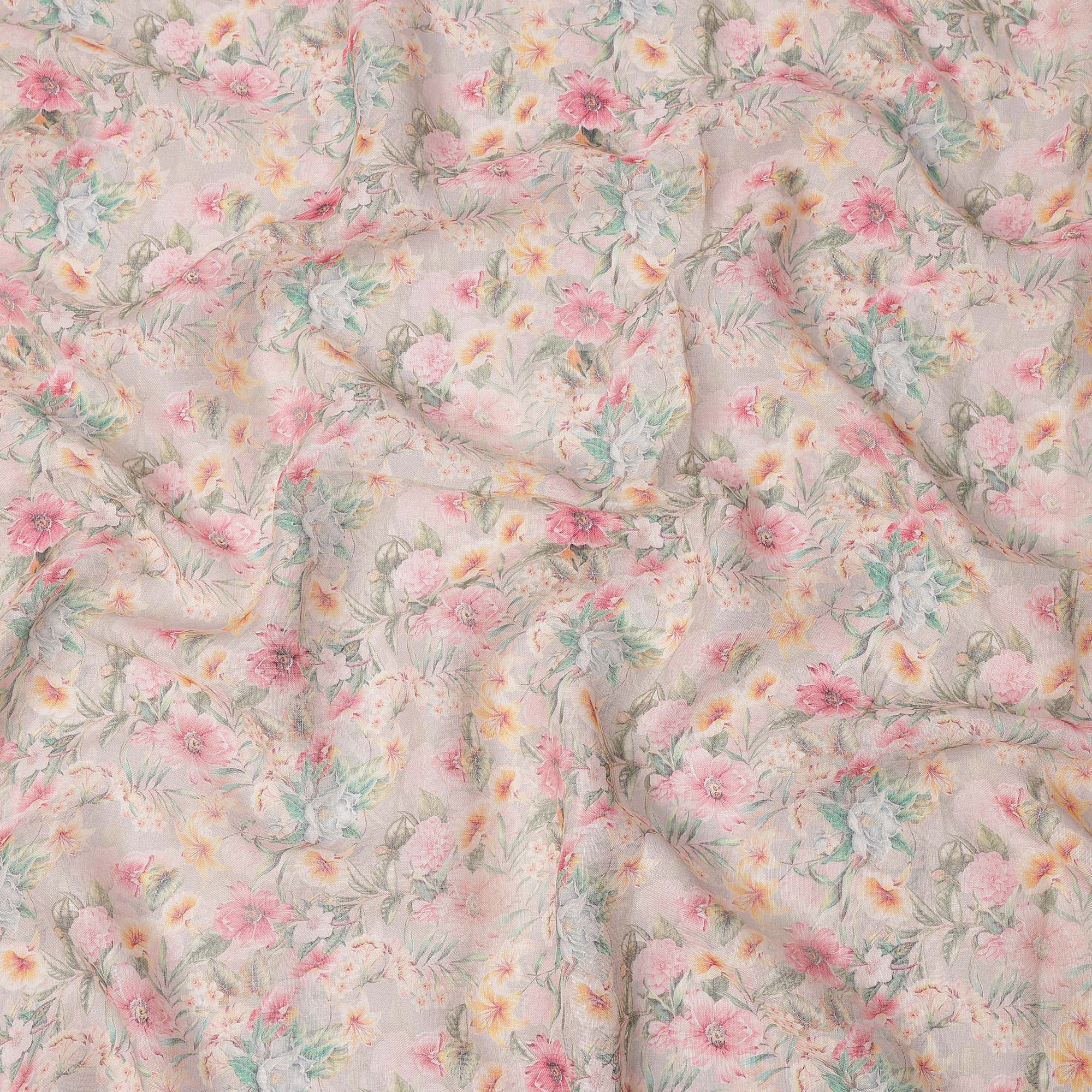 Beige Pastel Floral Printed Cotton Linen Fabric, 110 Cms Width, India-D25187