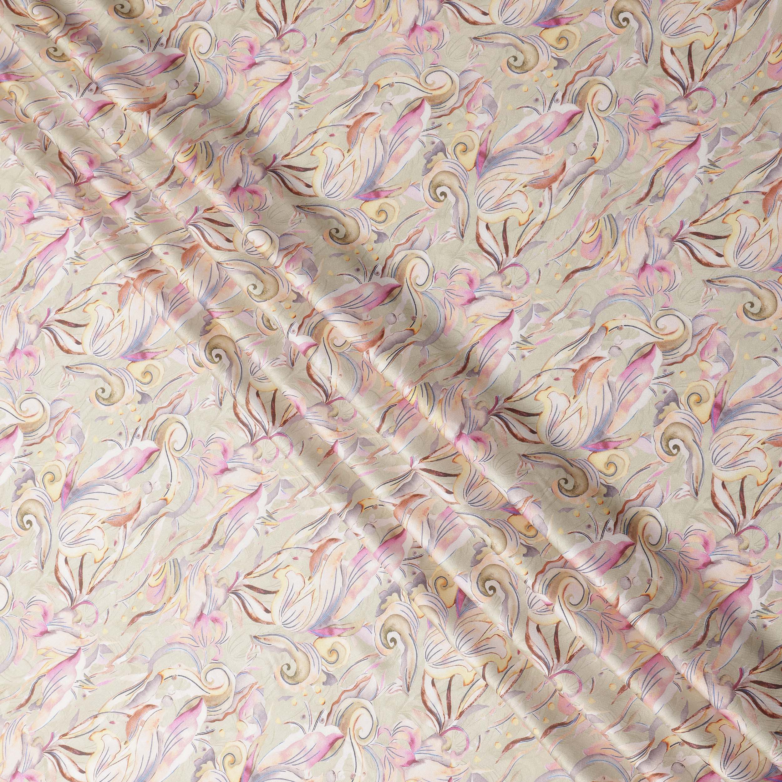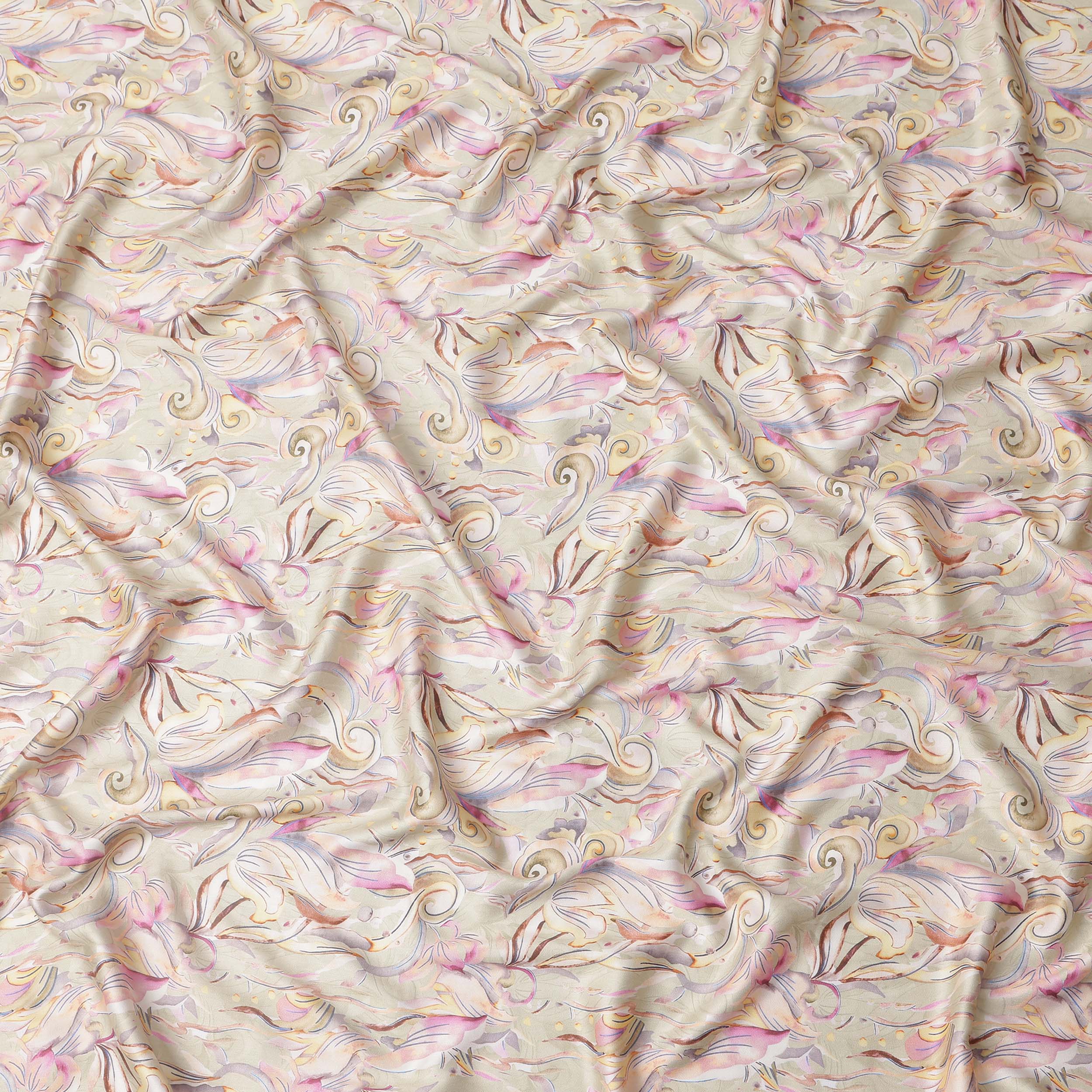 Premium Beige Pastel Swirl Print Pure Cotton Satin Fabric with soft sheen