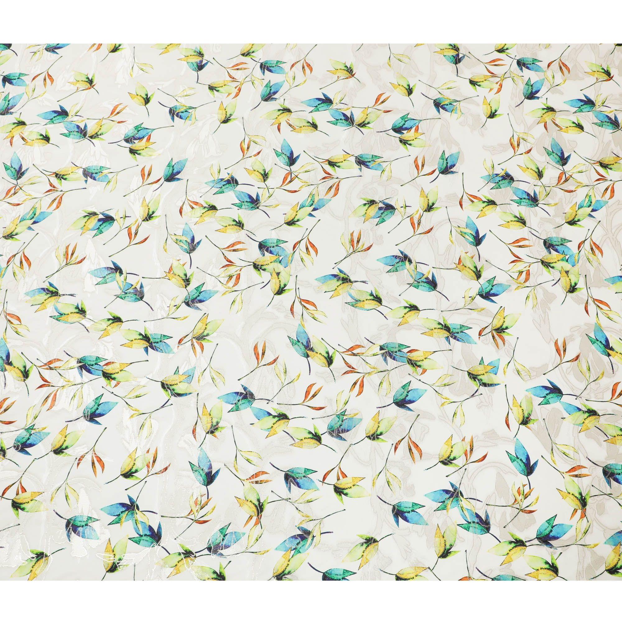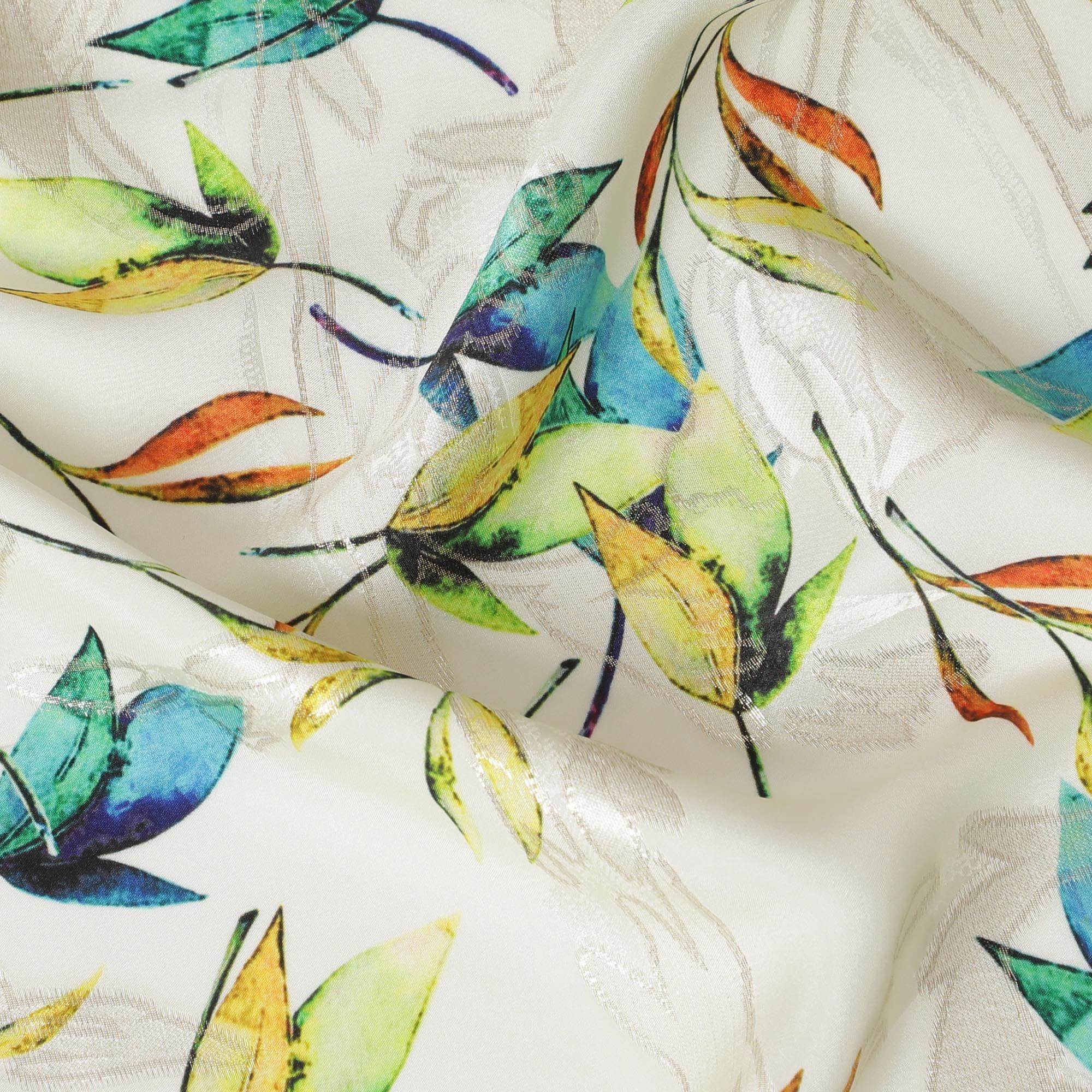 Beige Premium pure silk crepe fabric with multicolor print having gold metallic lurex in floral design-D15735