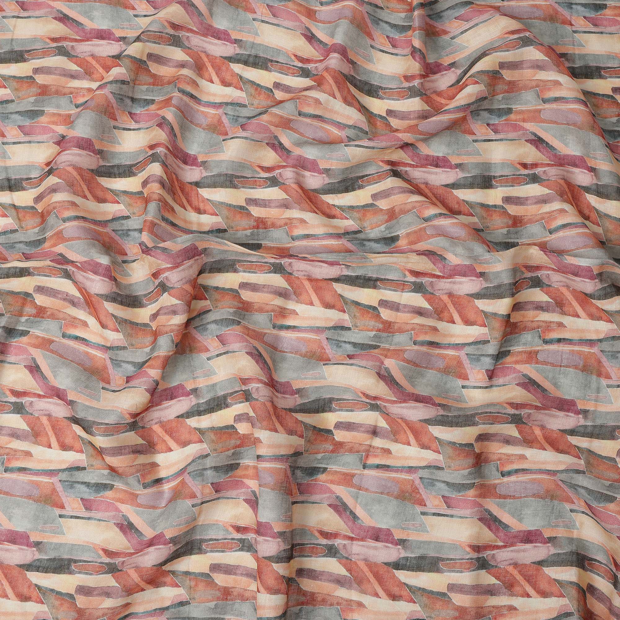 Beige Rust Grey Abstract Brushstroke Print Blended Linen Fabric, 110 Cms Width, Made in India-D26189