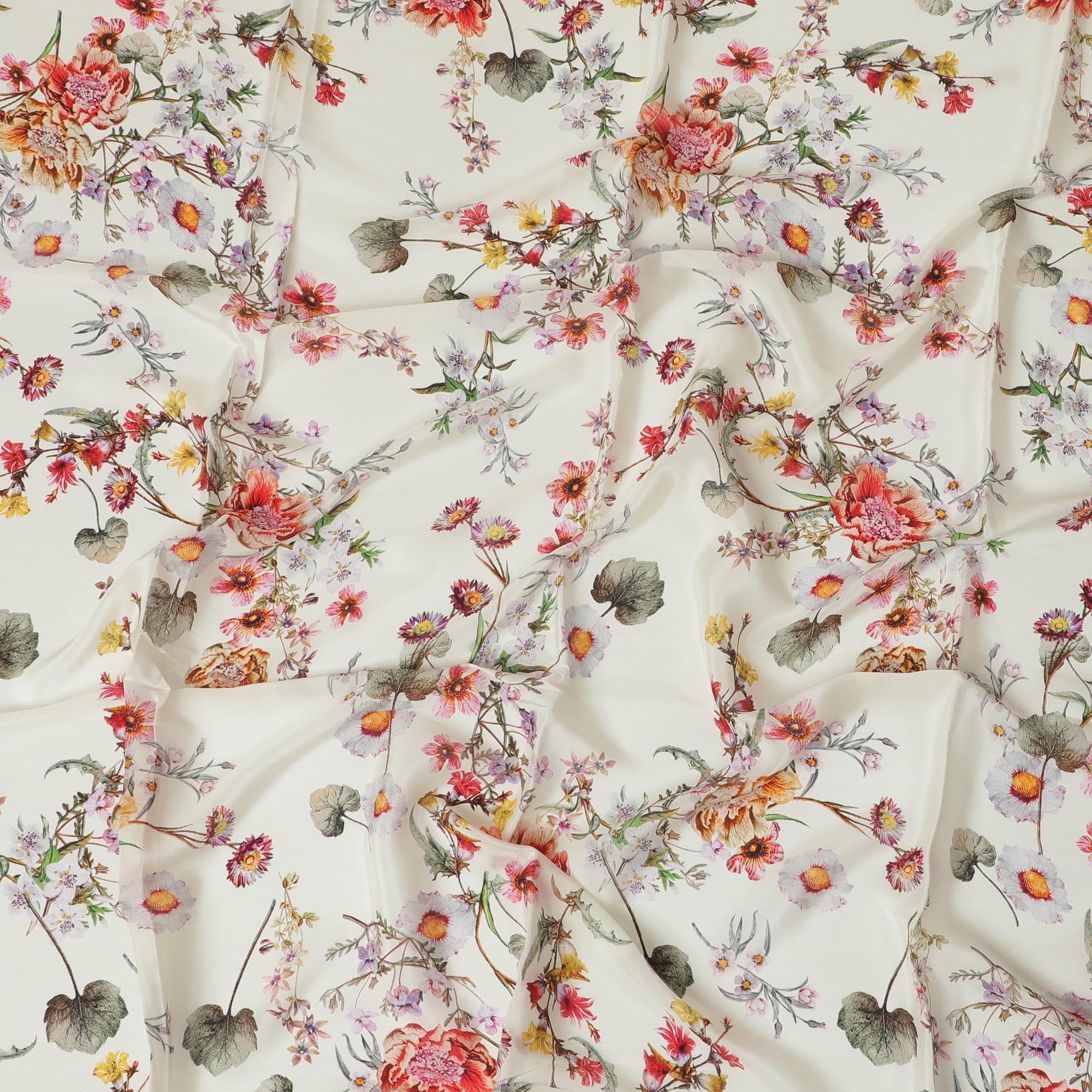 • Sale -25% Beige synthetic crepe fabric with multicolor print in floral design-D10003