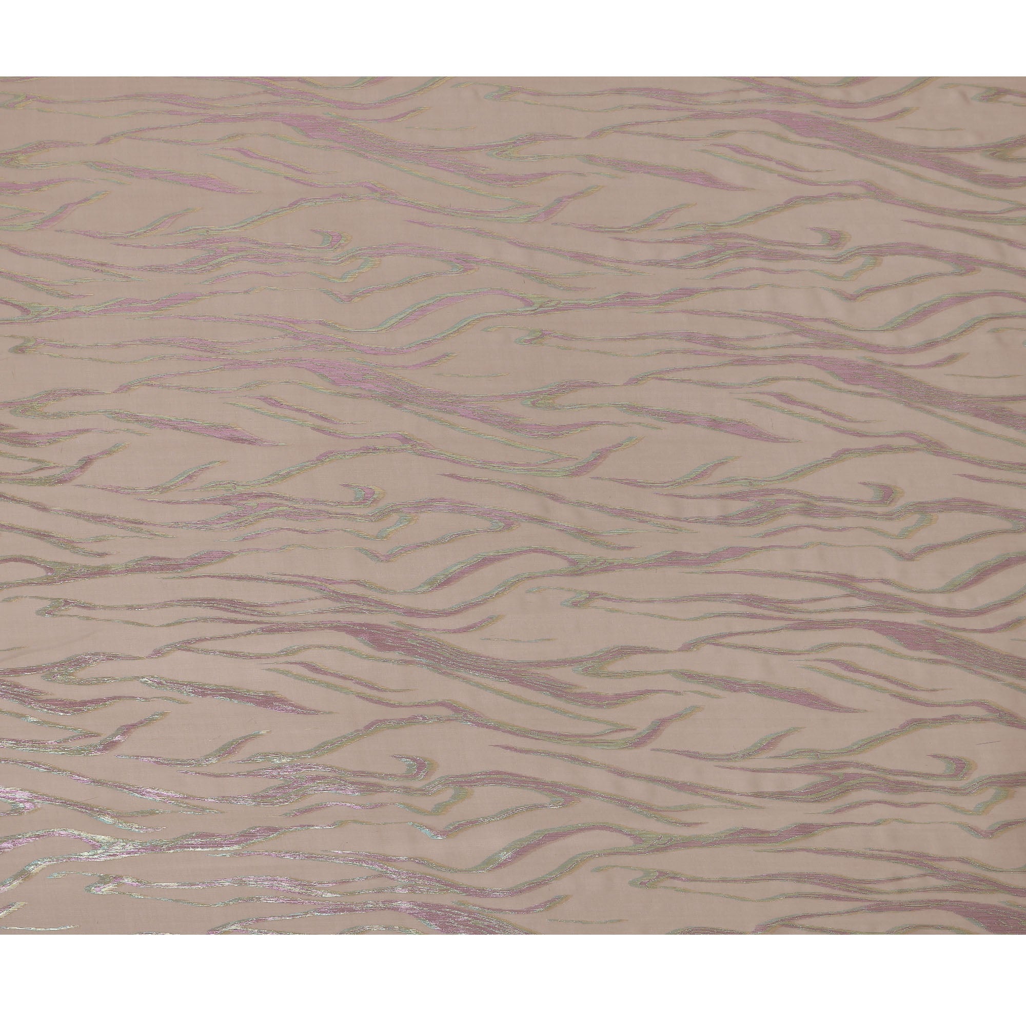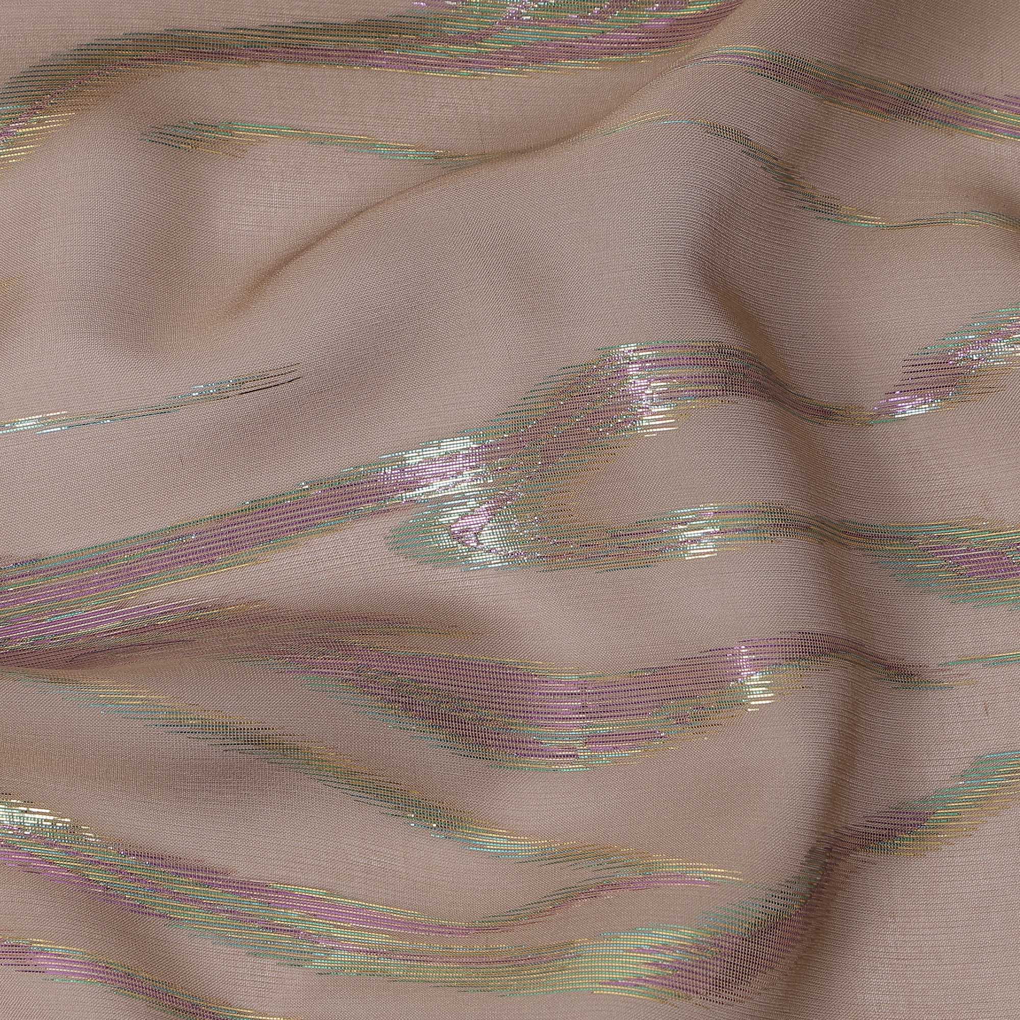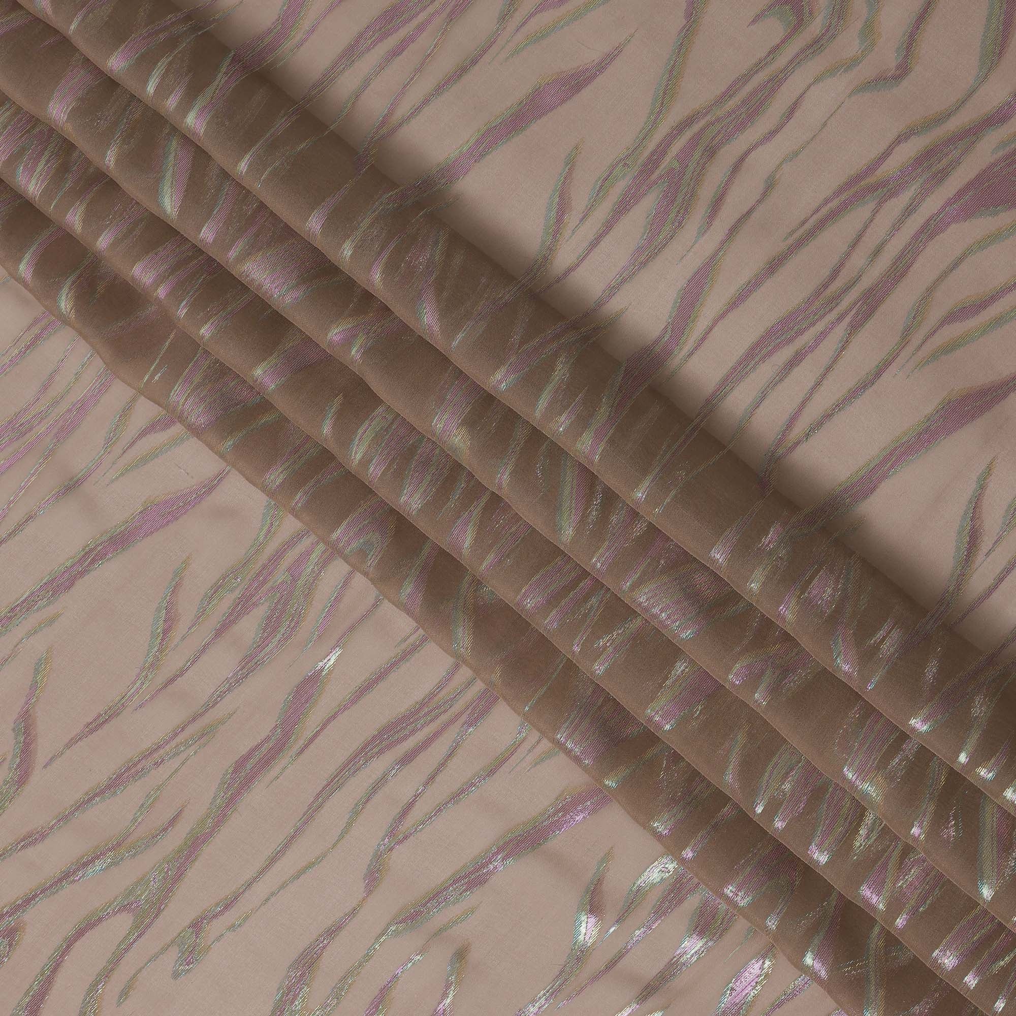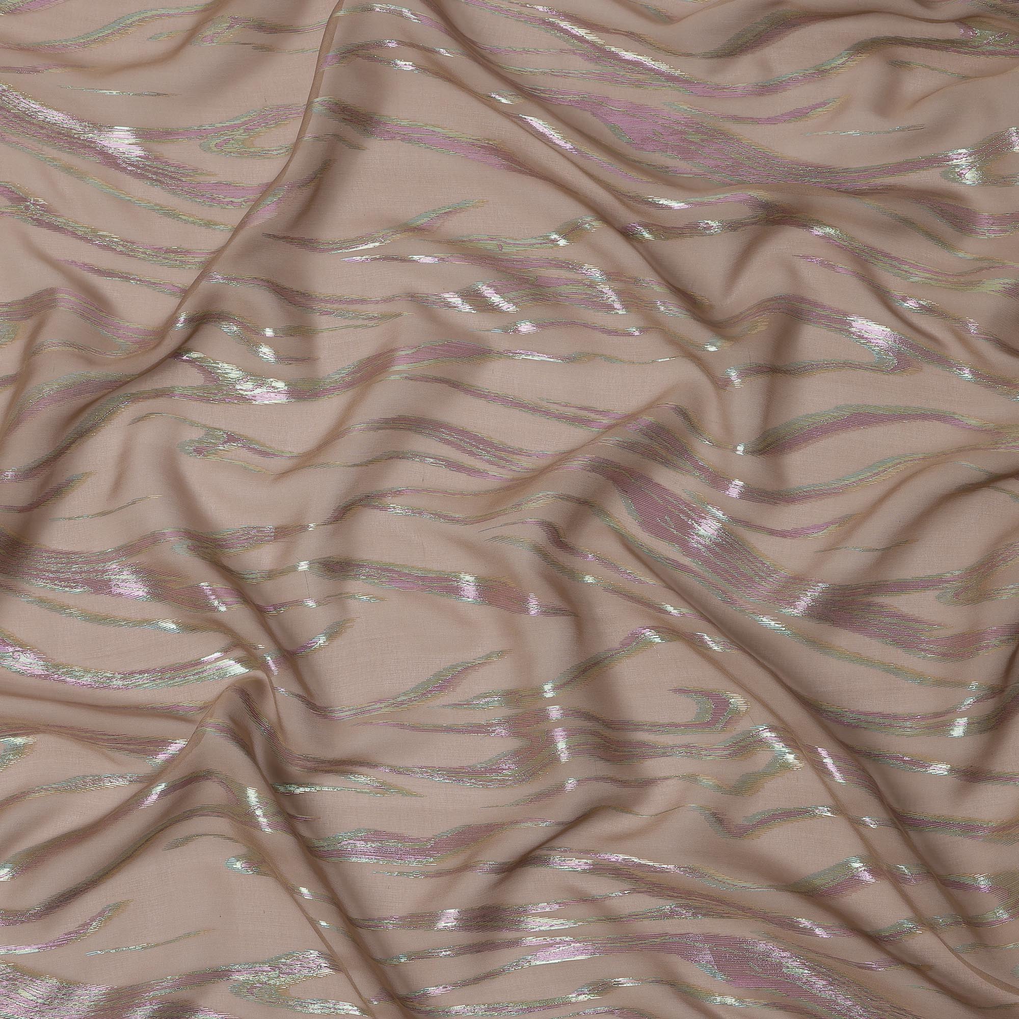 Beige Wave Pattern Silk Chiffon Fabric with Metallic Lurex, 110 Cms, South Korea-D25494