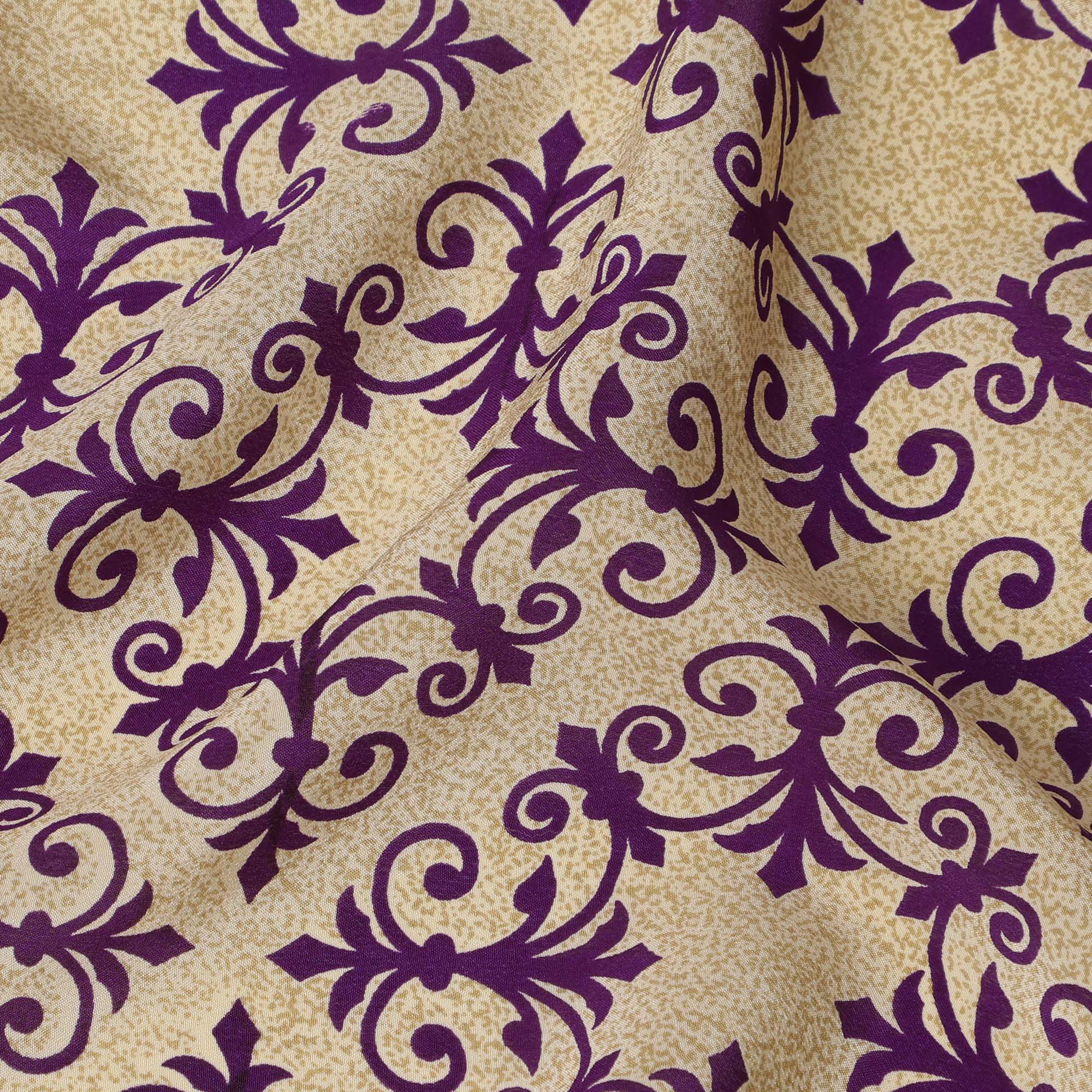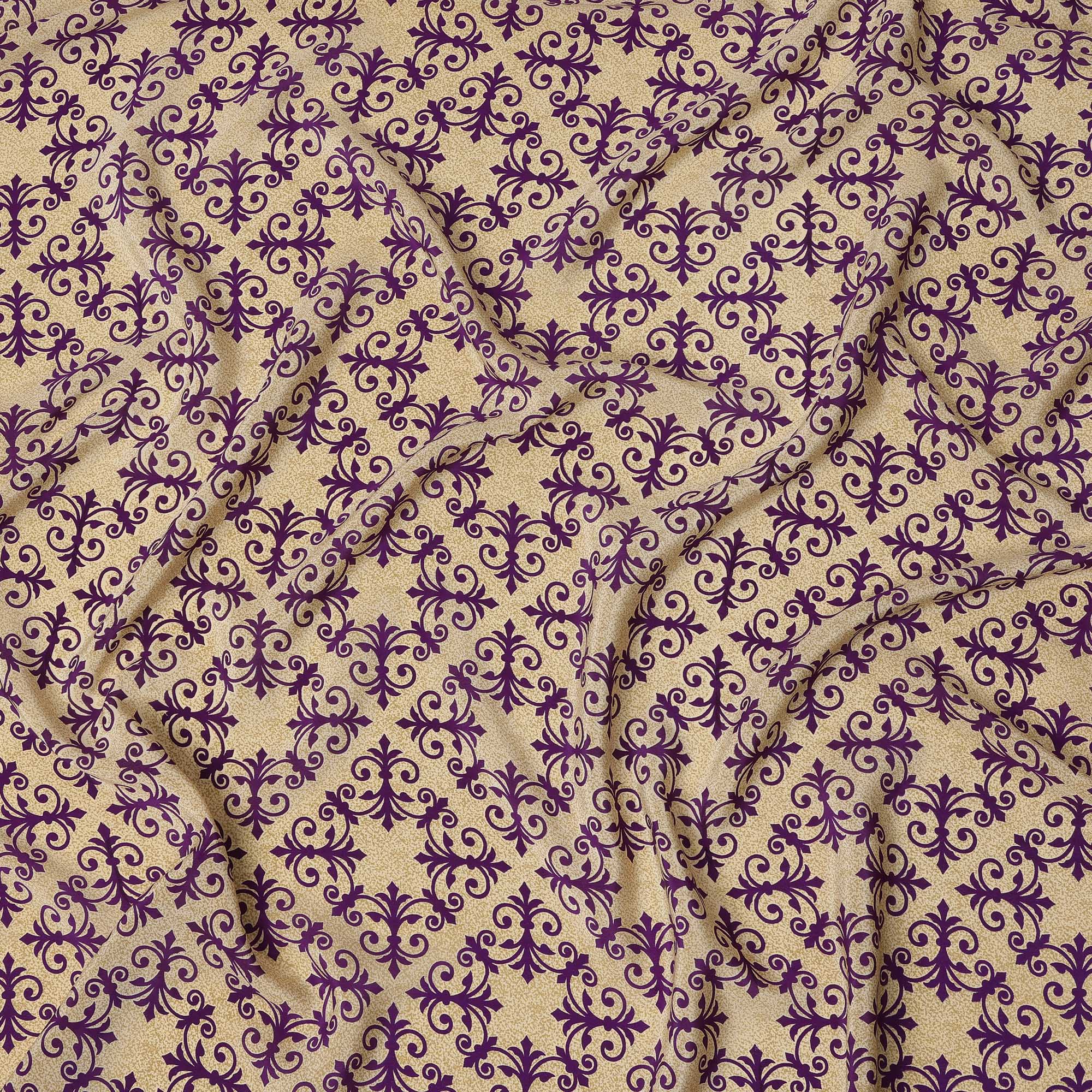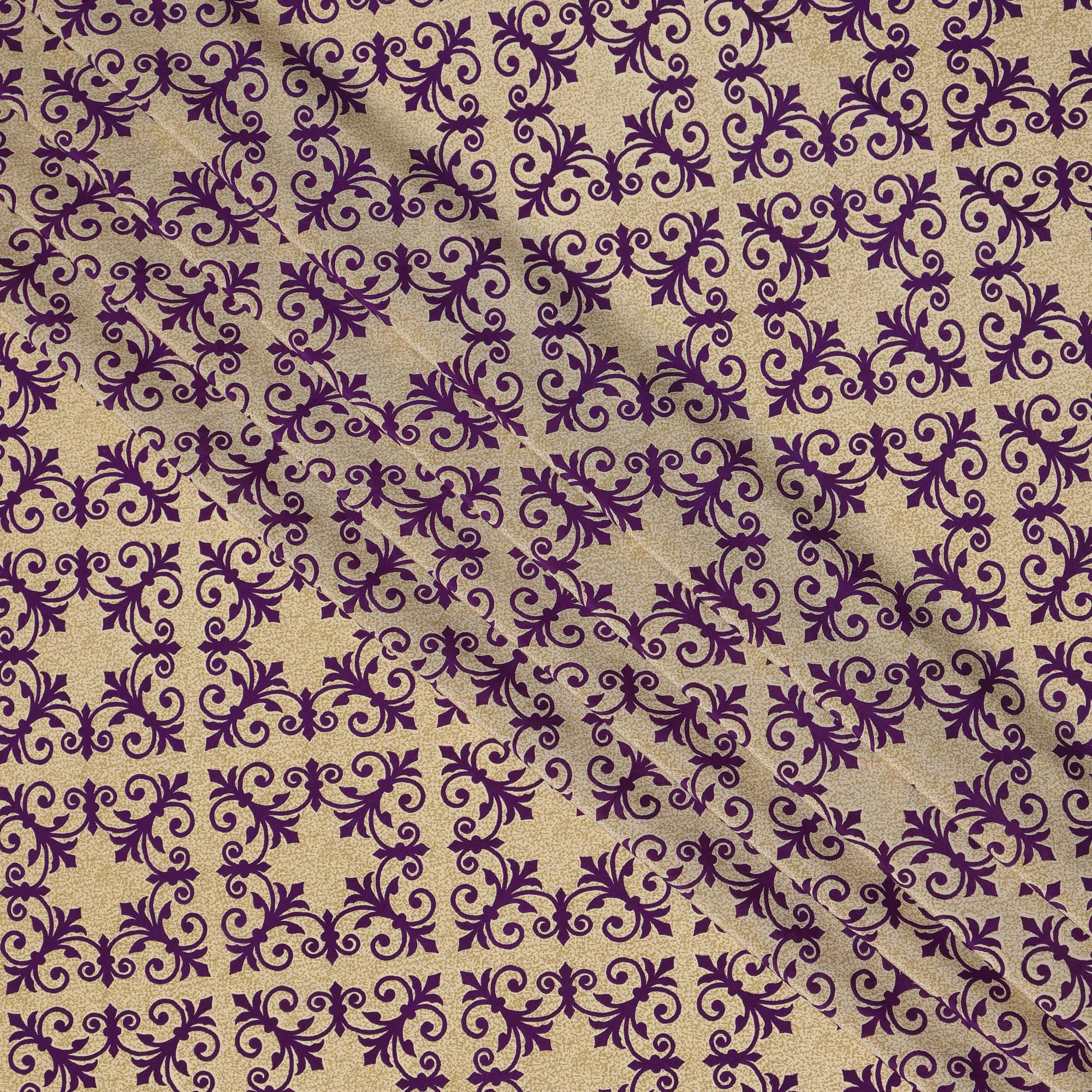 Beige with Purple Baroque Tile Print Pure Silk Crepe Fabric, 110 Cms Width, Made in India-D23159