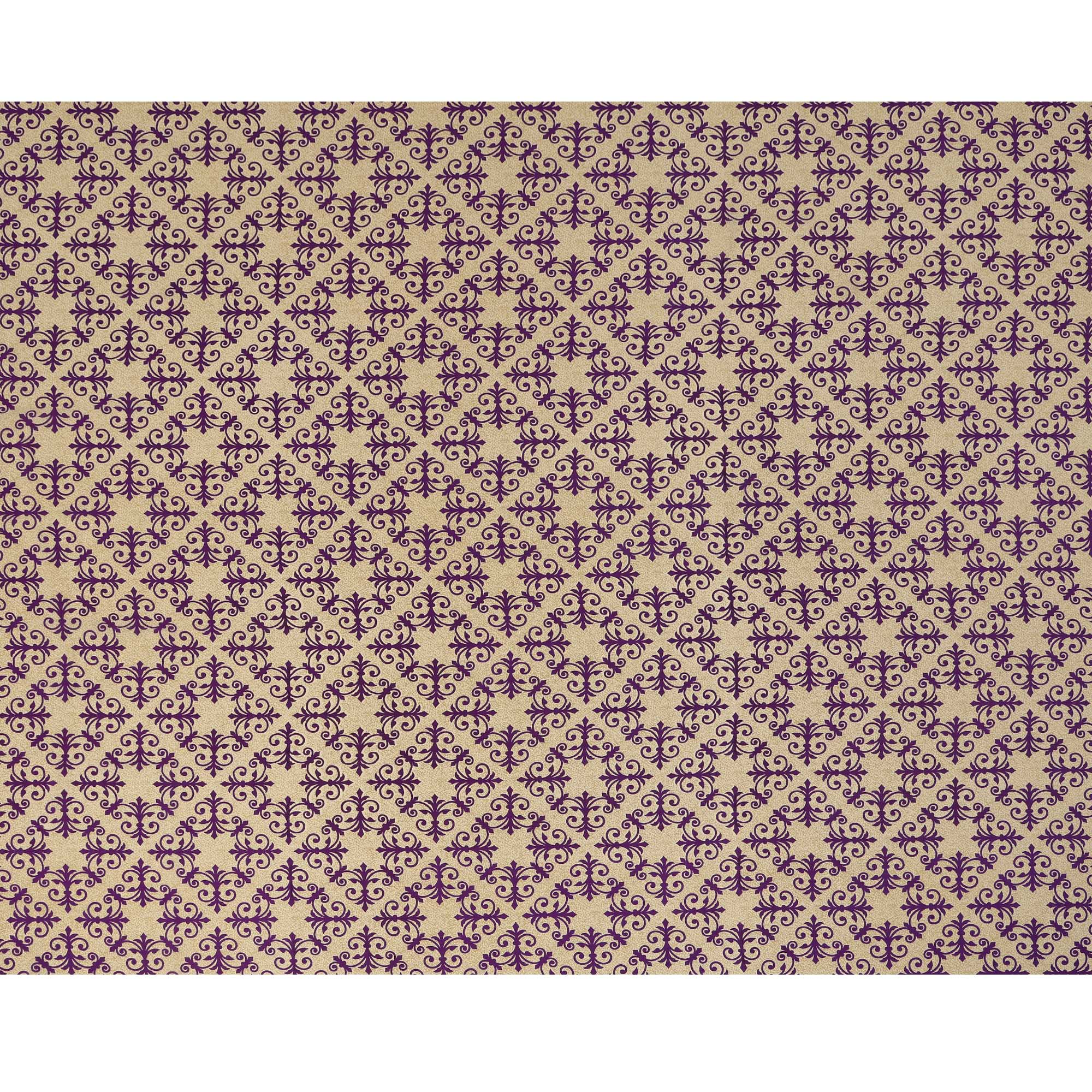 Beige base with intricate purple baroque tile print adds vintage charm.