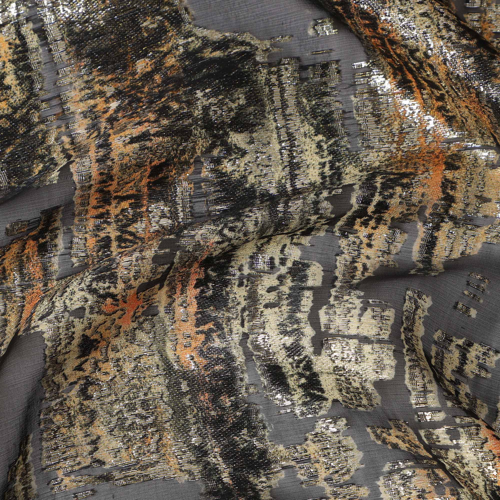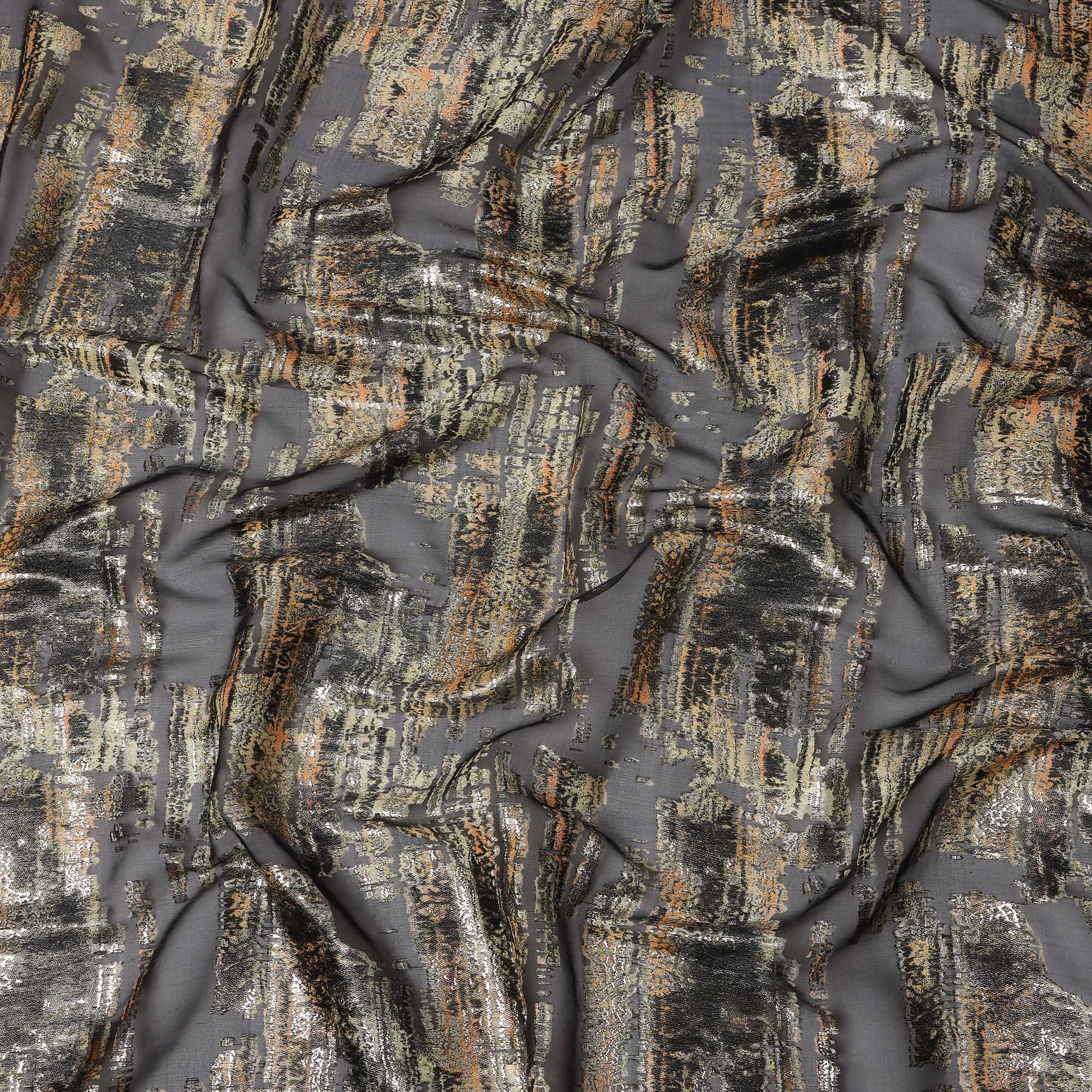 Black Abstract Metallic Lurex Pure Silk Chiffon Fabric, 110 Cms Width, South Kore-D25236