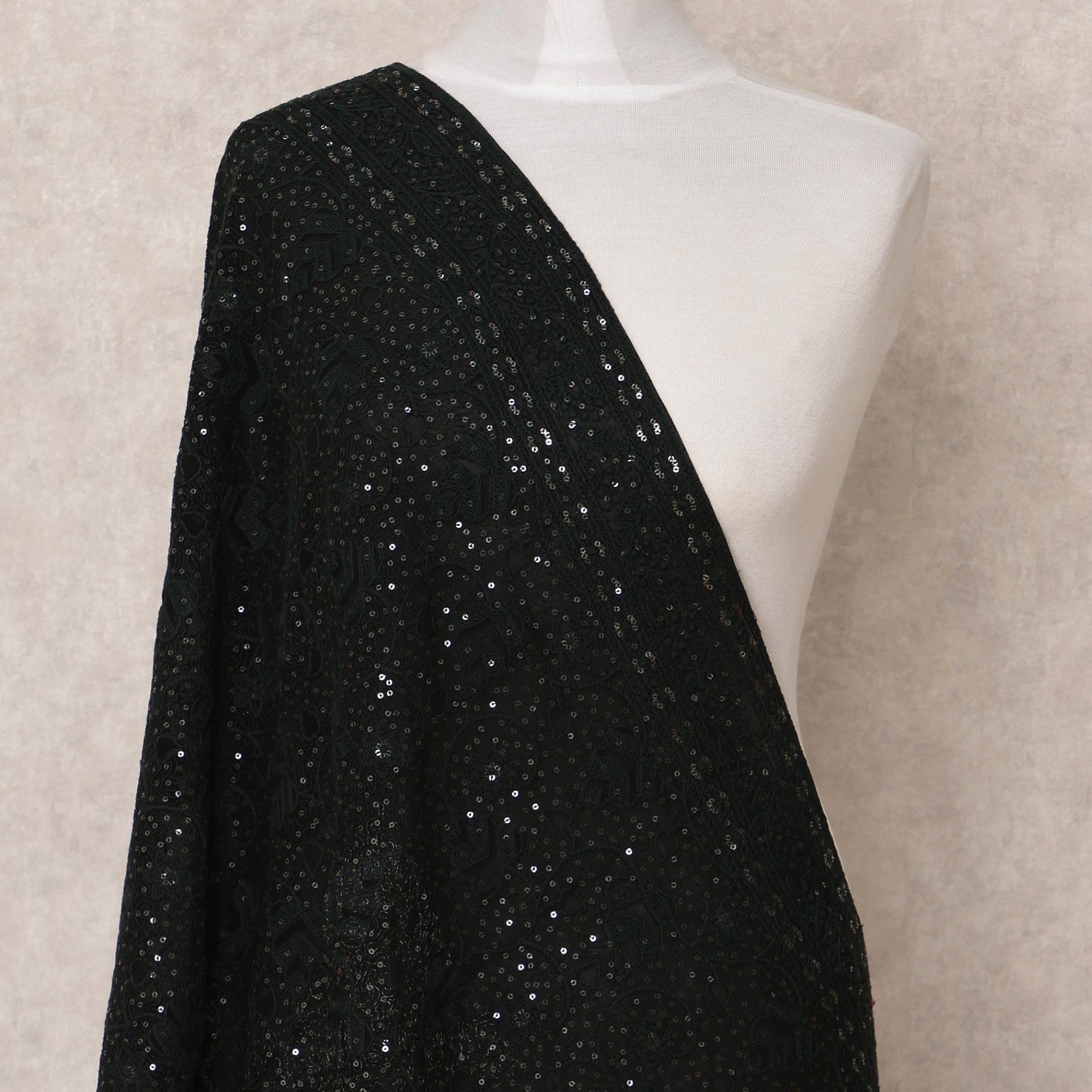 Black sequin embroidered dupatta crafted from synthetic georgette