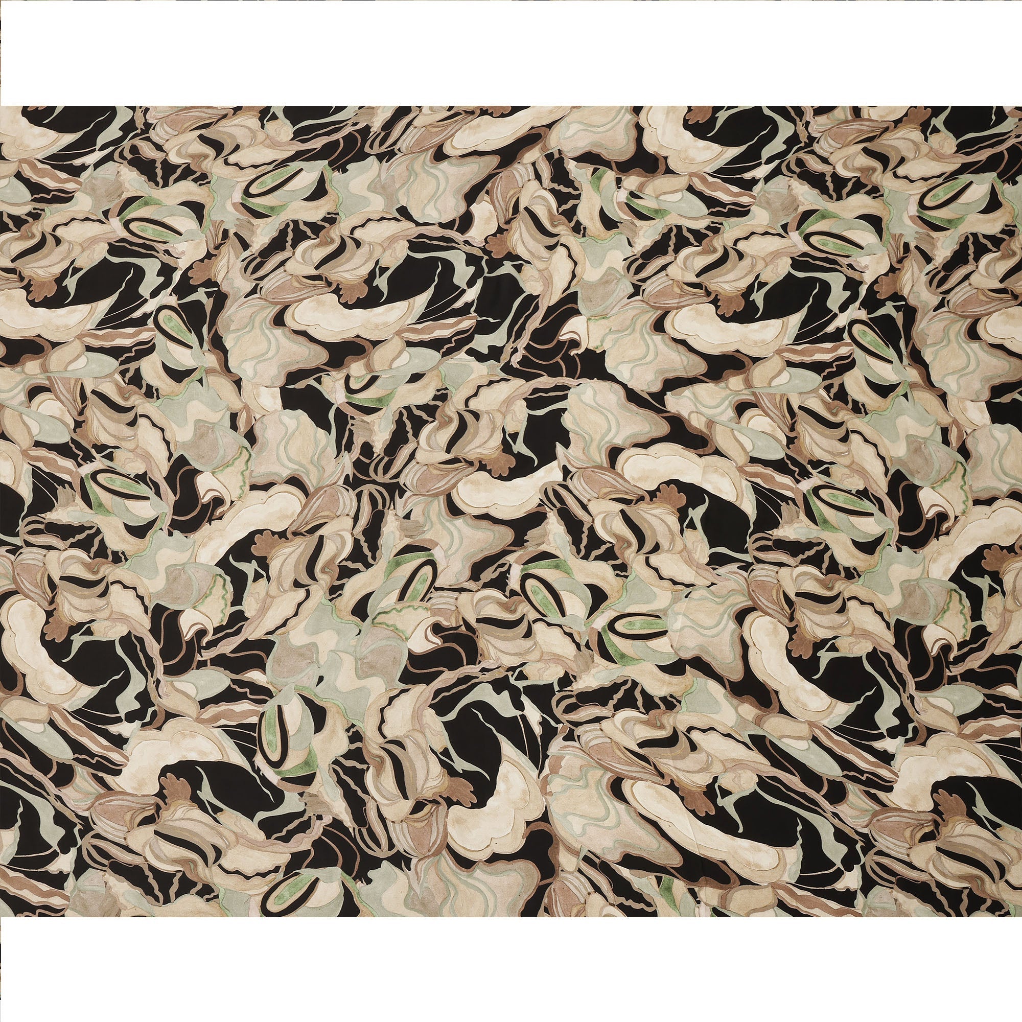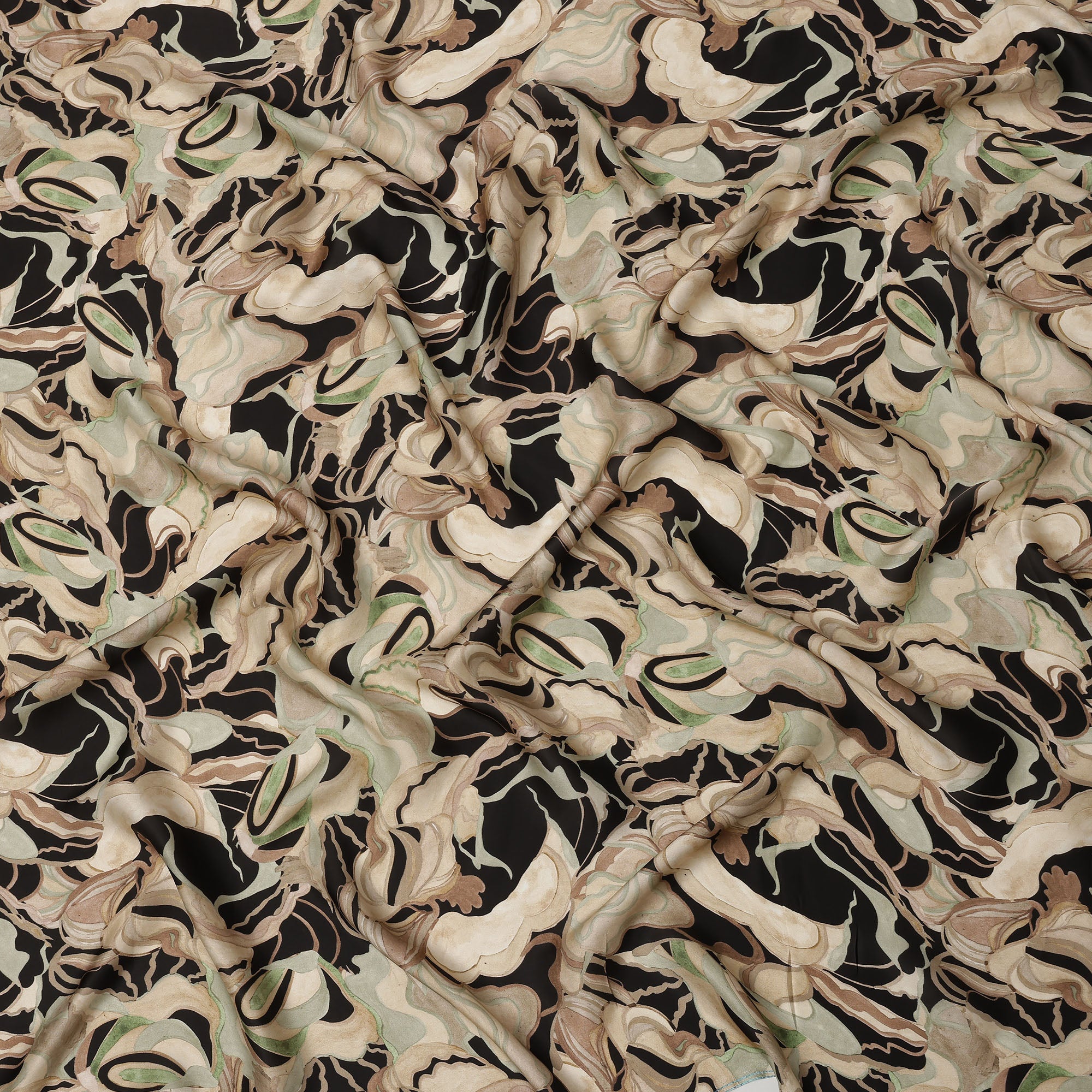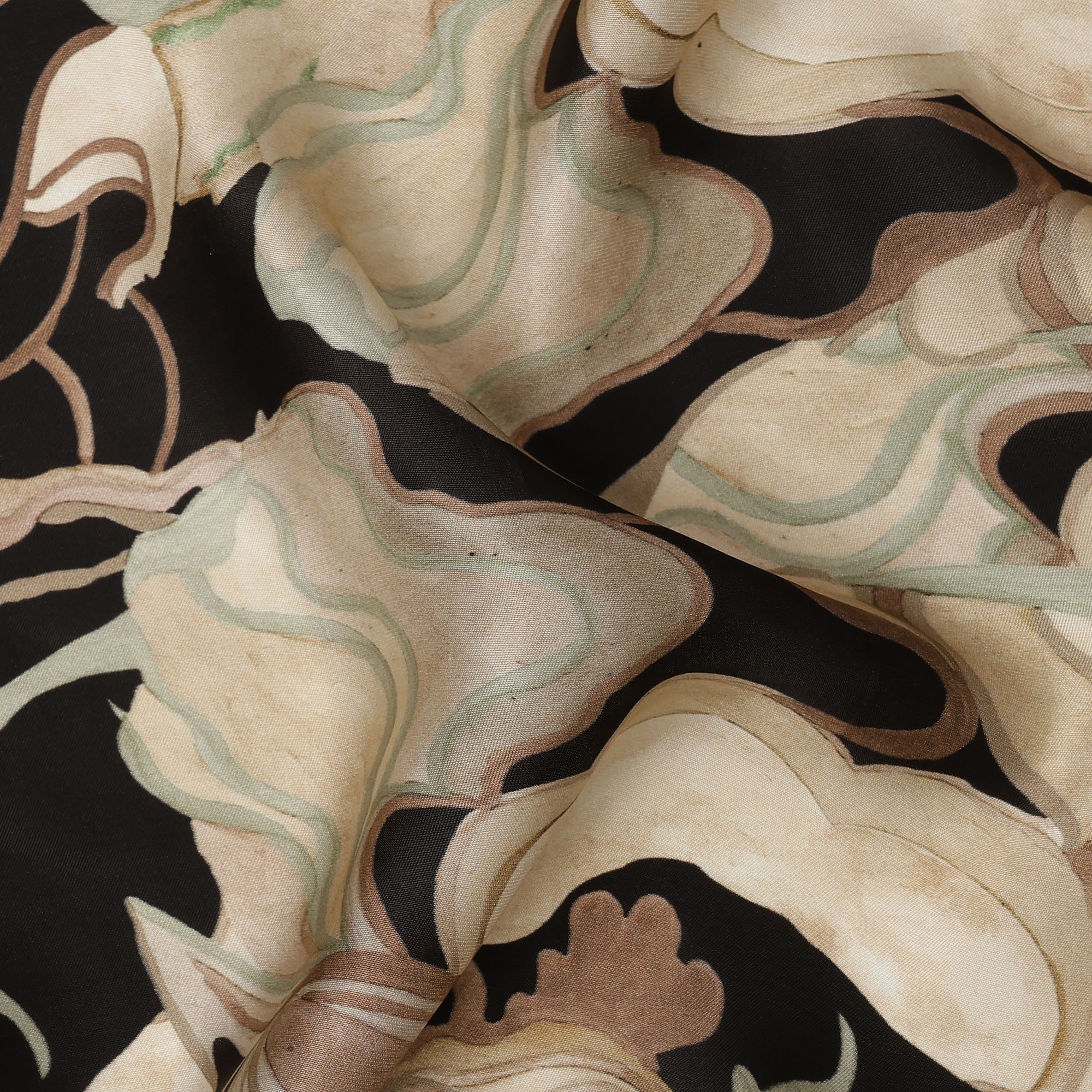 Premium viscose modal satin fabric with black base and beige marble abstract print