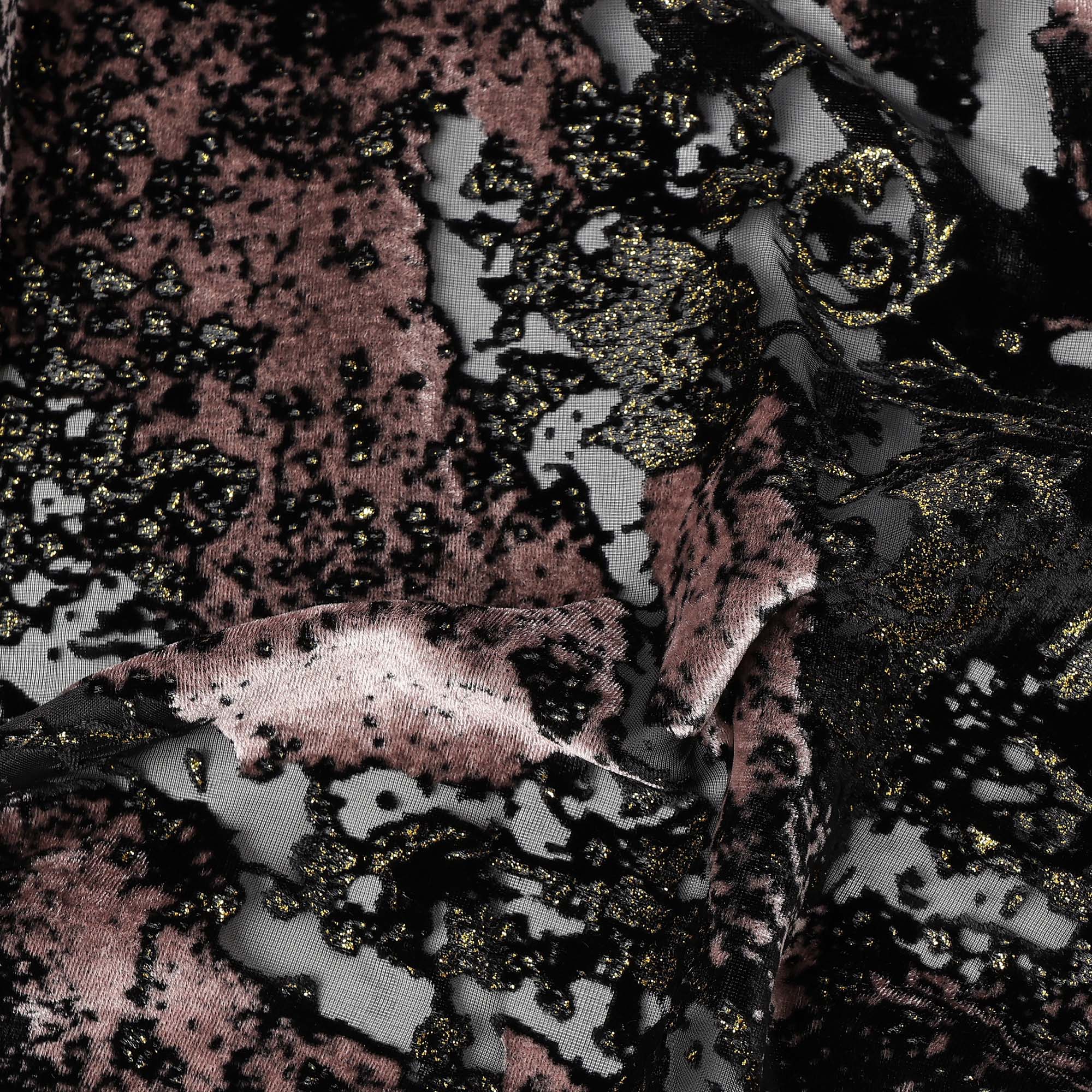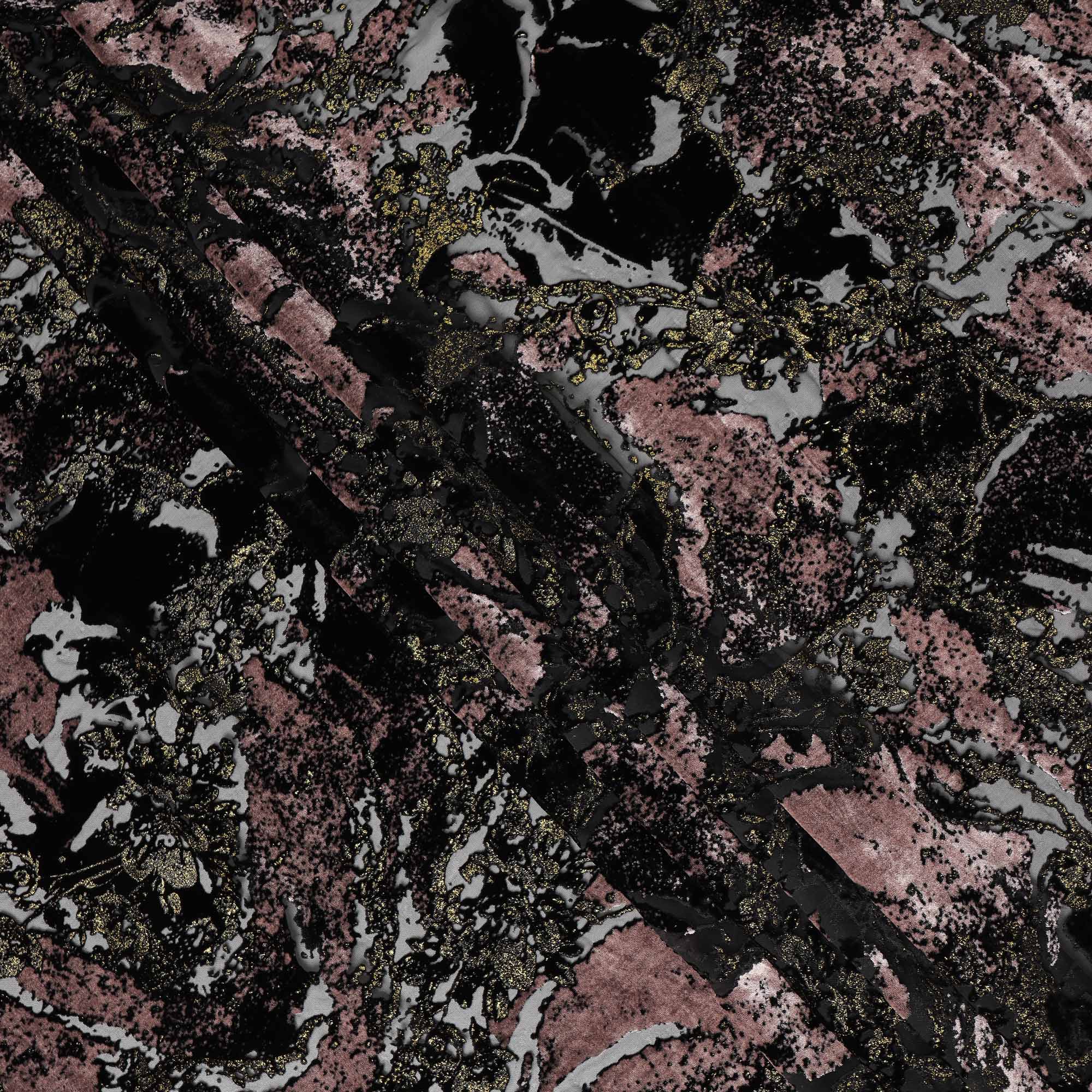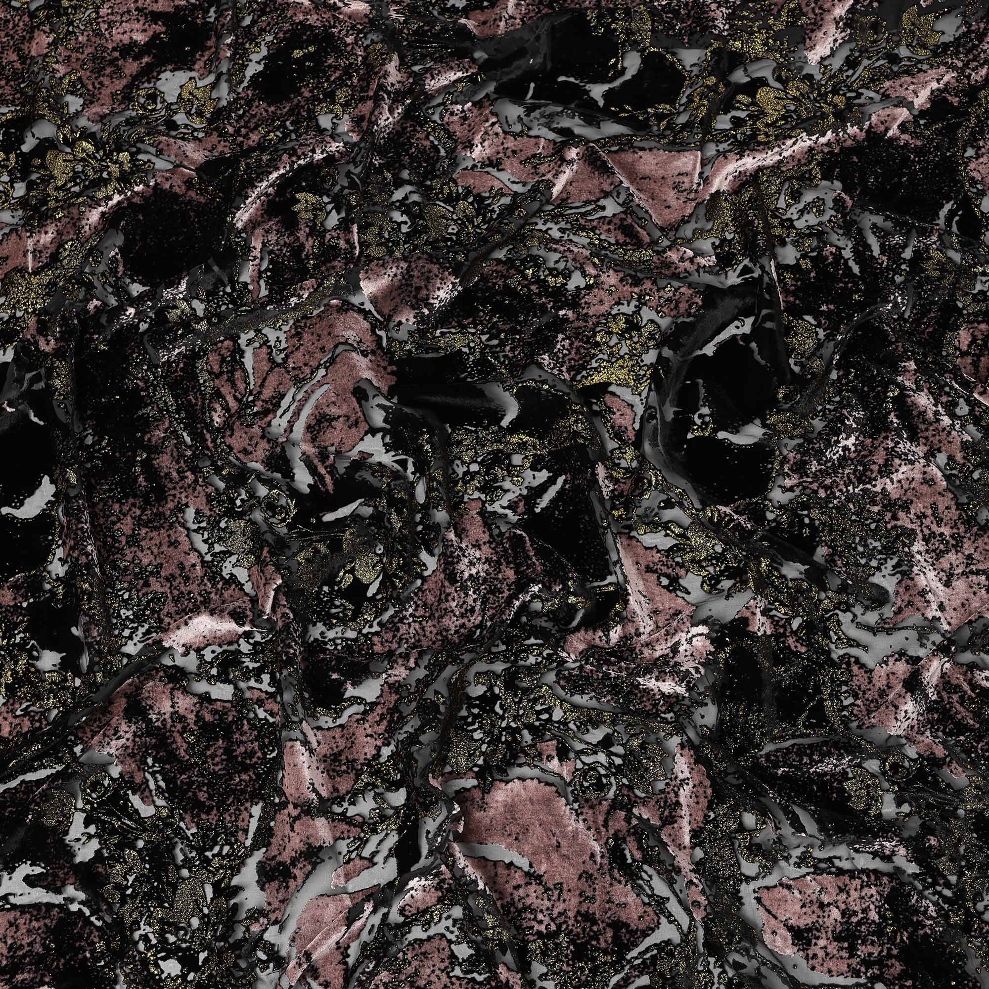 Black and Dusty Pink Metallic Abstract Printed Synthetic Burnout Chiffon Velvet Fabric 140 Cms Width China-D28186