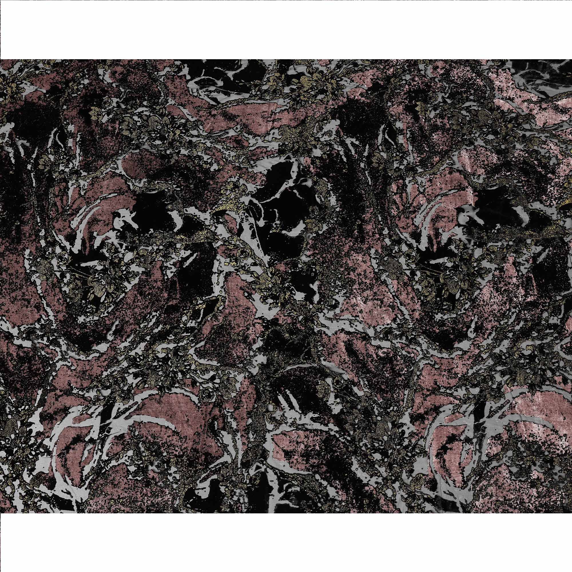 Elegant black base with dusty pink metallic abstract print creates a refined designer look.