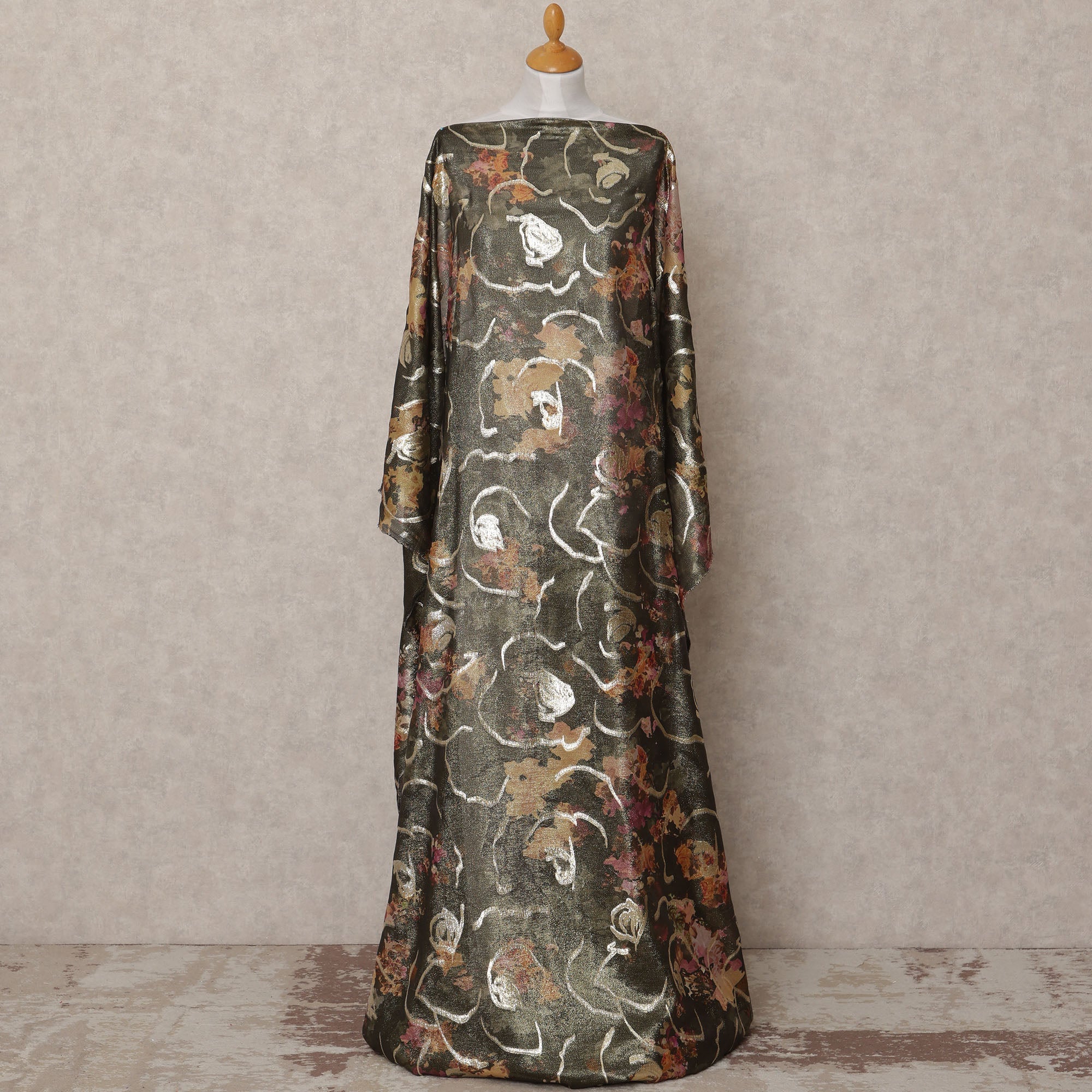 This striking Black Somali silk chiffon dirac fabric, enriched with elegant gold tones and intricate floral patterns in soft beige,... Read more Read more