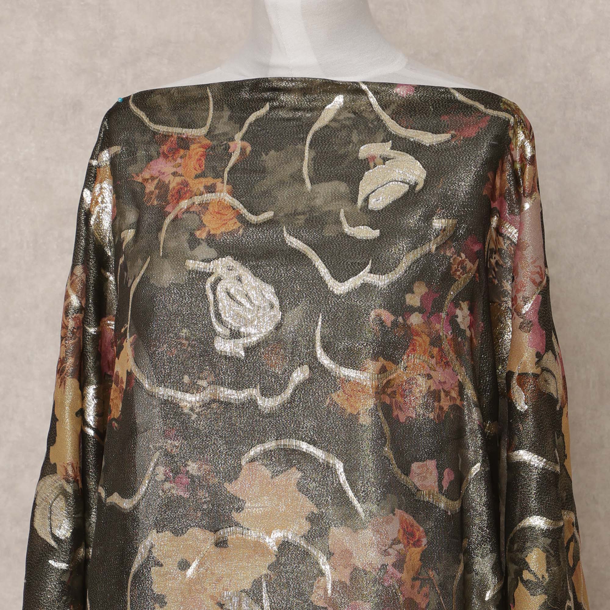 Black and Gold Floral Metallic Somali Silk Chiffon Dirac Fabric – 3.5 Meters, Width 140 cm, Made in South Korea-D24734