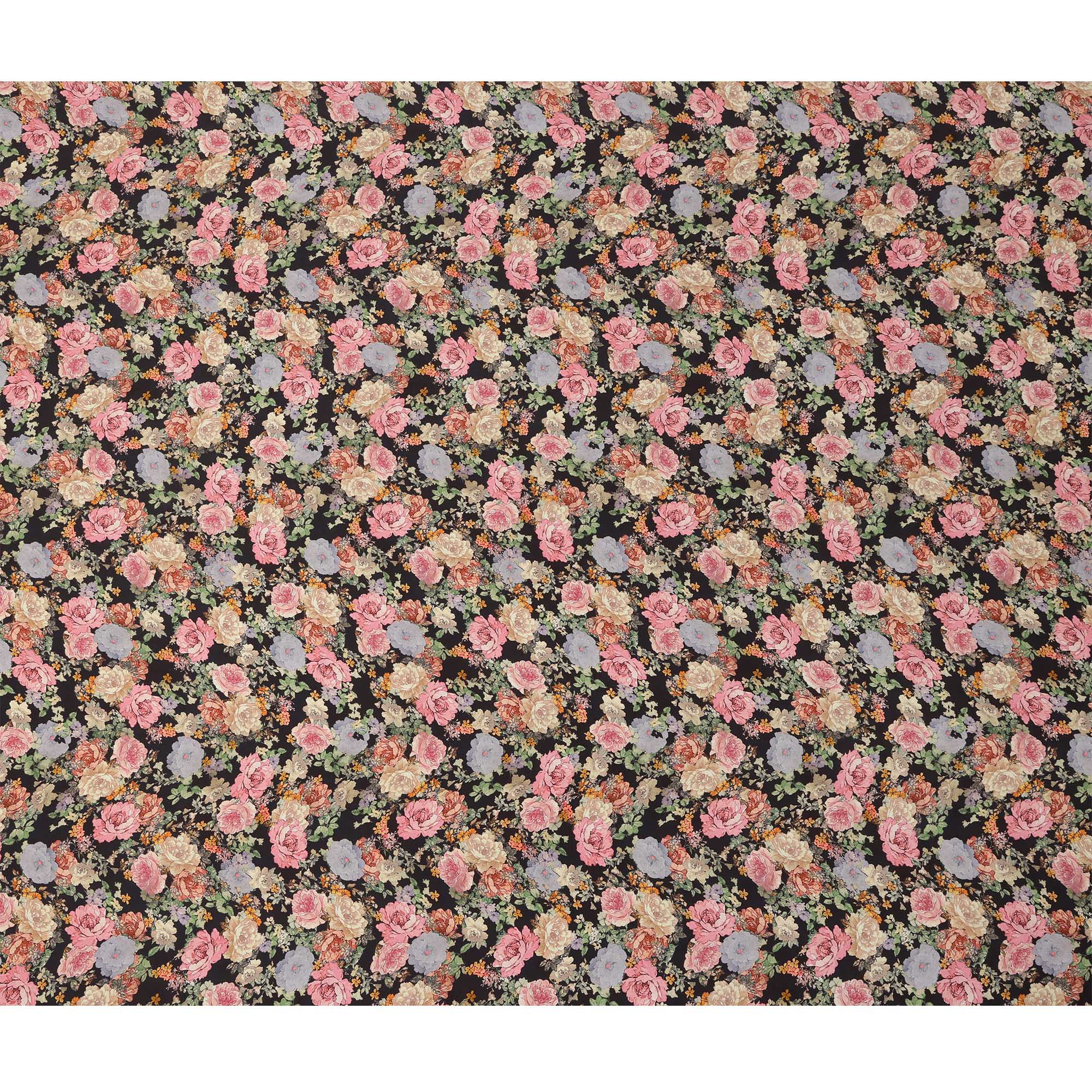 Enhance your wardrobe and décor with this black and multicolor floral synthetic satin fabric, featuring a rich floral design in shades of pink, gold, and green set against a deep black background. The 110 cm wide fabric has a smooth, glossy finish that offers a luxurious drape, making it ideal for elegant dresses, scarves, blouses, and decorative accents. Its lightweight and breathable texture ensures comfort while maintaining durability and vibrancy. Whether used for stylish outfits or creative projects, this high-quality satin fabric delivers sophistication, versatility, and a stunning sheen.