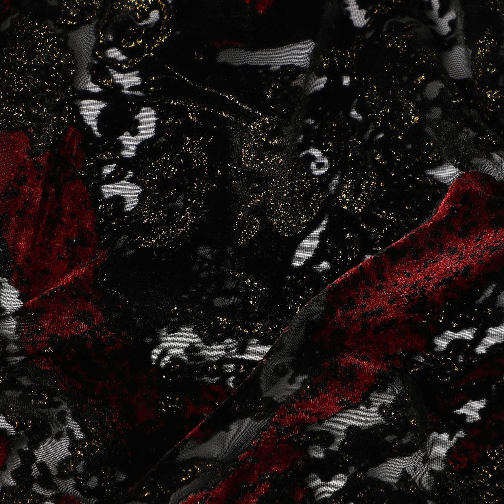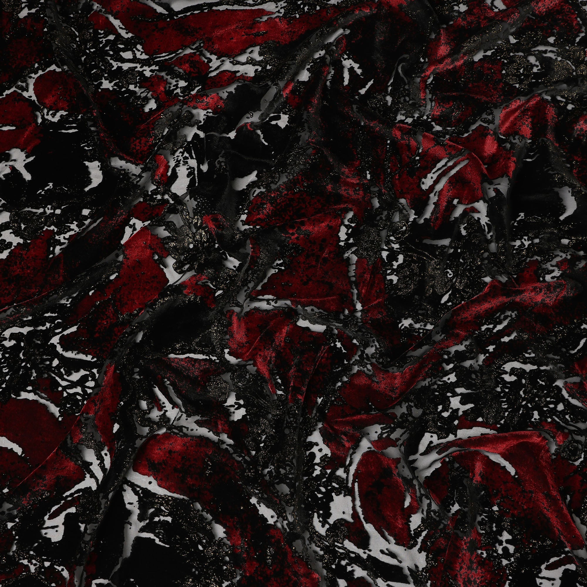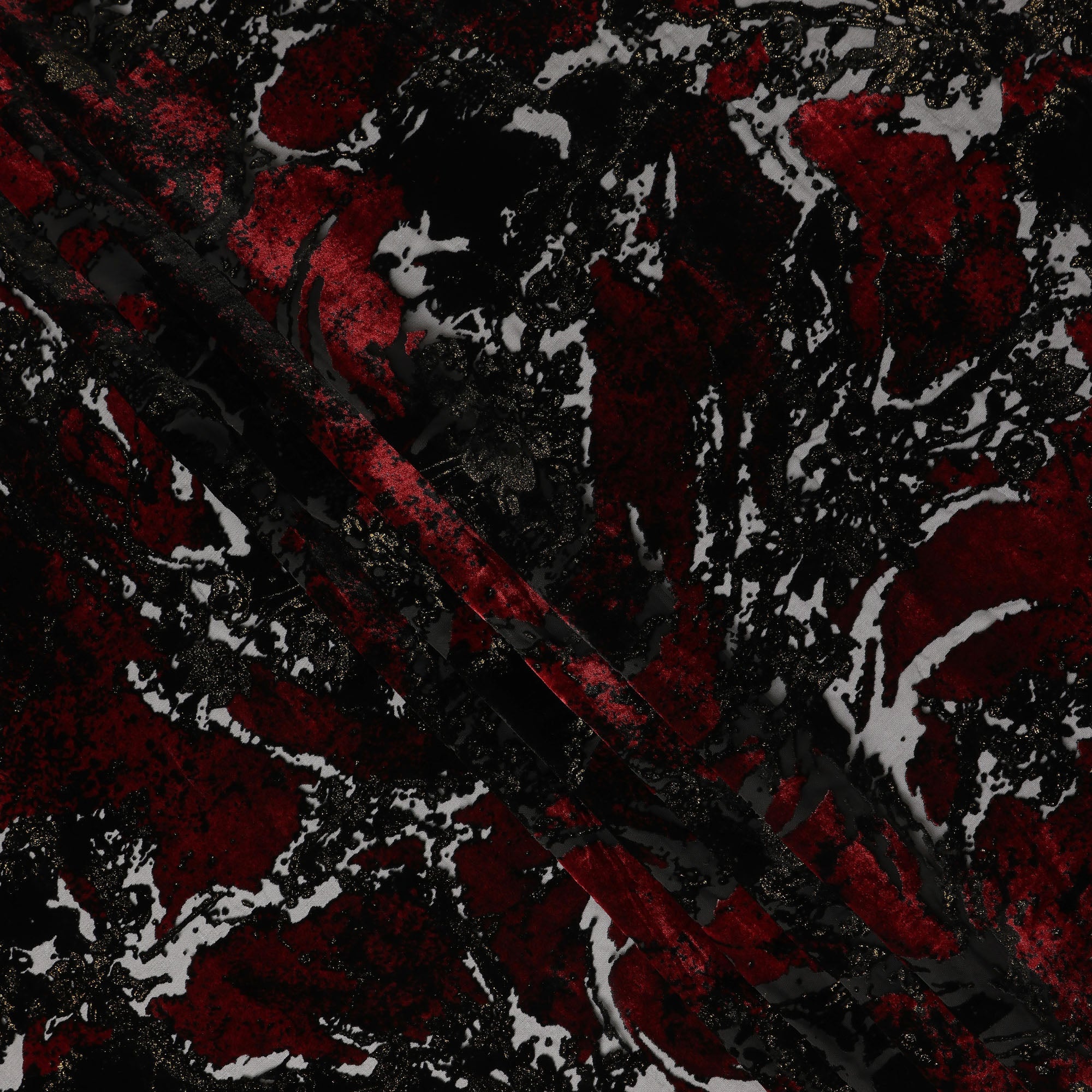 Black and Red Metallic Abstract Printed Synthetic Burnout Chiffon Velvet Fabric 140 Cms Width China-D28184