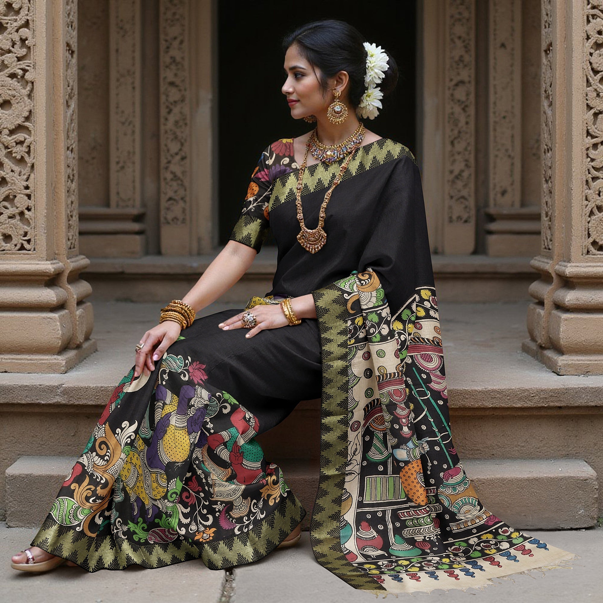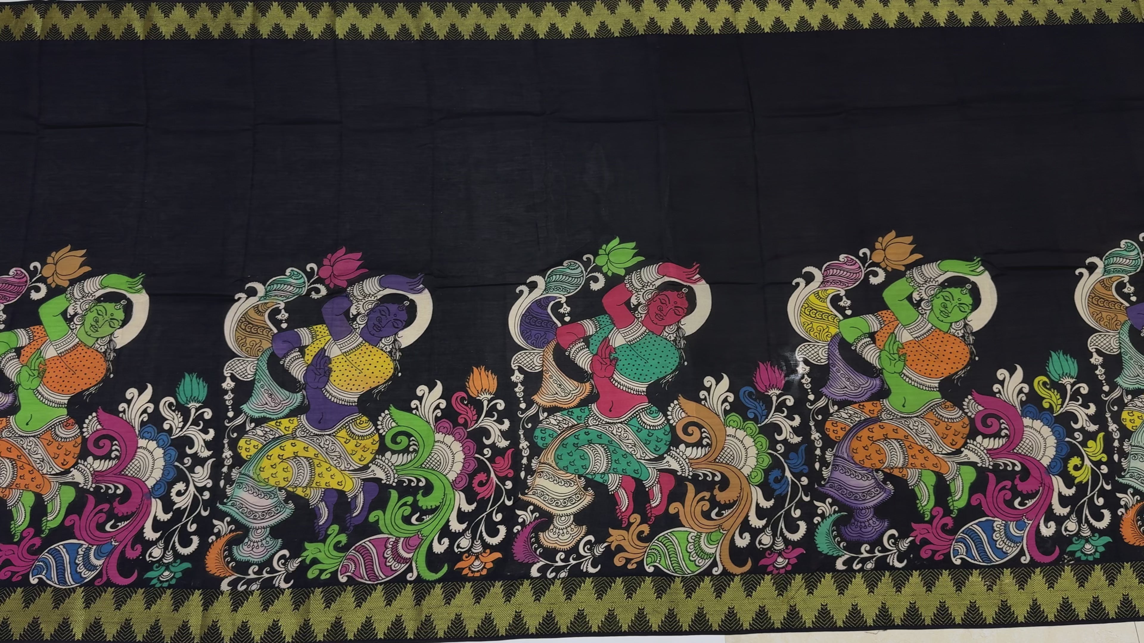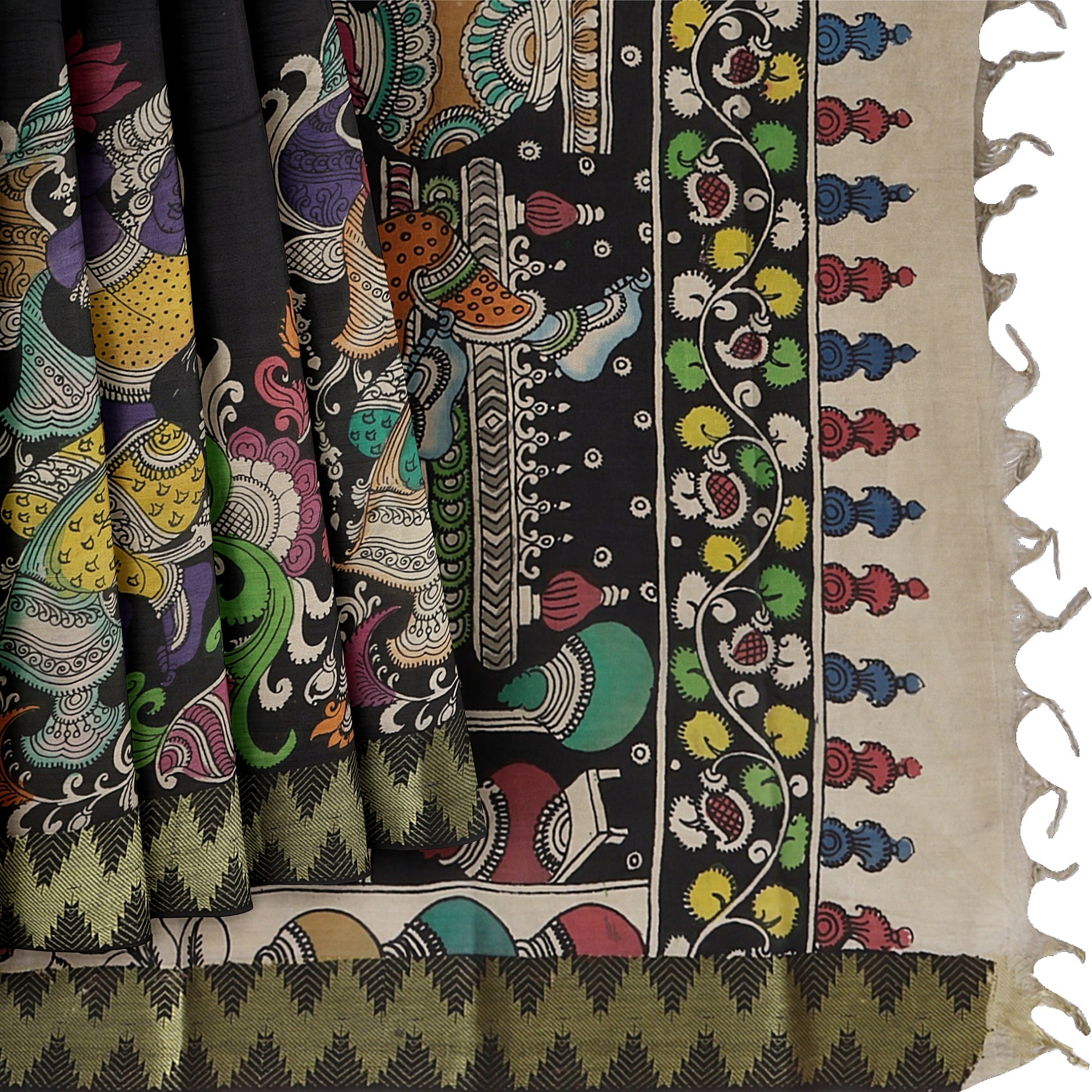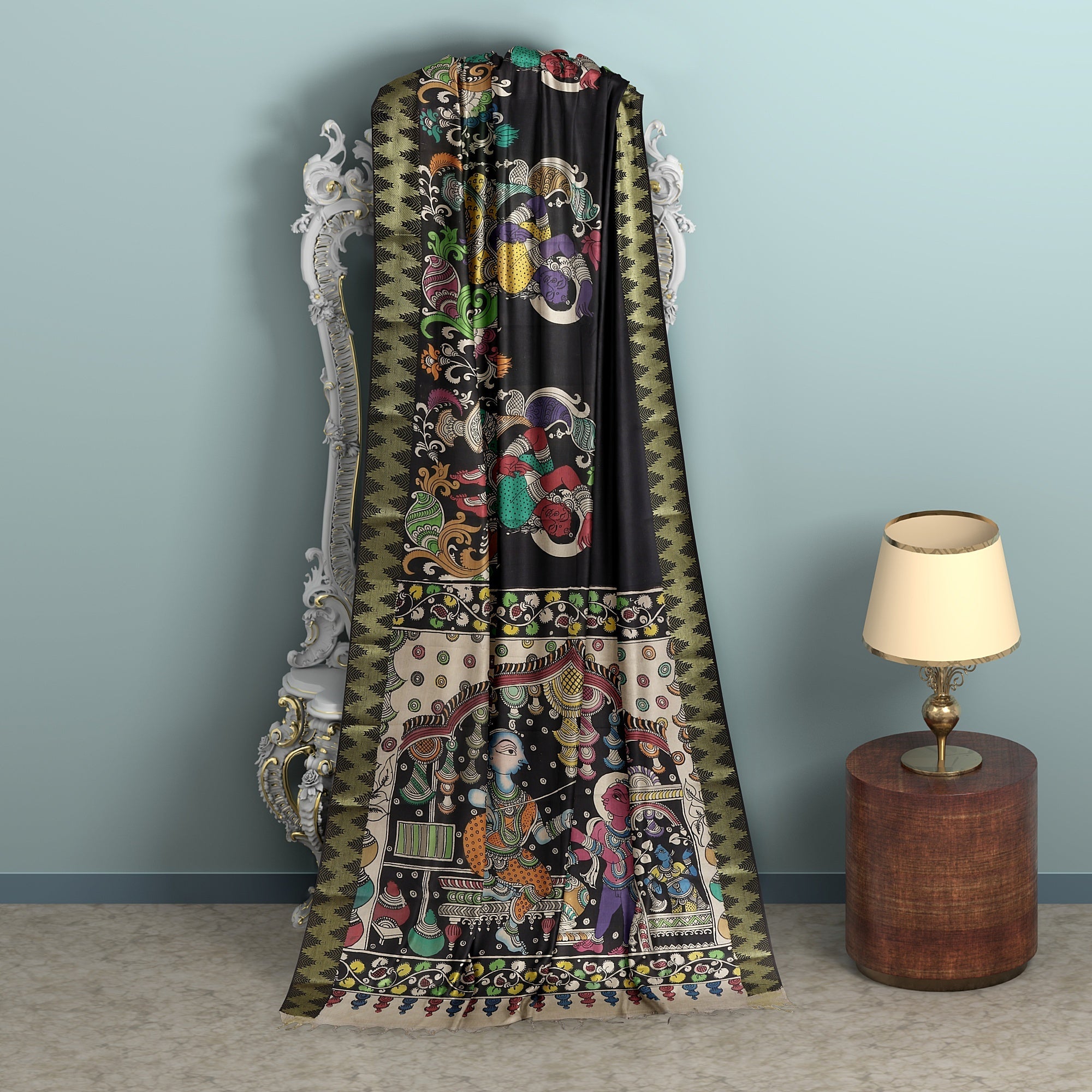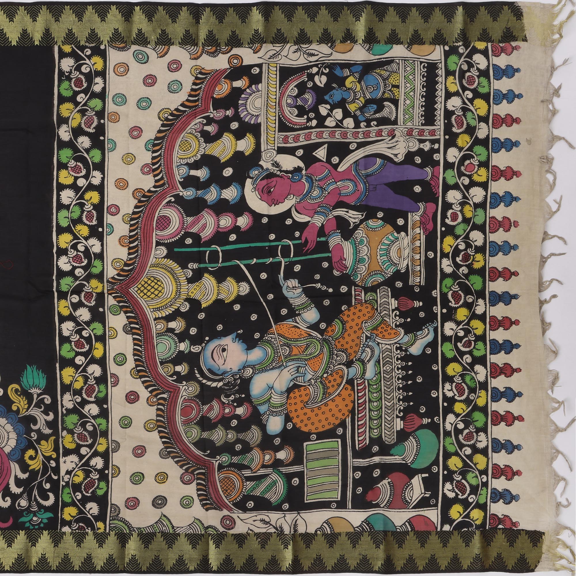 Features Pen Kalamkari artwork with mythological illustrations