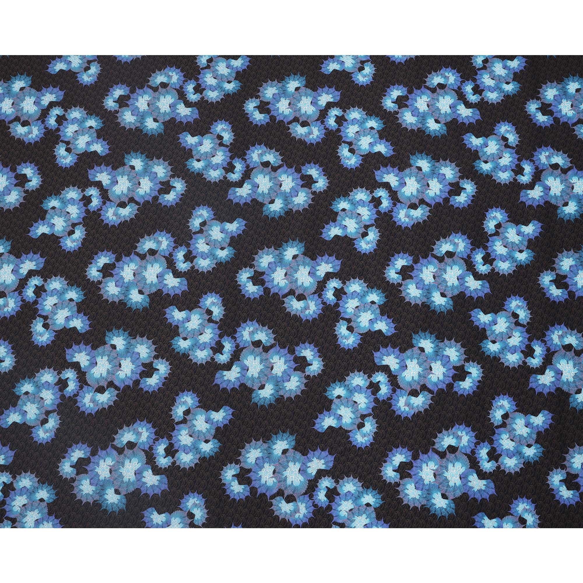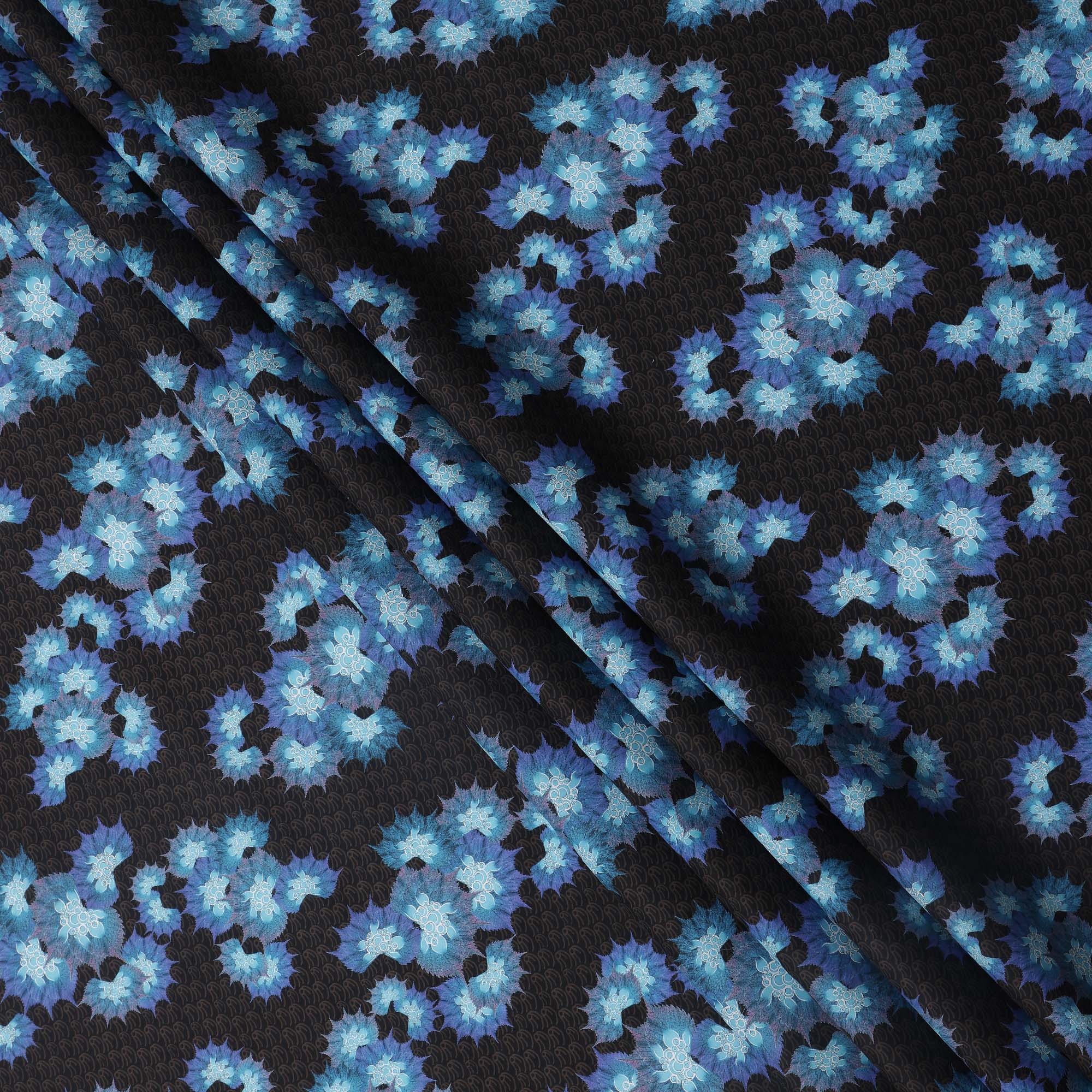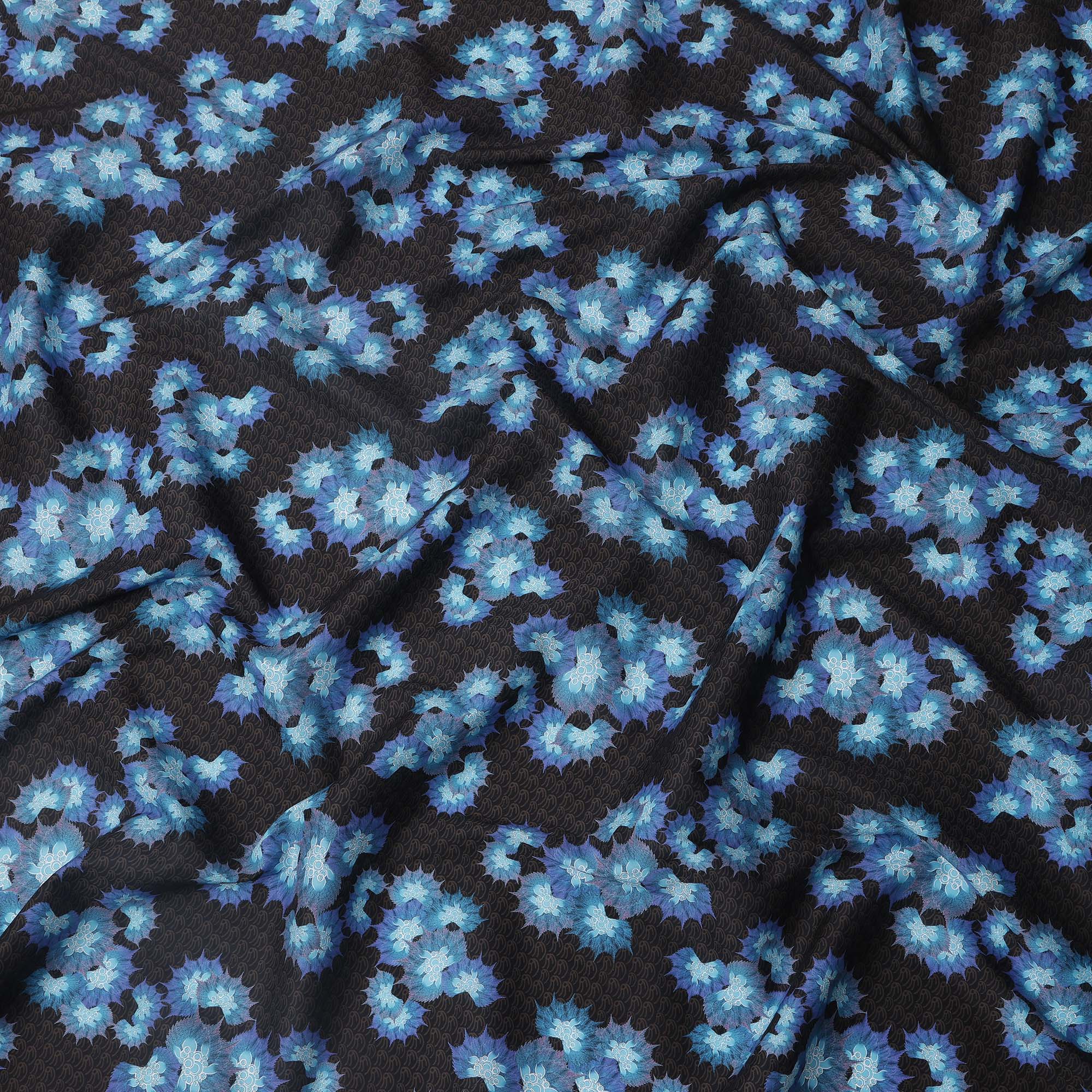 Black Base with Blue Floral Print Pure Cotton Lawn Fabric, 140 Cms Width, Made in India-D26010