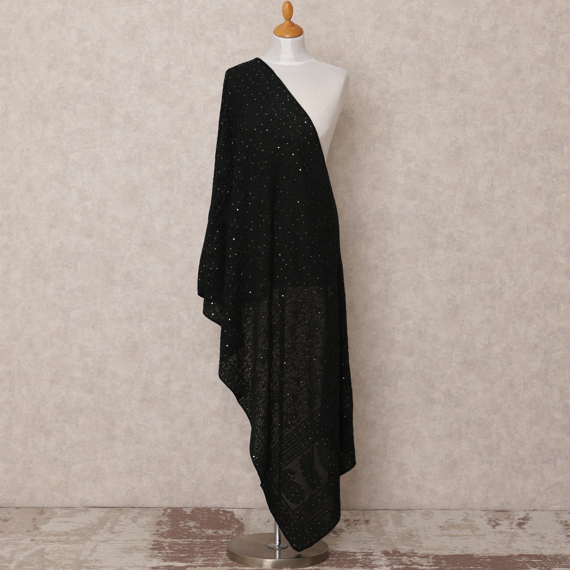 Black Embroidered Sequin Work Synthetic Georgette Dupatta, Size 210X90 Cms, India-D24830