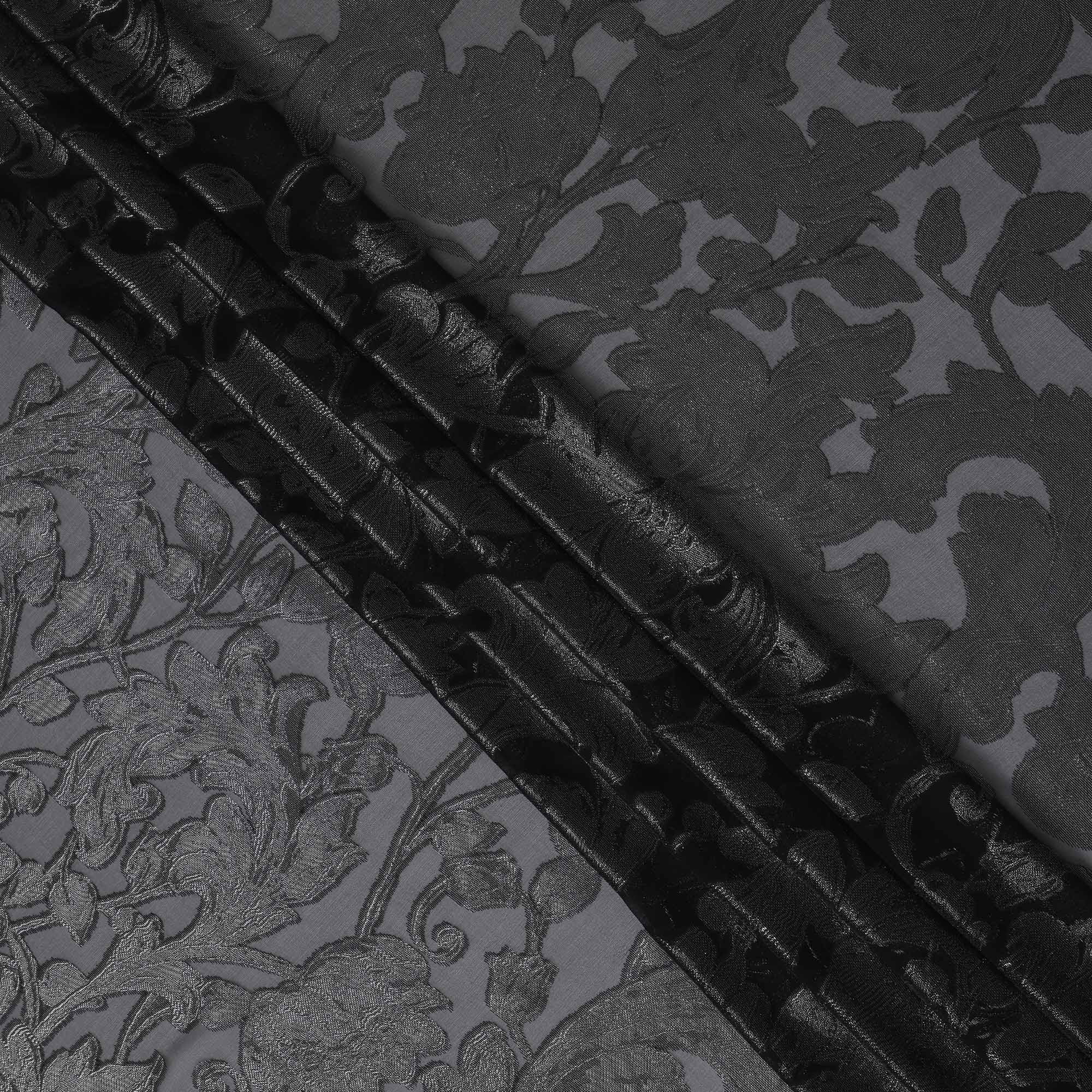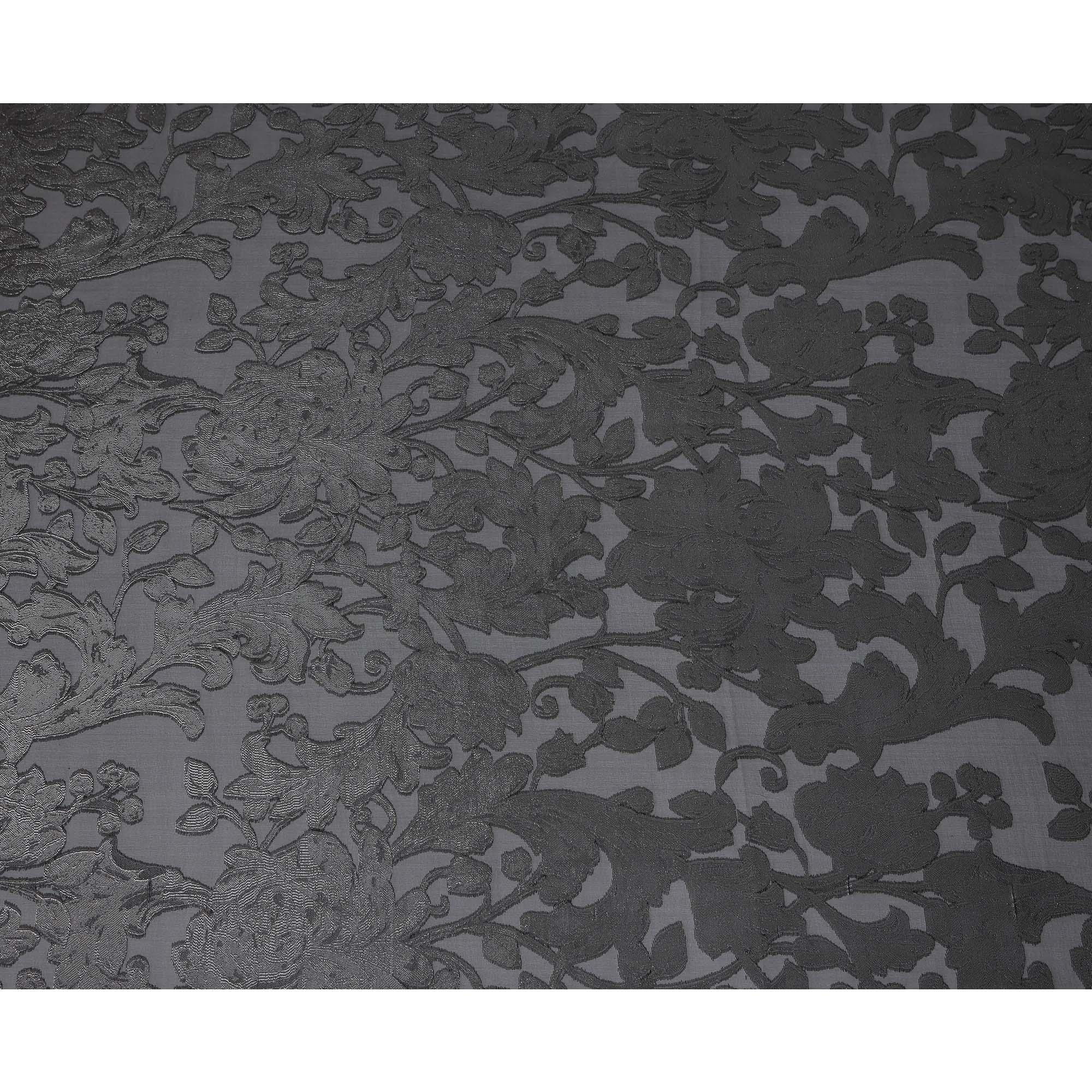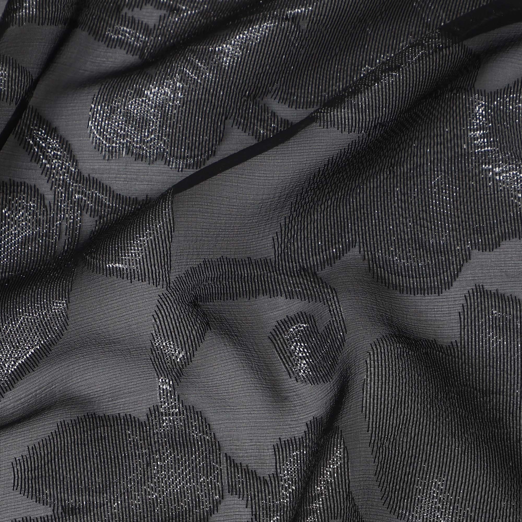 Black Floral Embroidered Metallic Lurex Design Premium French Silk Chiffon Fabric, 110 Cms Width, Made in France-D25736