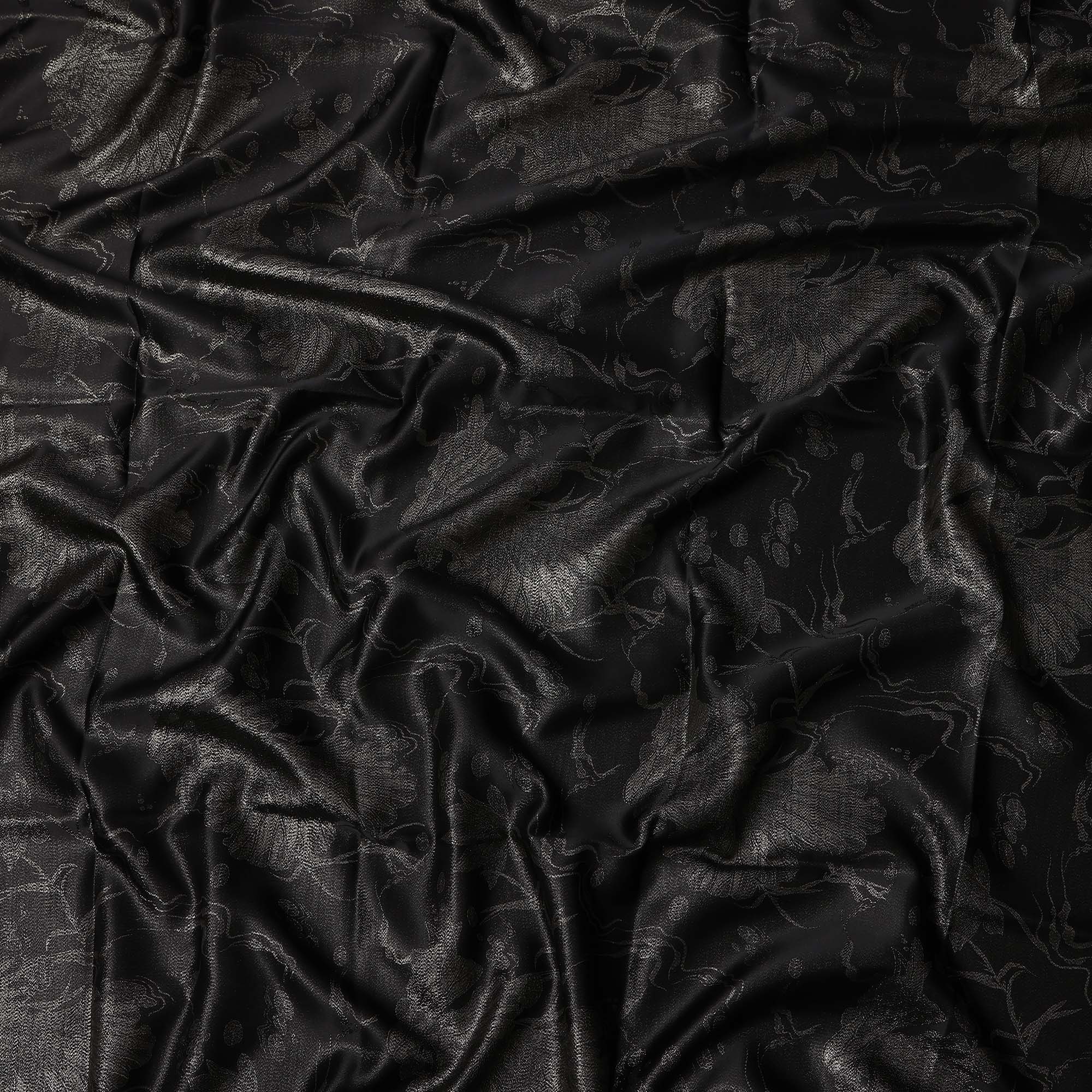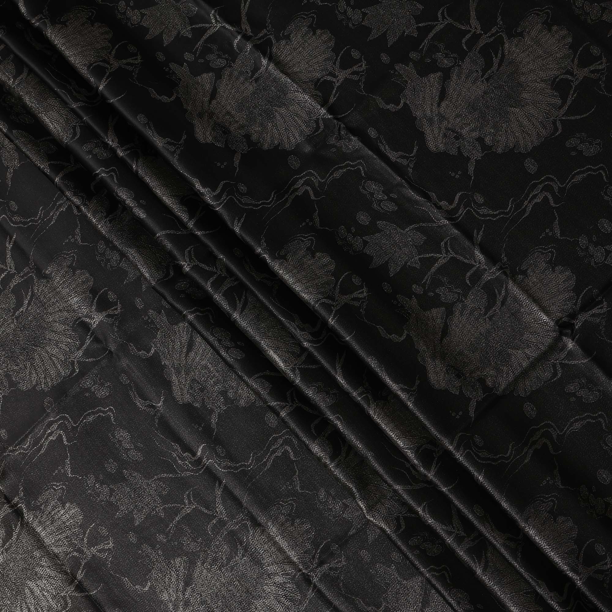 Black Floral Jacquard Pure Silk Satin Fabric 140 Cms Width Made in China-D24909