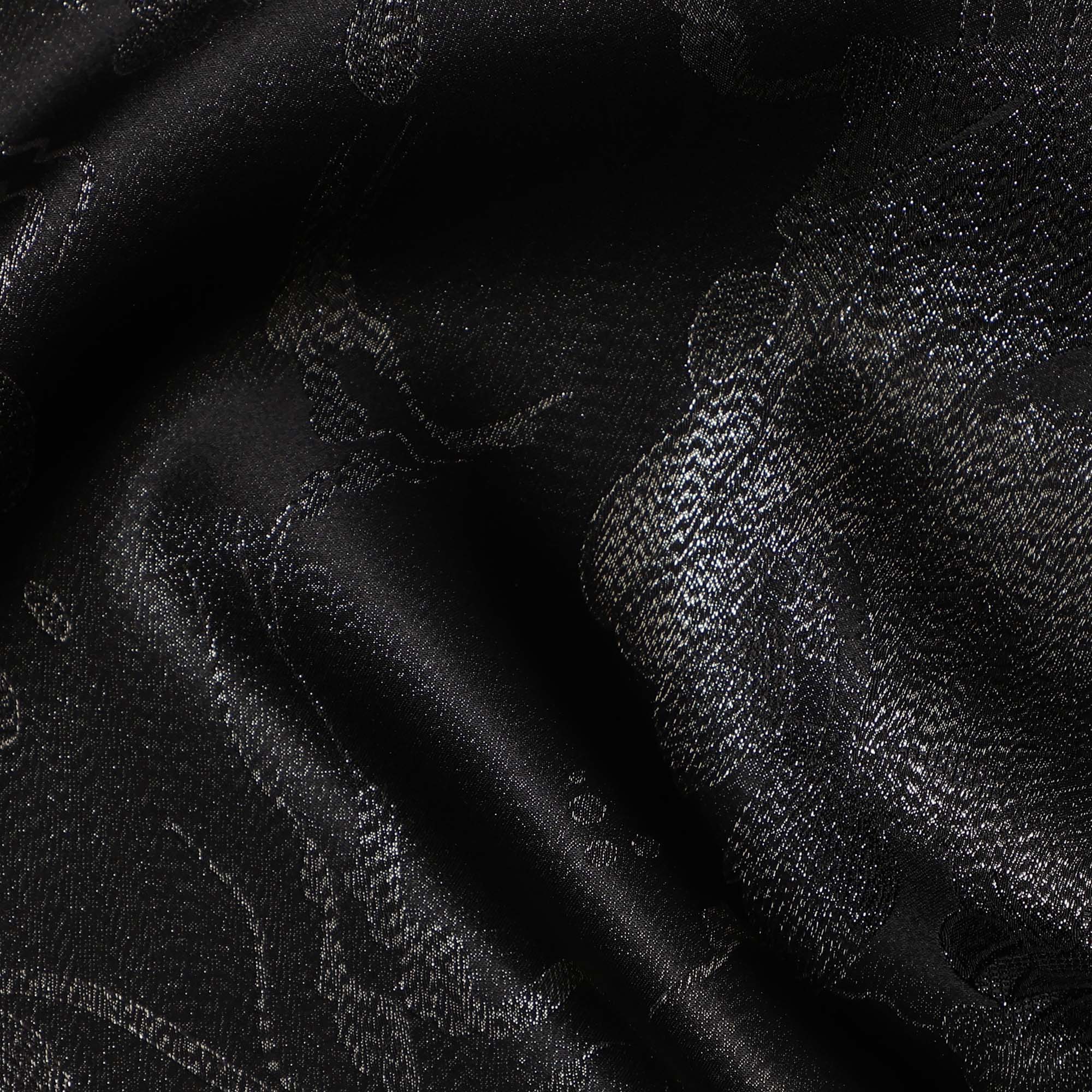 This black pure silk satin fabric with an intricate floral jacquard design is a luxurious textile crafted with fine artistry... Read more Read more