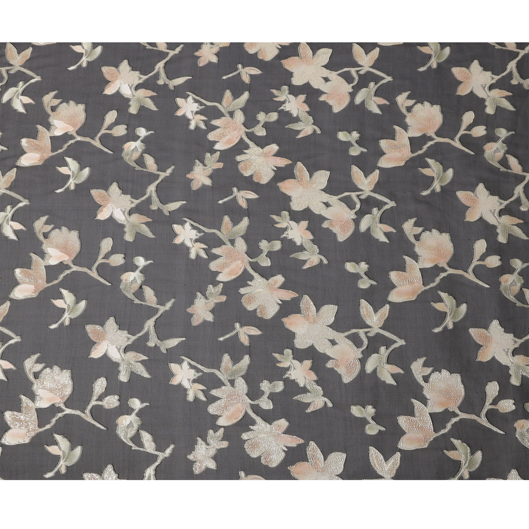 Black base enhanced by peach and ivory metallic floral patterns