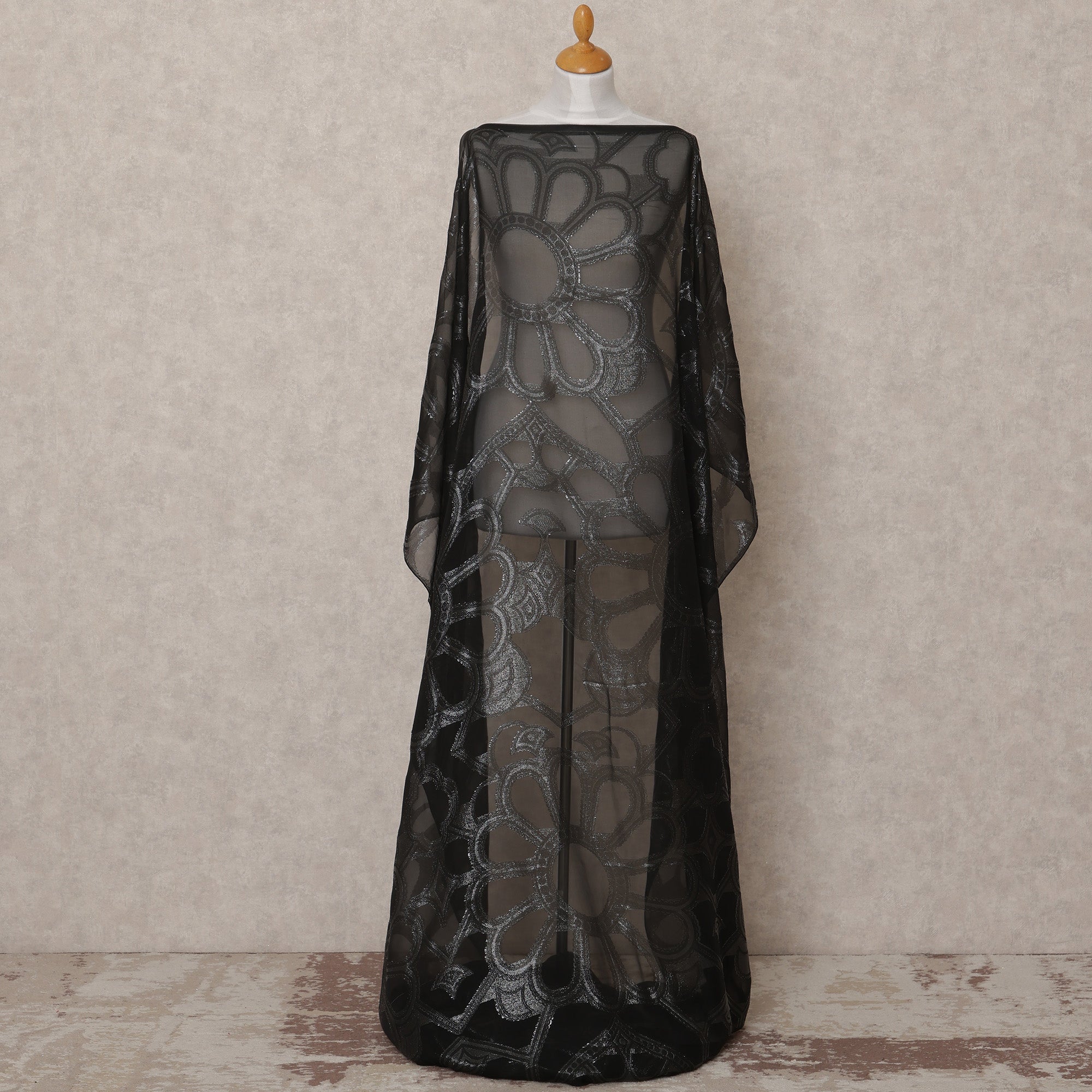 Black Fransawi Metallic Lurex Somali Silk Chiffon Dirac Fabric – 3.5 Meters, Width 140 cm, Made in France-D24747