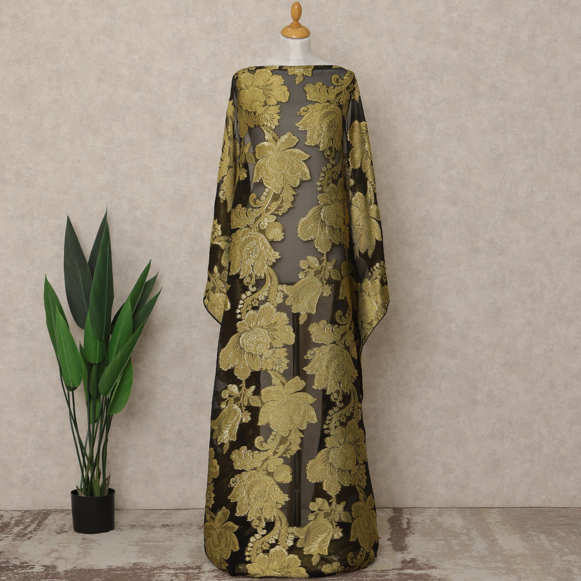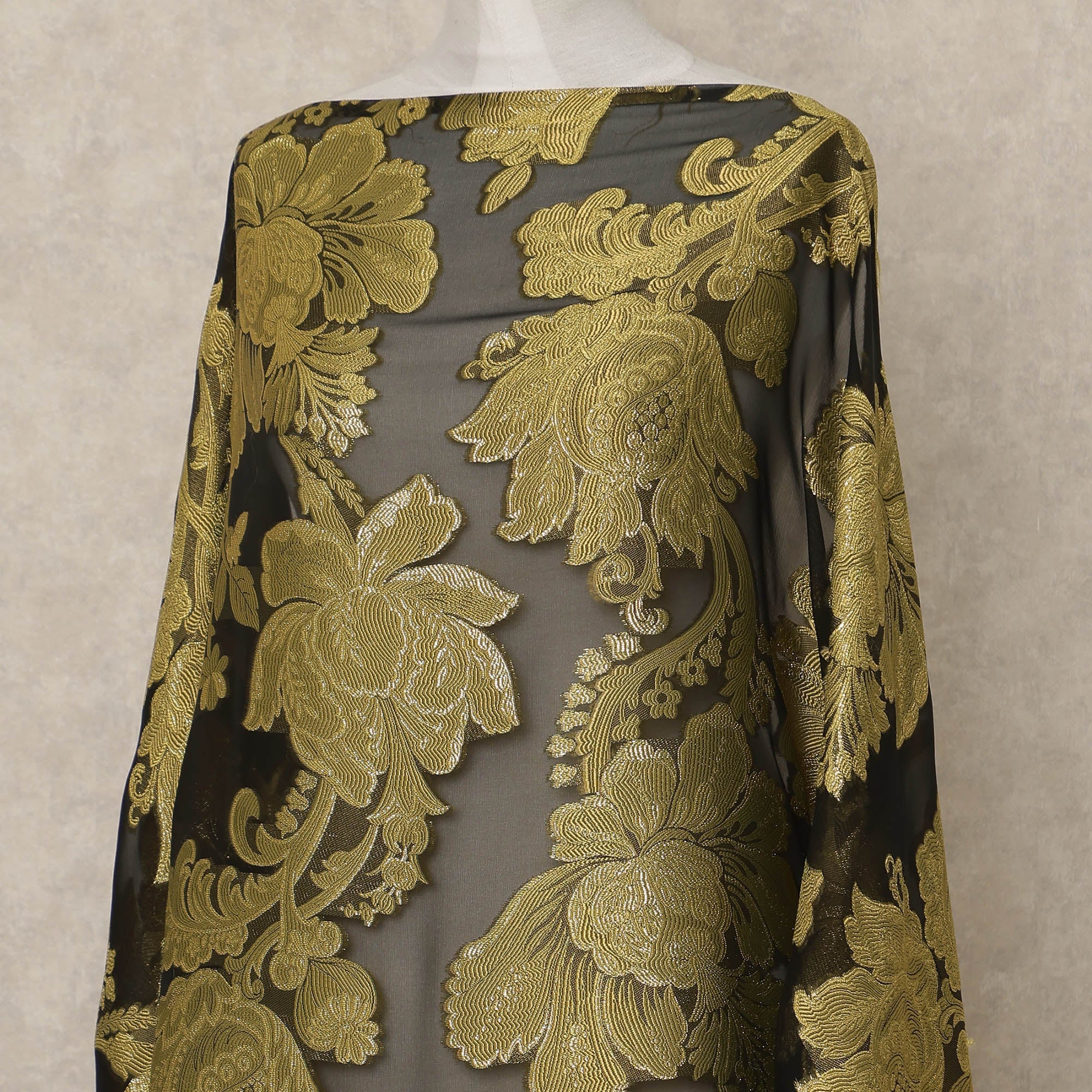 Classic black color highlighted with rich gold metallic lurex floral designs
