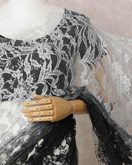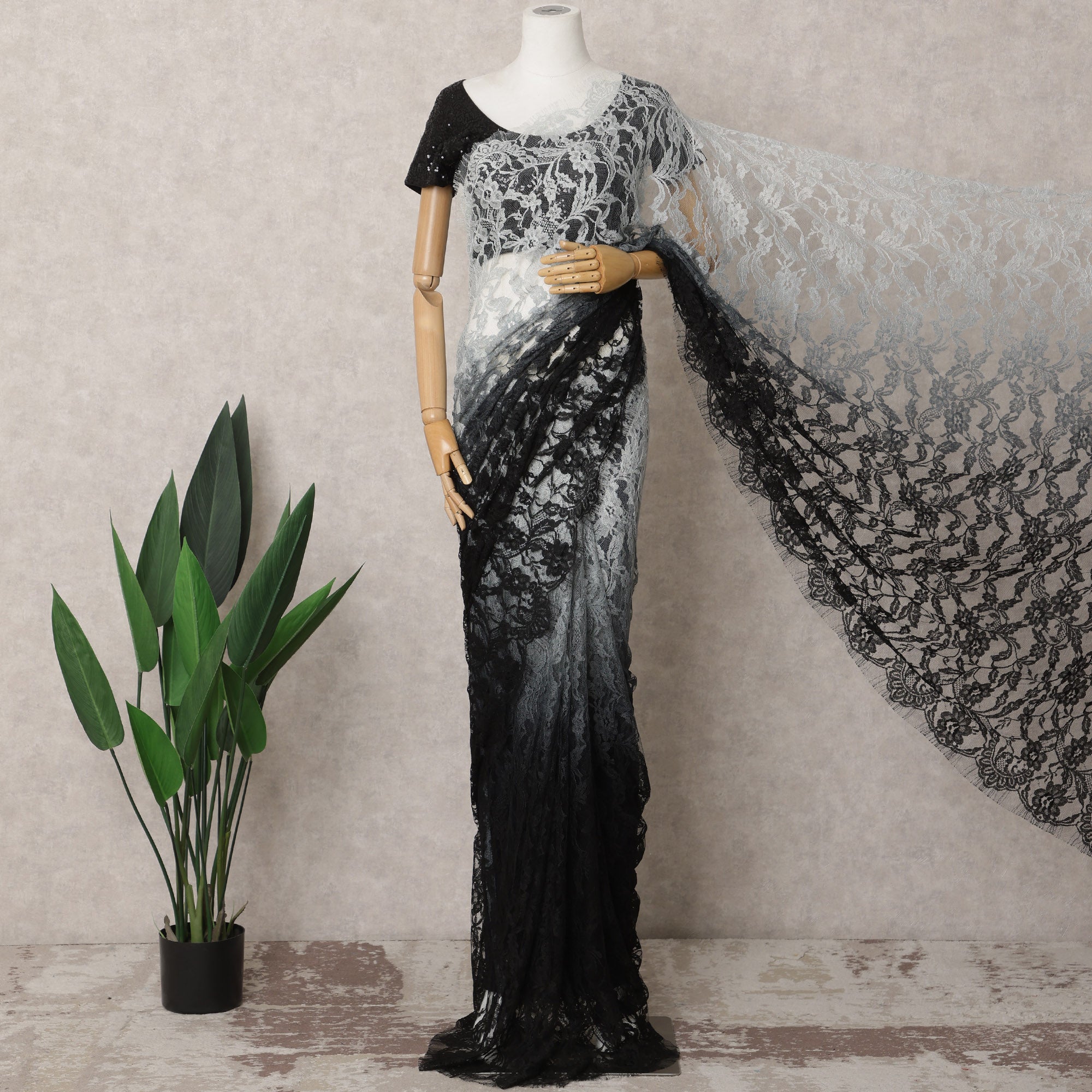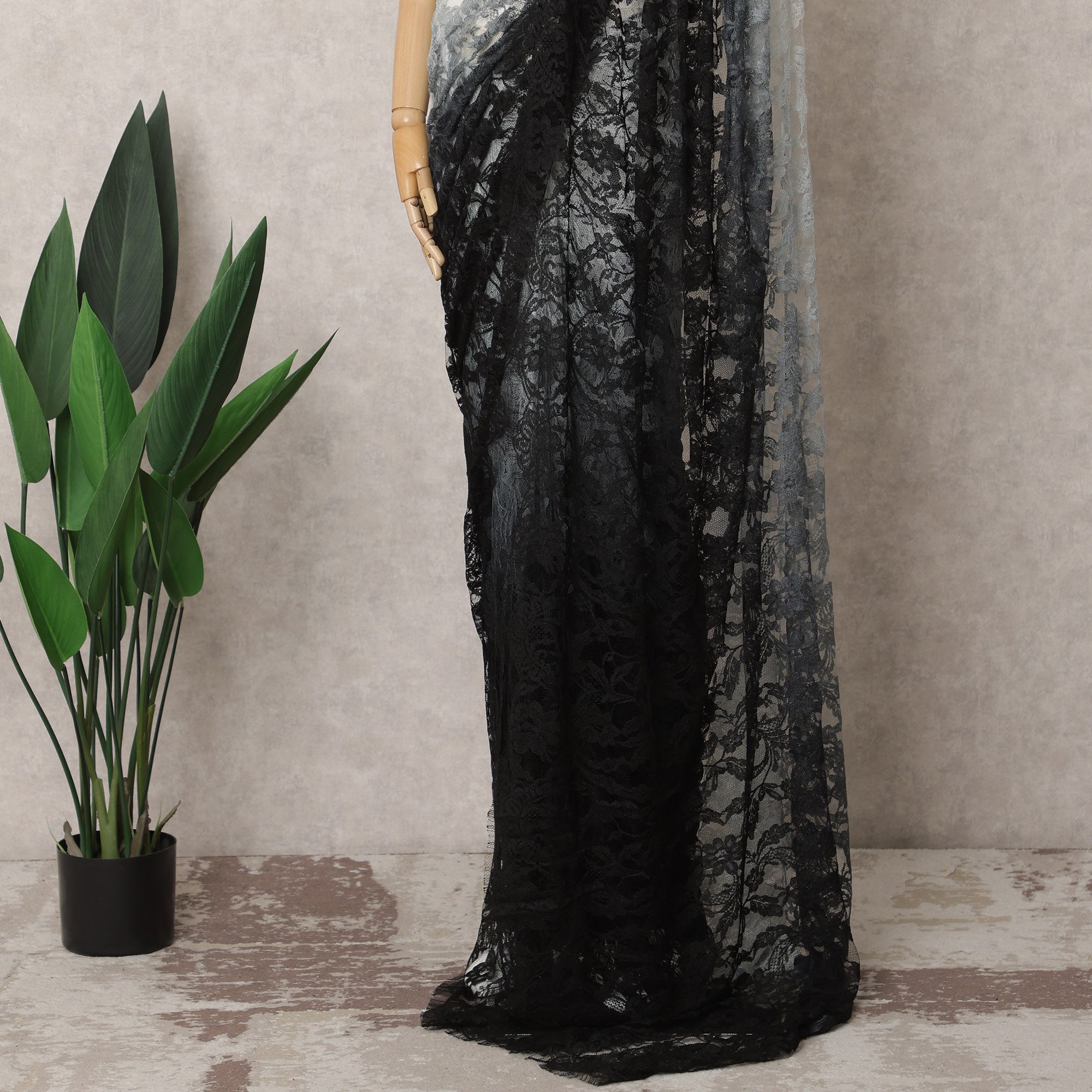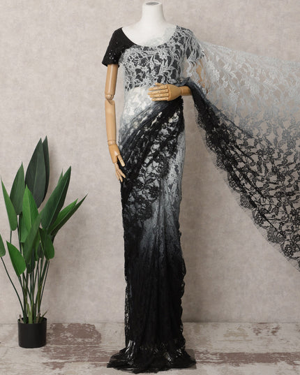 Black & Grey Ombre Premium French Chantilly Lace Saree – 5.5 Meters-D21885