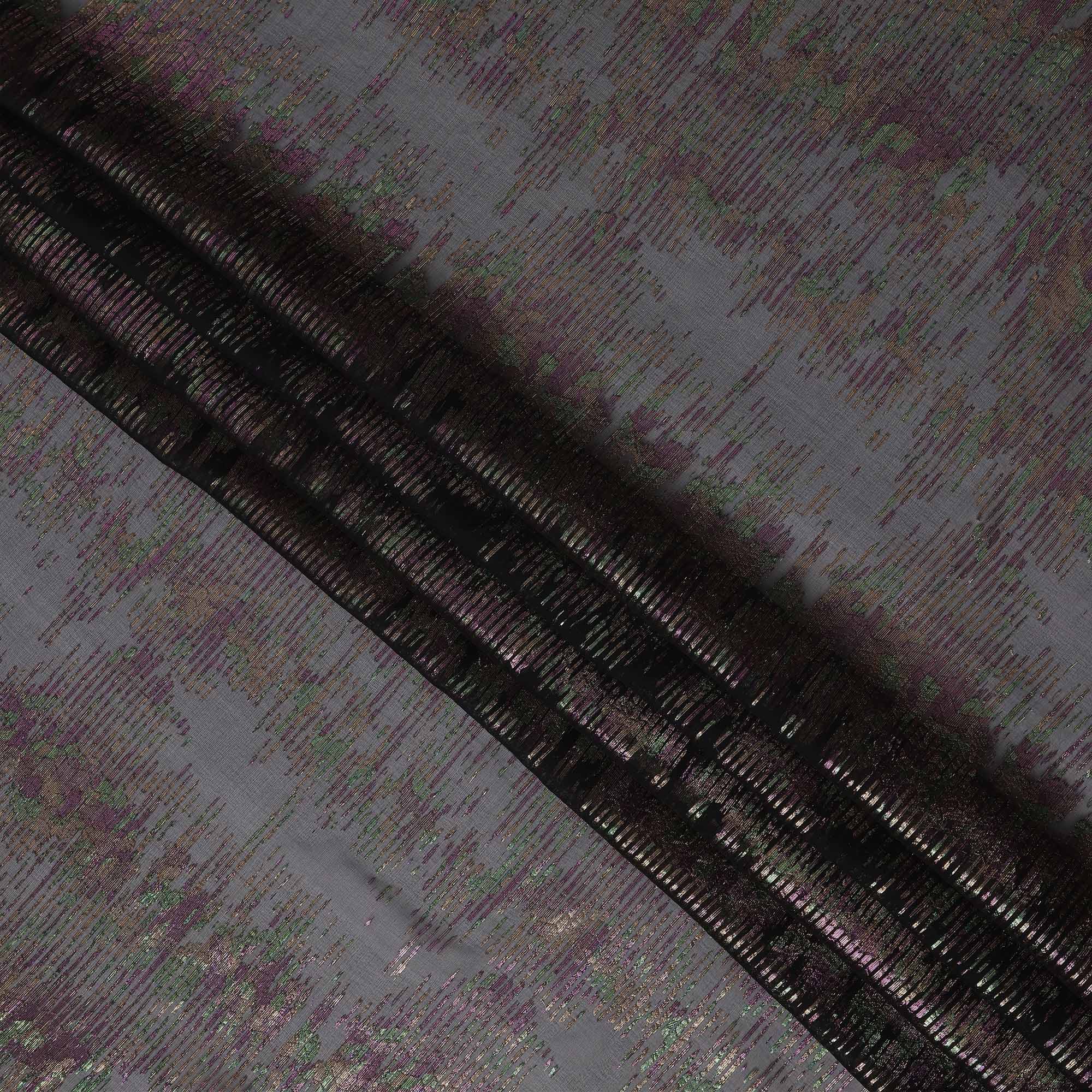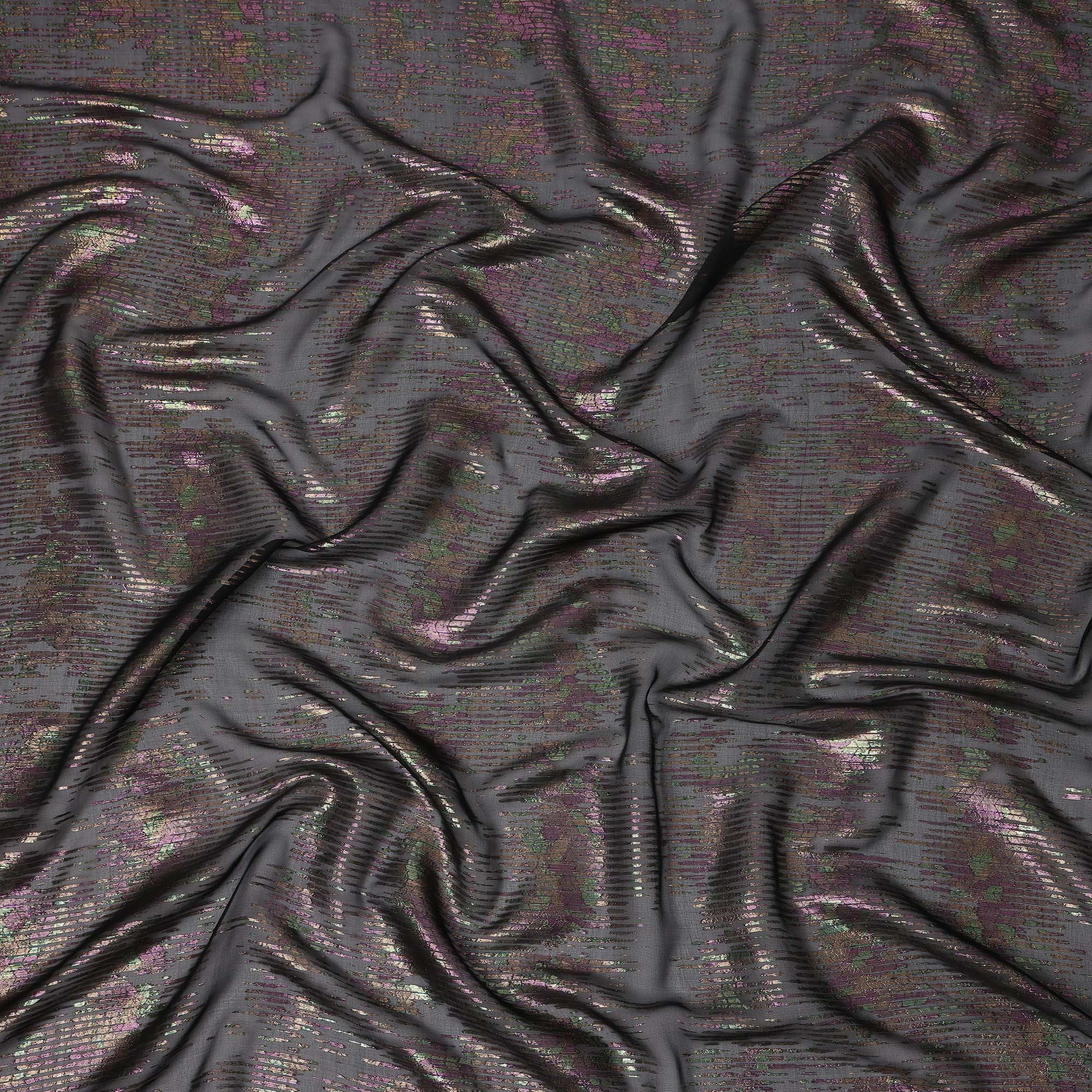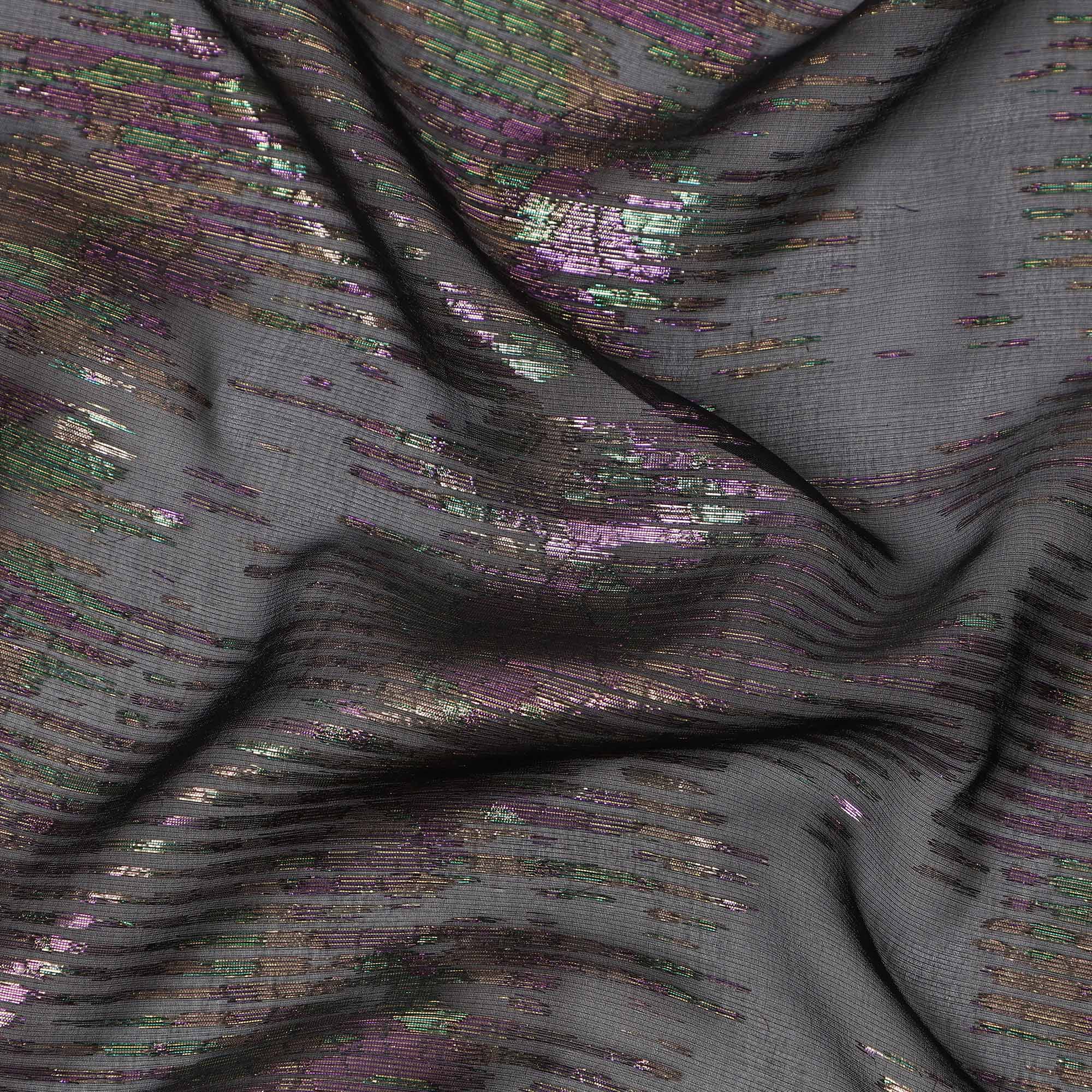 Black Iridescent Pattern Pure Silk Chiffon Fabric with Metallic Lurex, 110 Cms Width, South Korea-D25258