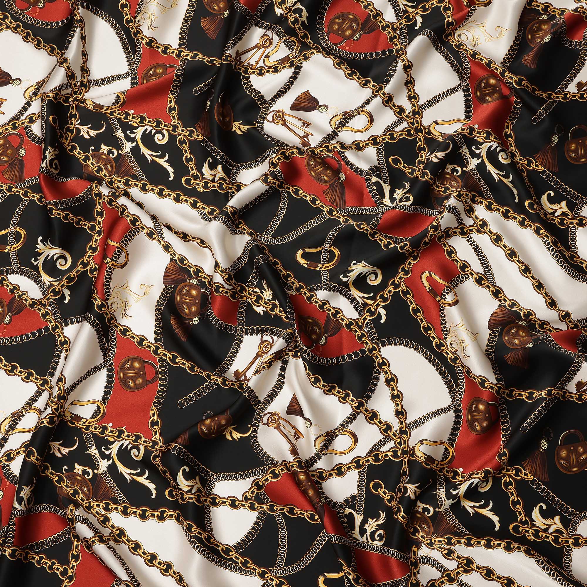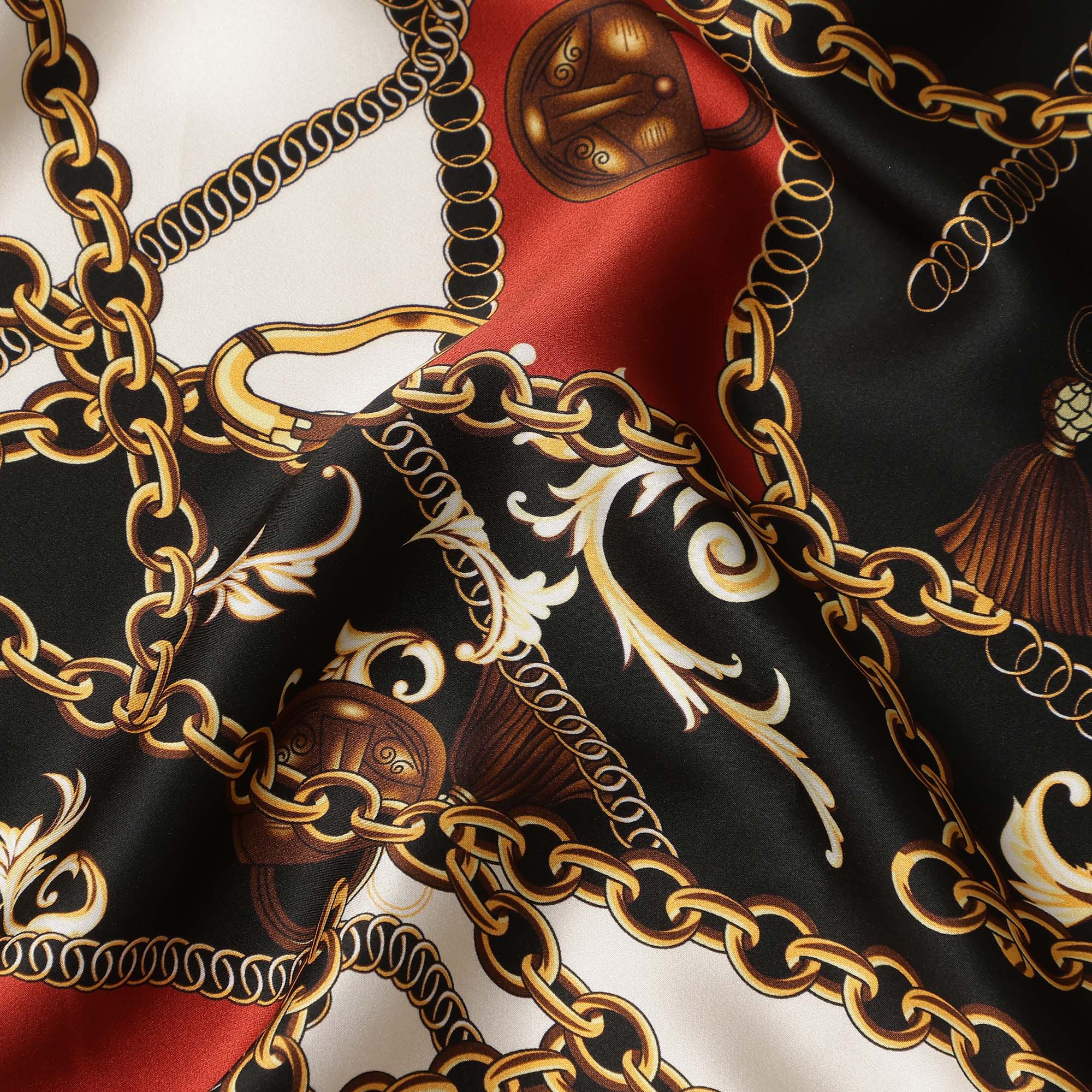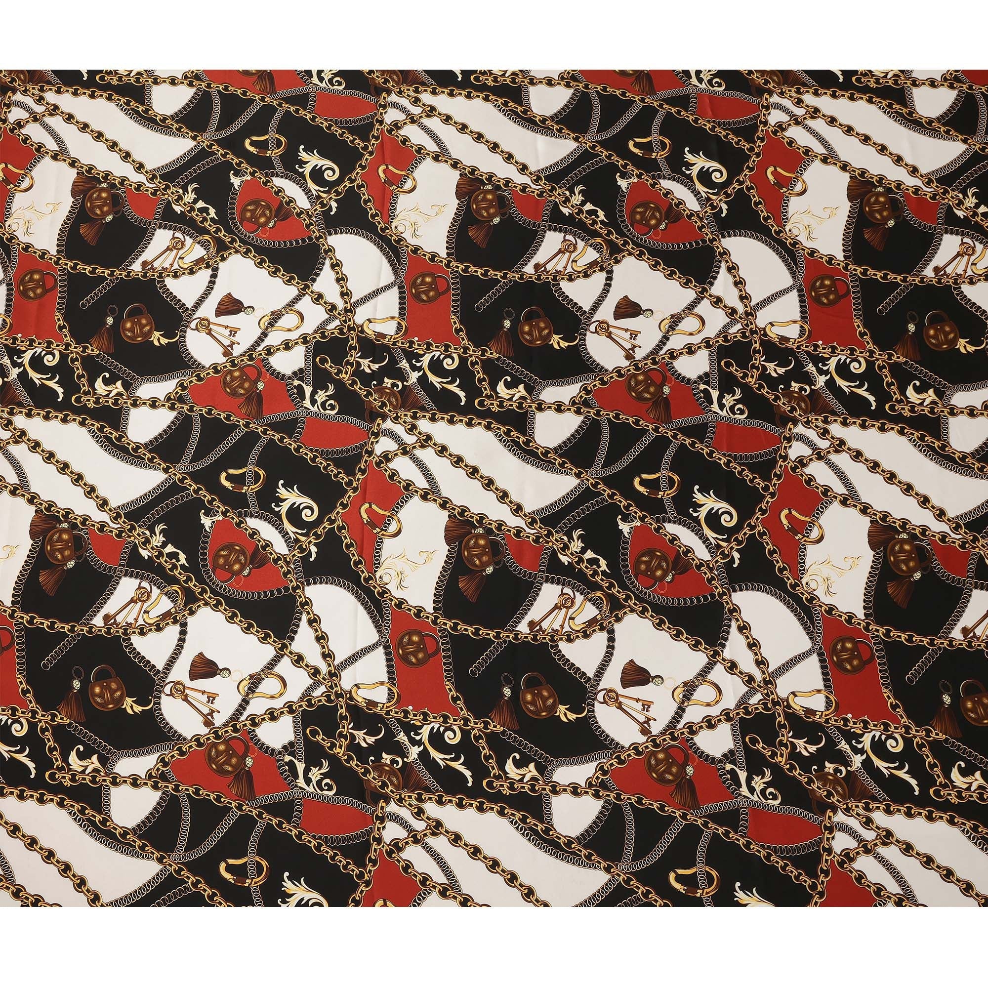 Black Multicolor Chain Print Premium Pure Silk Satin Fabric Smooth Lustrous Designer Finish 140 Cms Width, 3.5 Mtrs Piece and Made in Italy-D27191