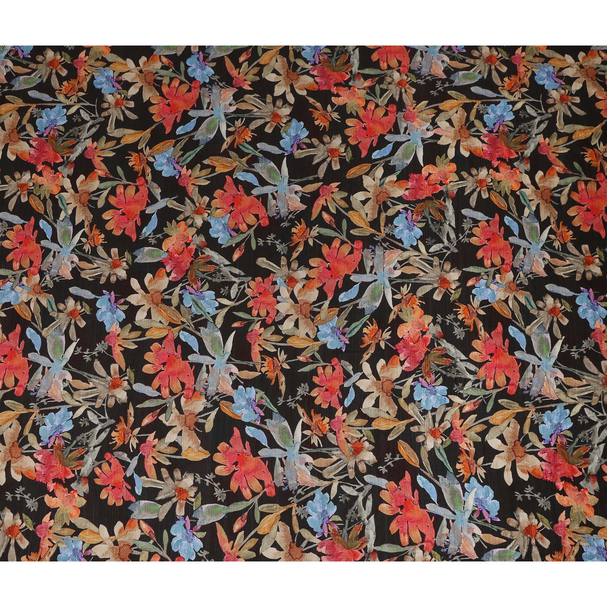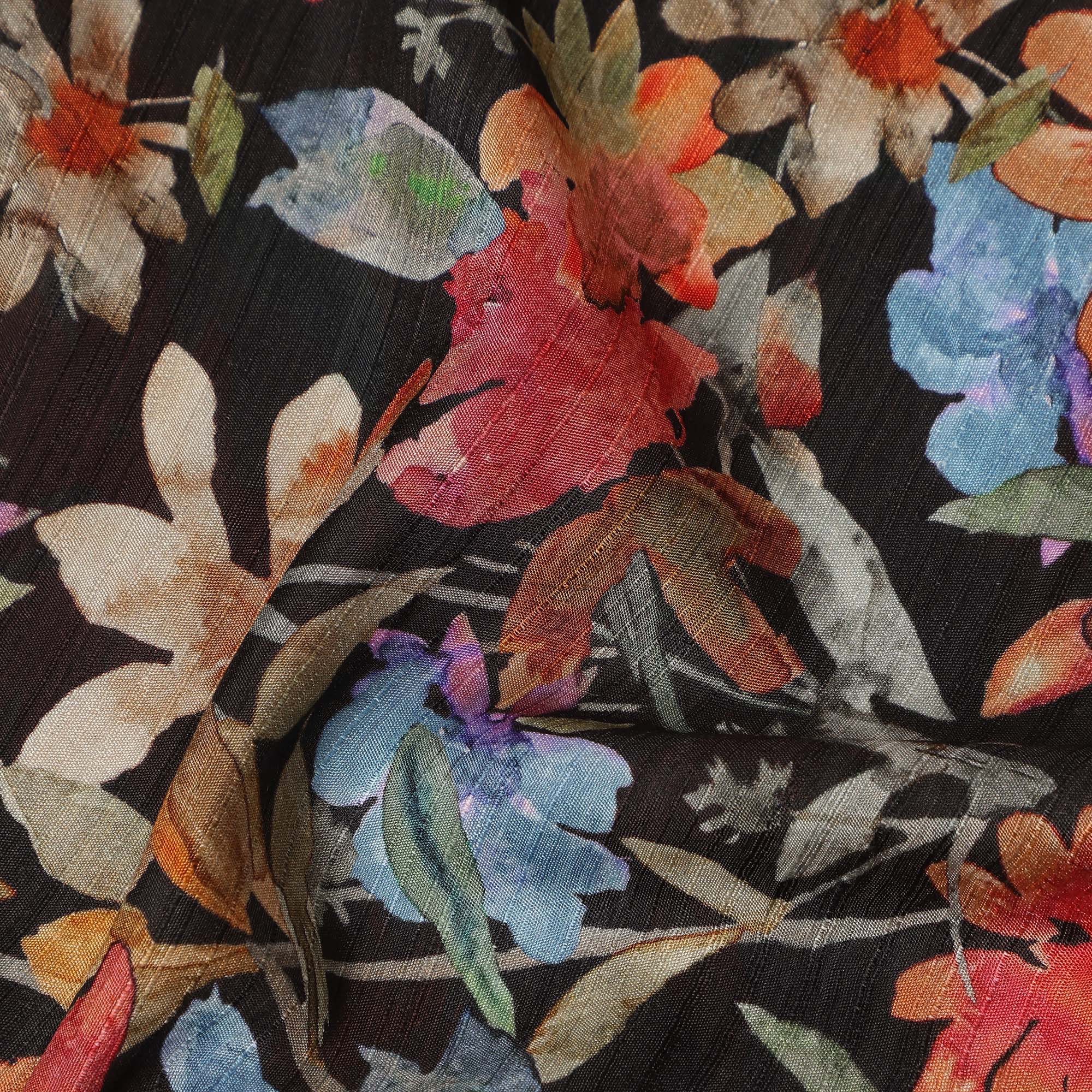 Black Multicolor Watercolor Floral Printed Viscose Crepe Fabric Soft Lightweight Artistic Botanical Flower Print Dressmaking Sewing Craft Fabric 110 Cms Width Made In India-D28343