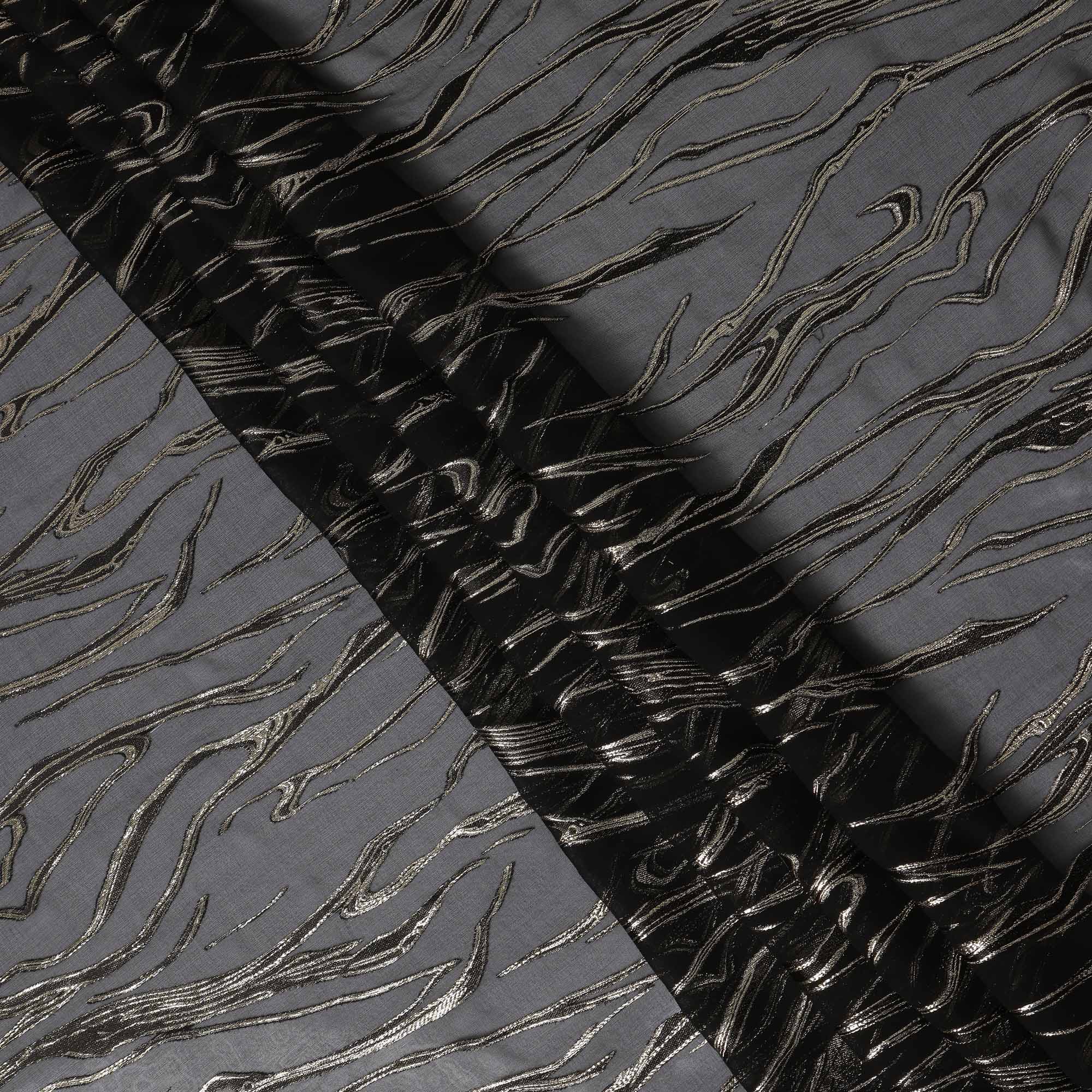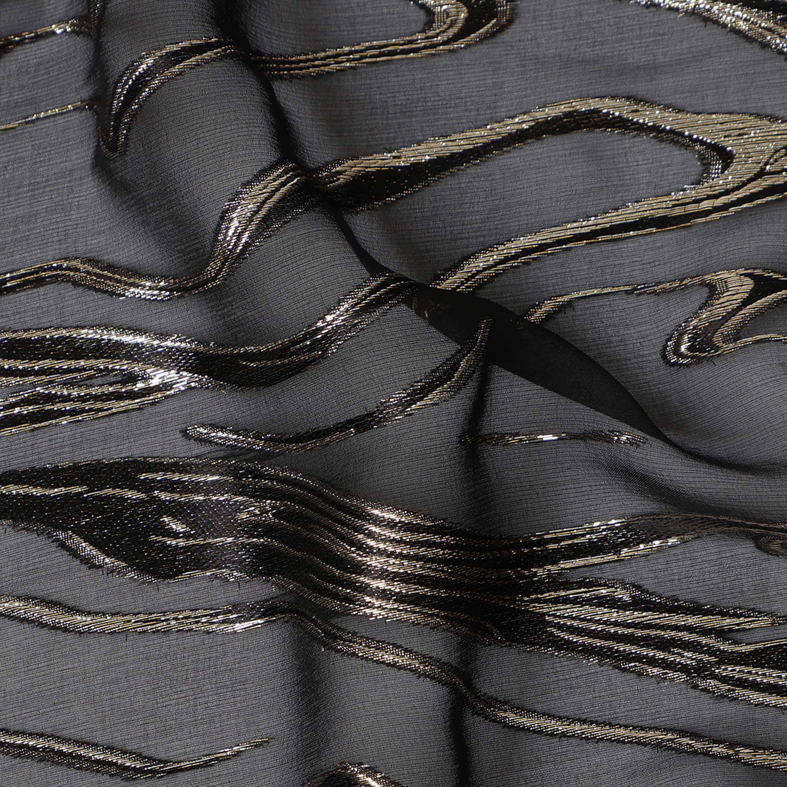Black Premium Pure Silk Chiffon Fabric with metallic lurex woven detailing