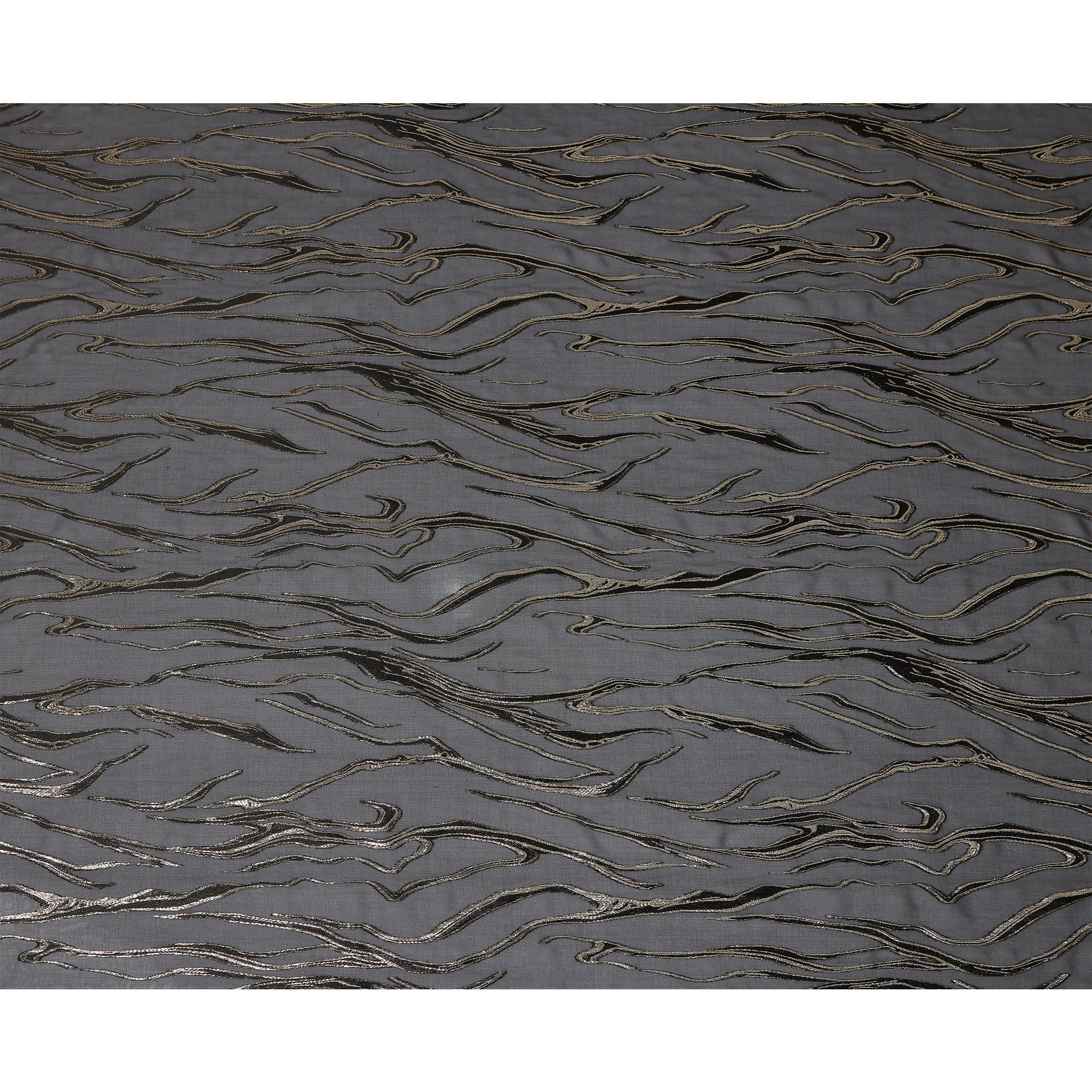 Rich black tone enhanced with shimmering metallic threads for added depth