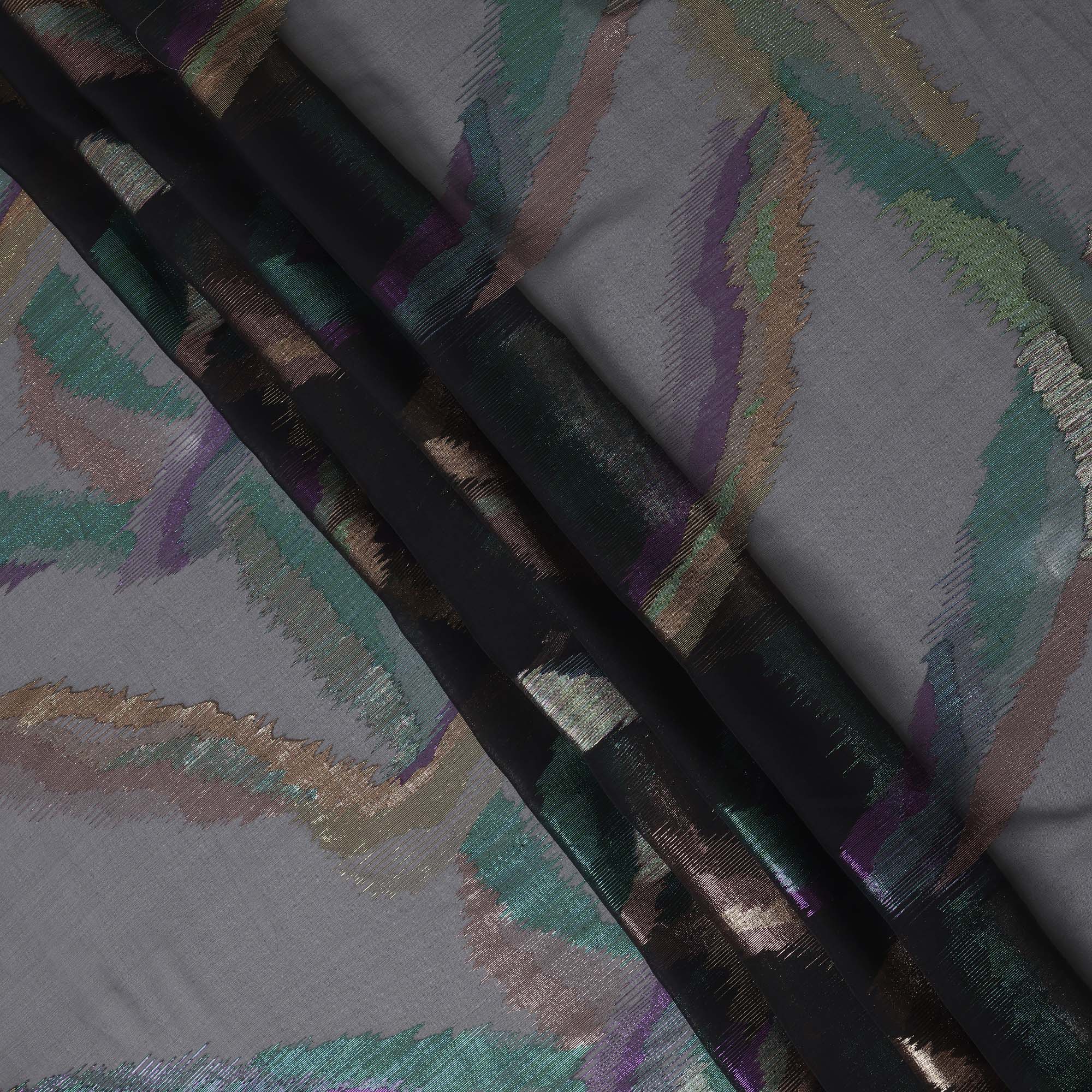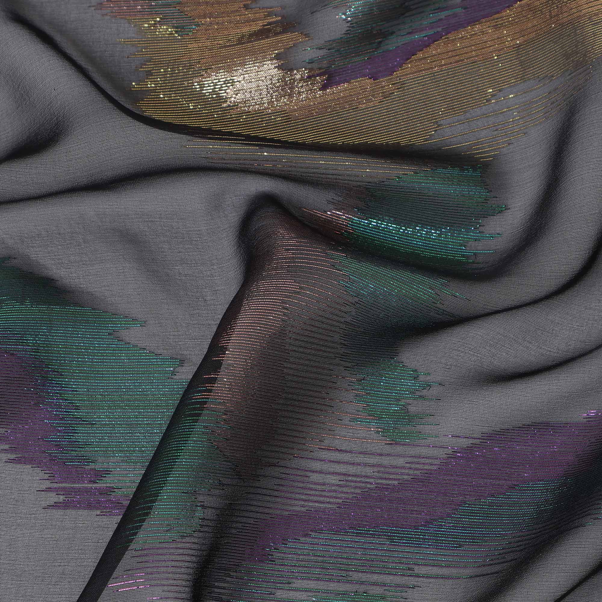 Black Premium Pure Silk Chiffon Fabric with multicolor metallic lurex woven detailing
