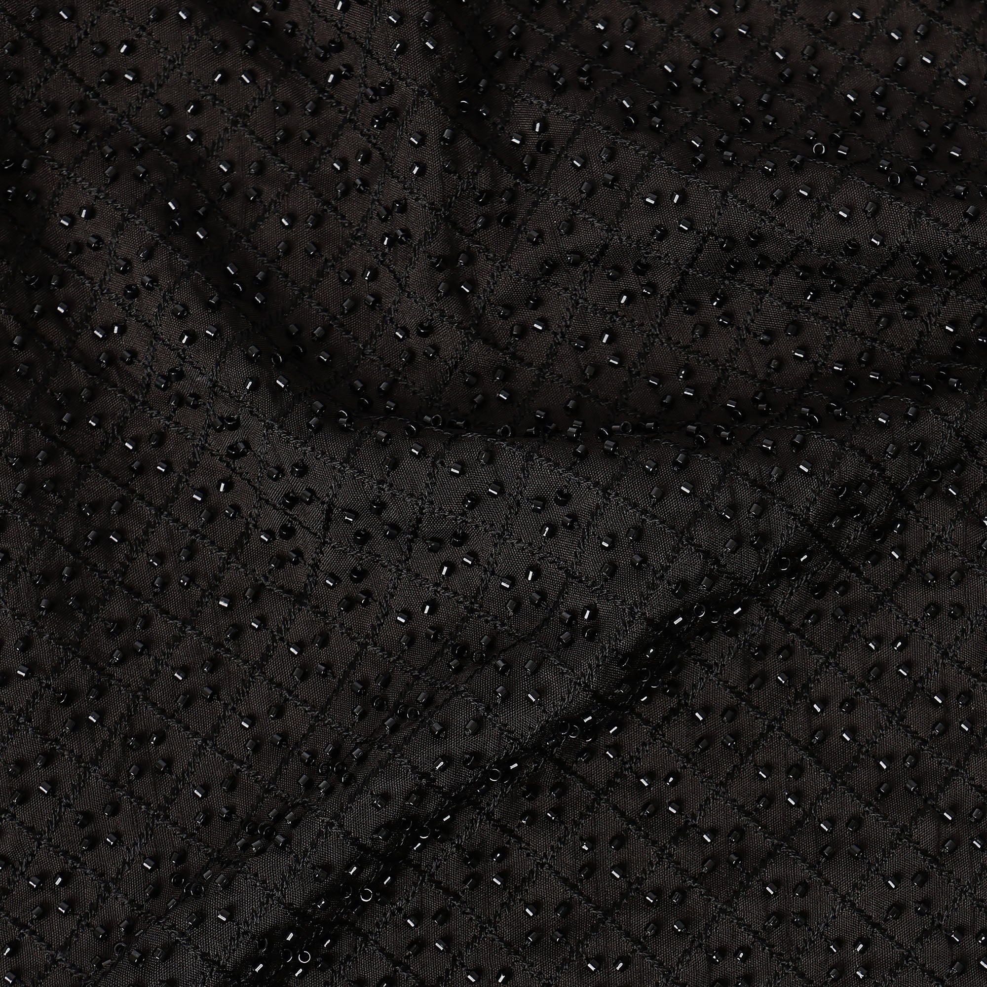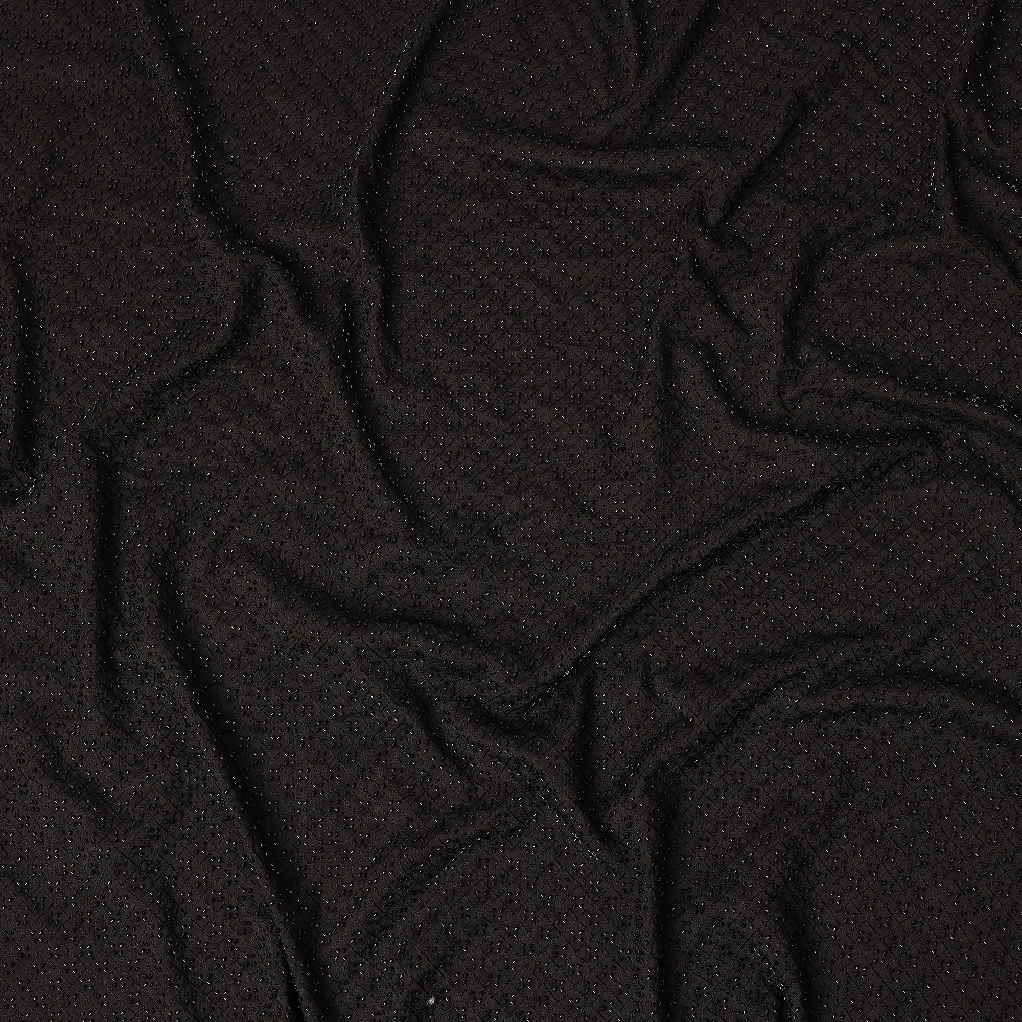 Black Self-Embroidered Diamond Pattern Synthetic Viscose Fabric, 110 Cms Width, Made in India-D26373