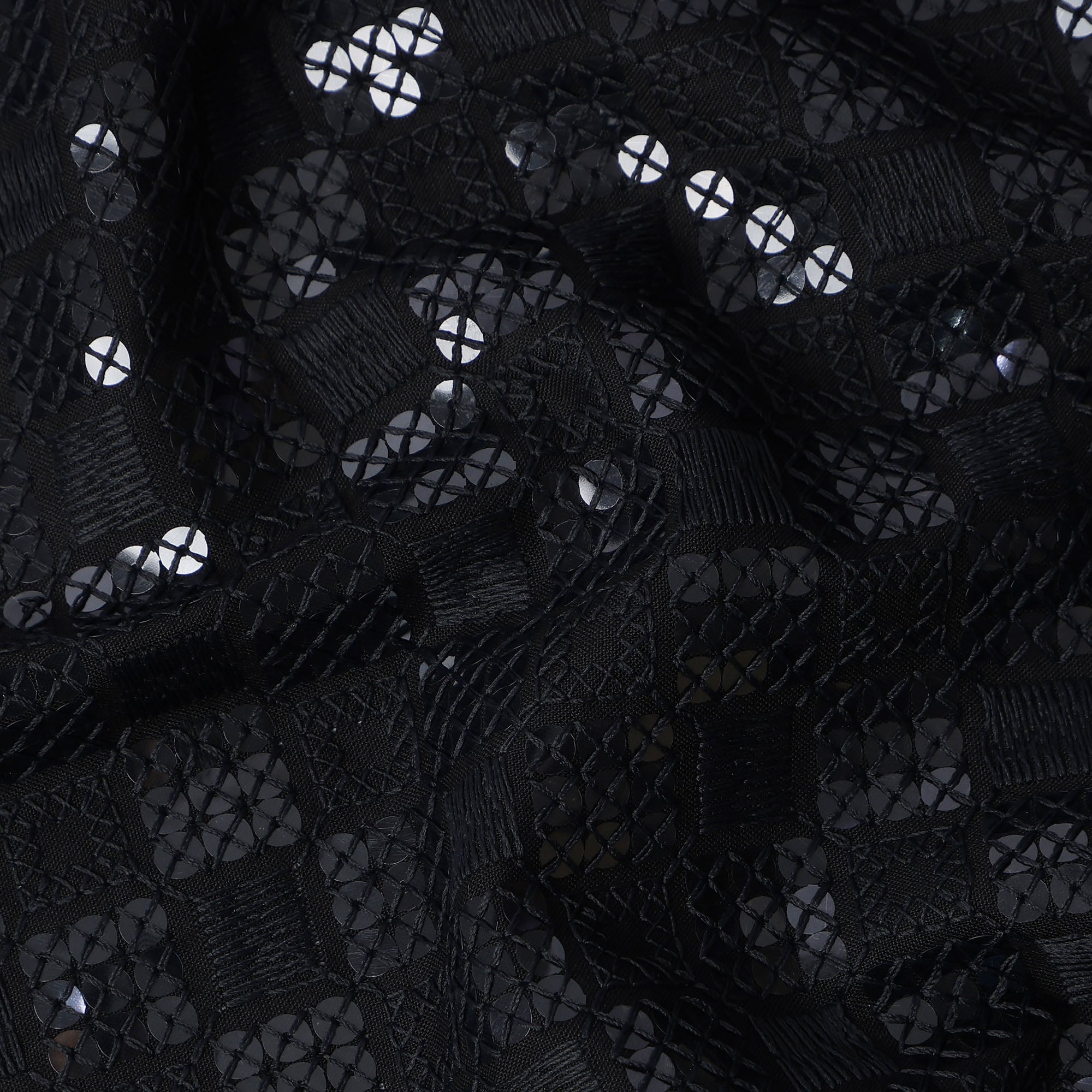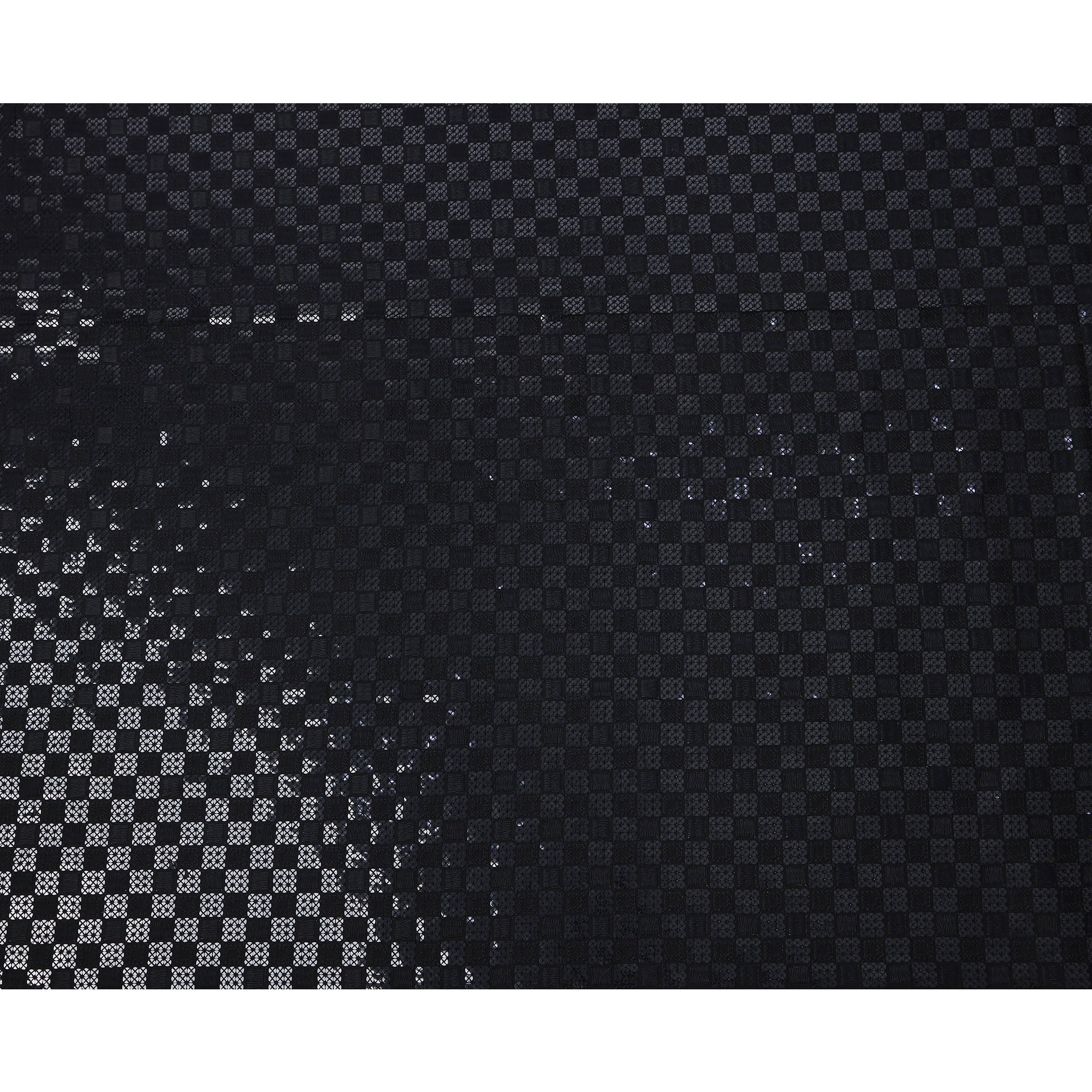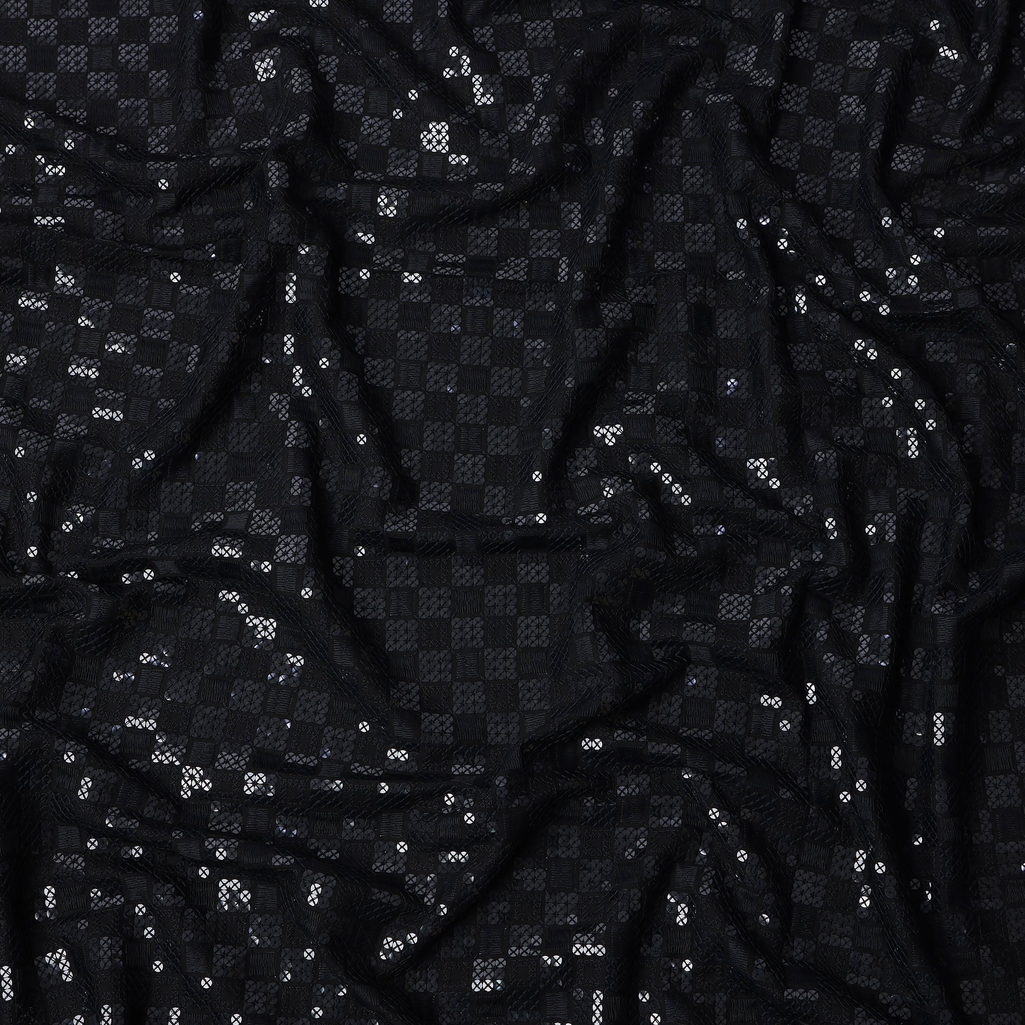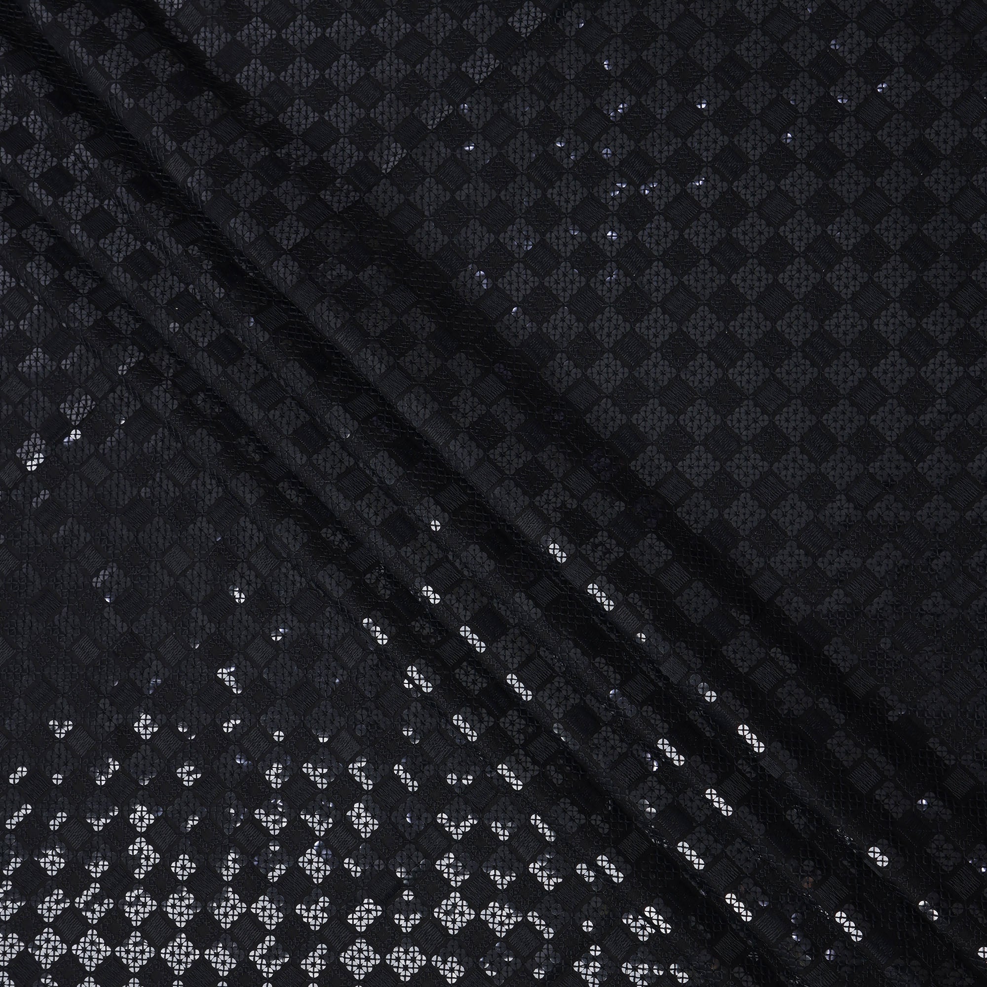 Black Sequin Checkered Self Design Synthetic Cotton Fabric, 140 Cms, India-D25393