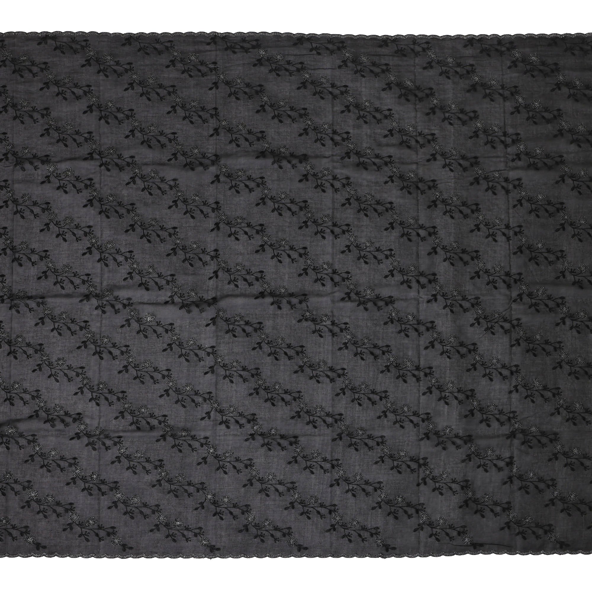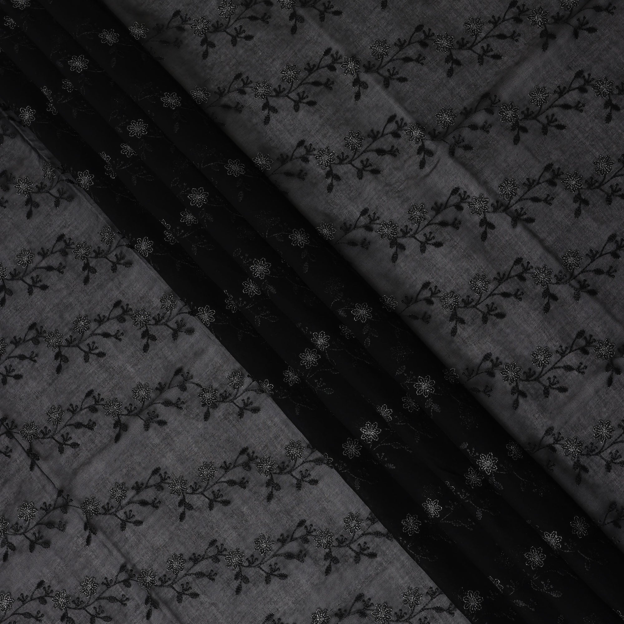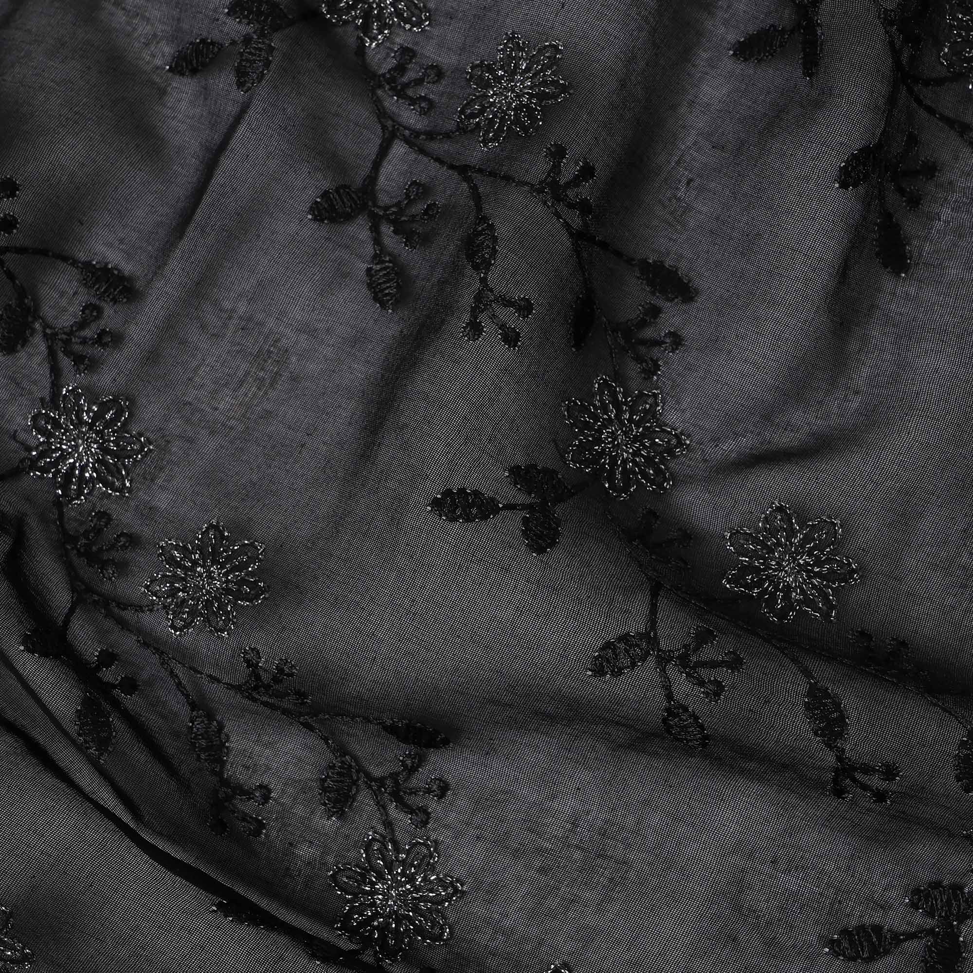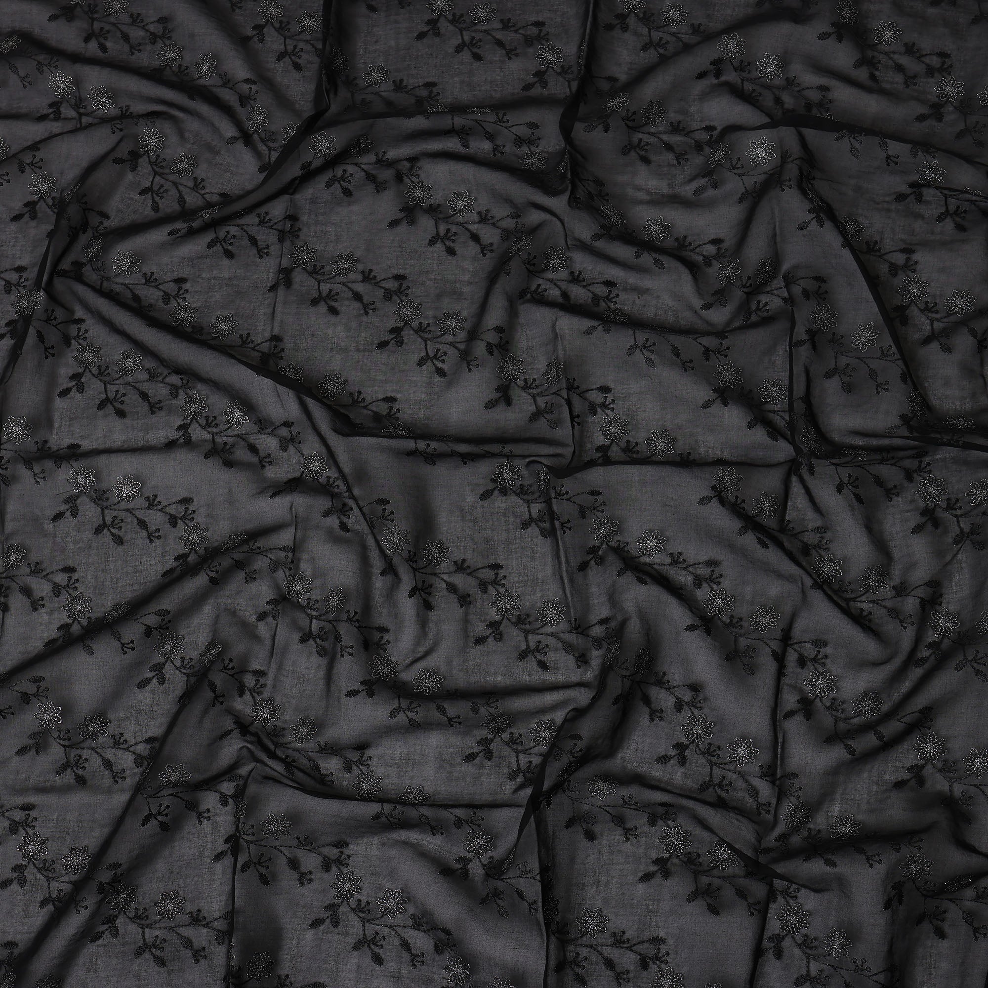 Black Traditional Sudanese Thobe Fabric with Black Floral Embroidery, Pure Cotton Voile, 4.5 Mtrs Length, 140 Cms Width, Made in India-D26394