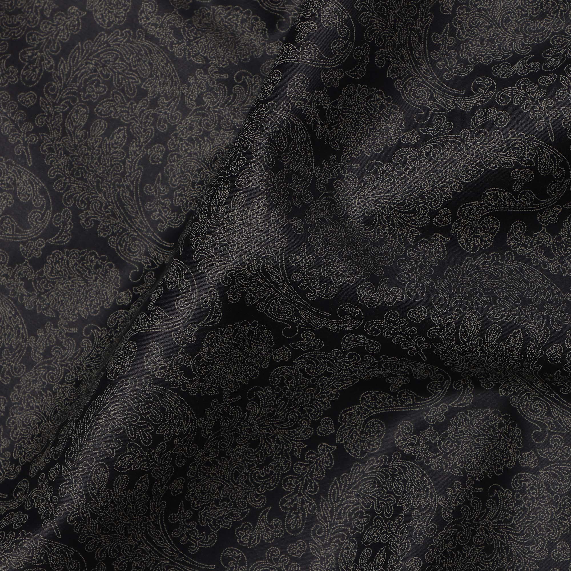 Black with Gold Paisley Print Blended Cotton Shirting Fabric, 150 Cms, India-D25148