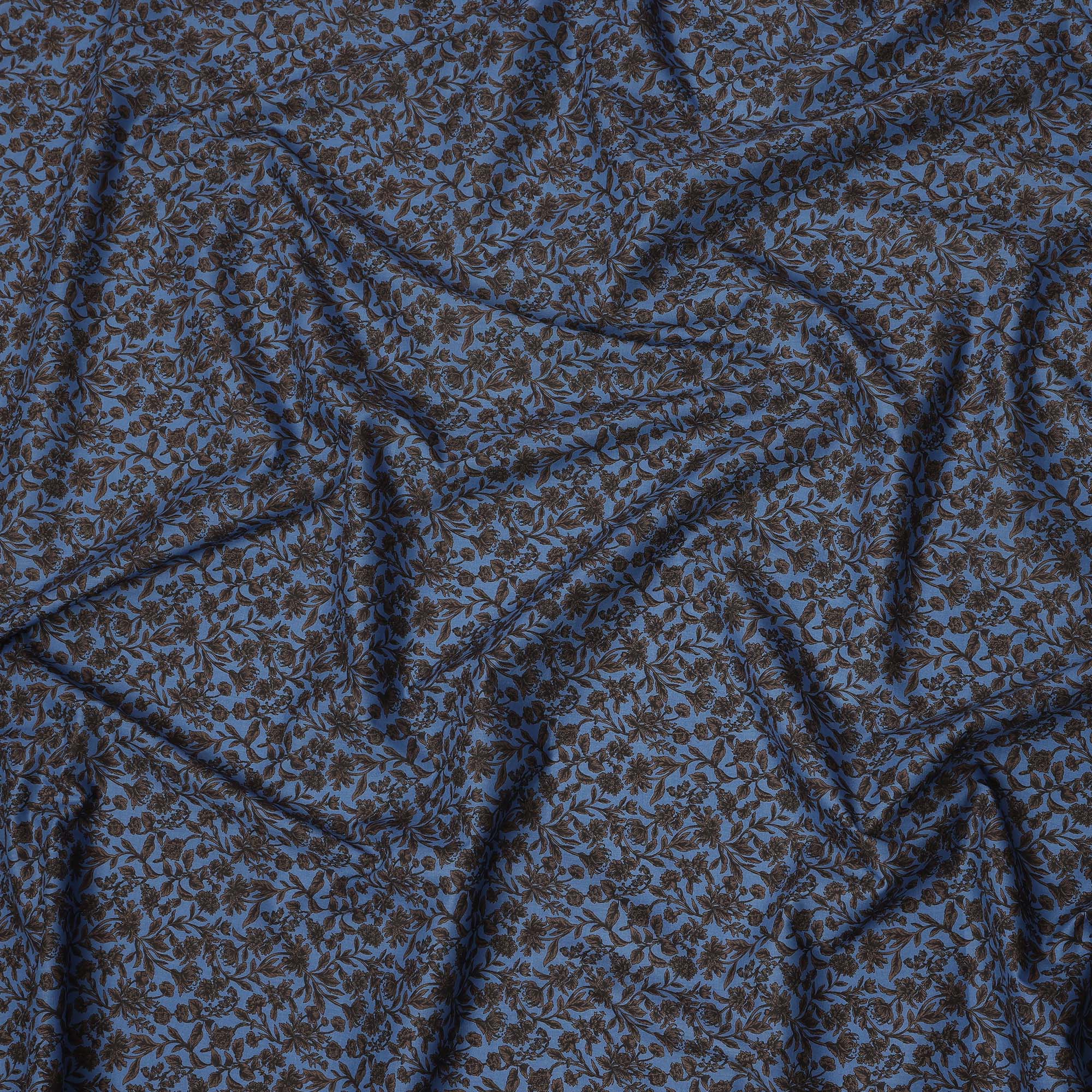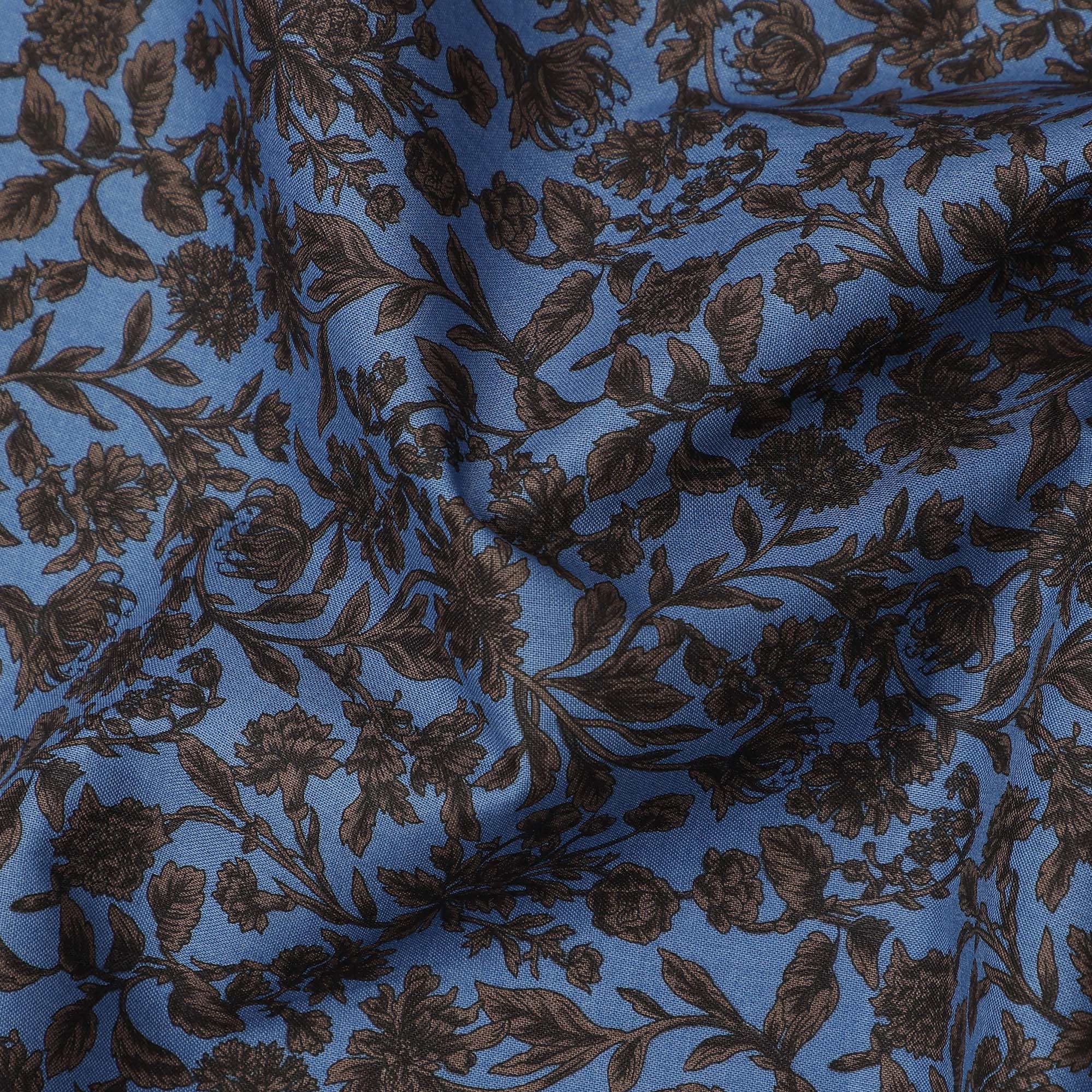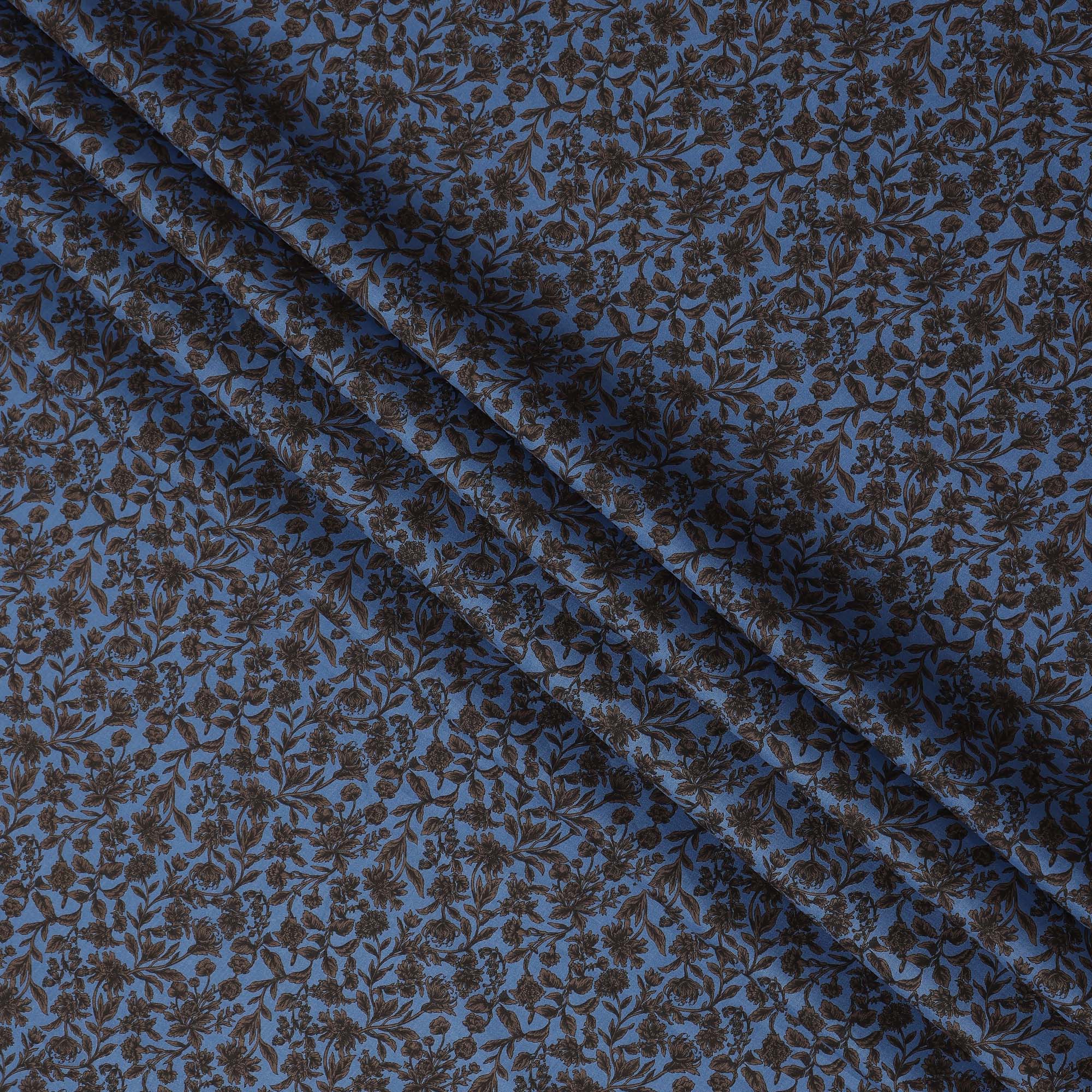Blue Brown Floral Print Cotton Lawn Fabric – Delicate Botanical Design, 110 cm Width, Made in Japan-D26827