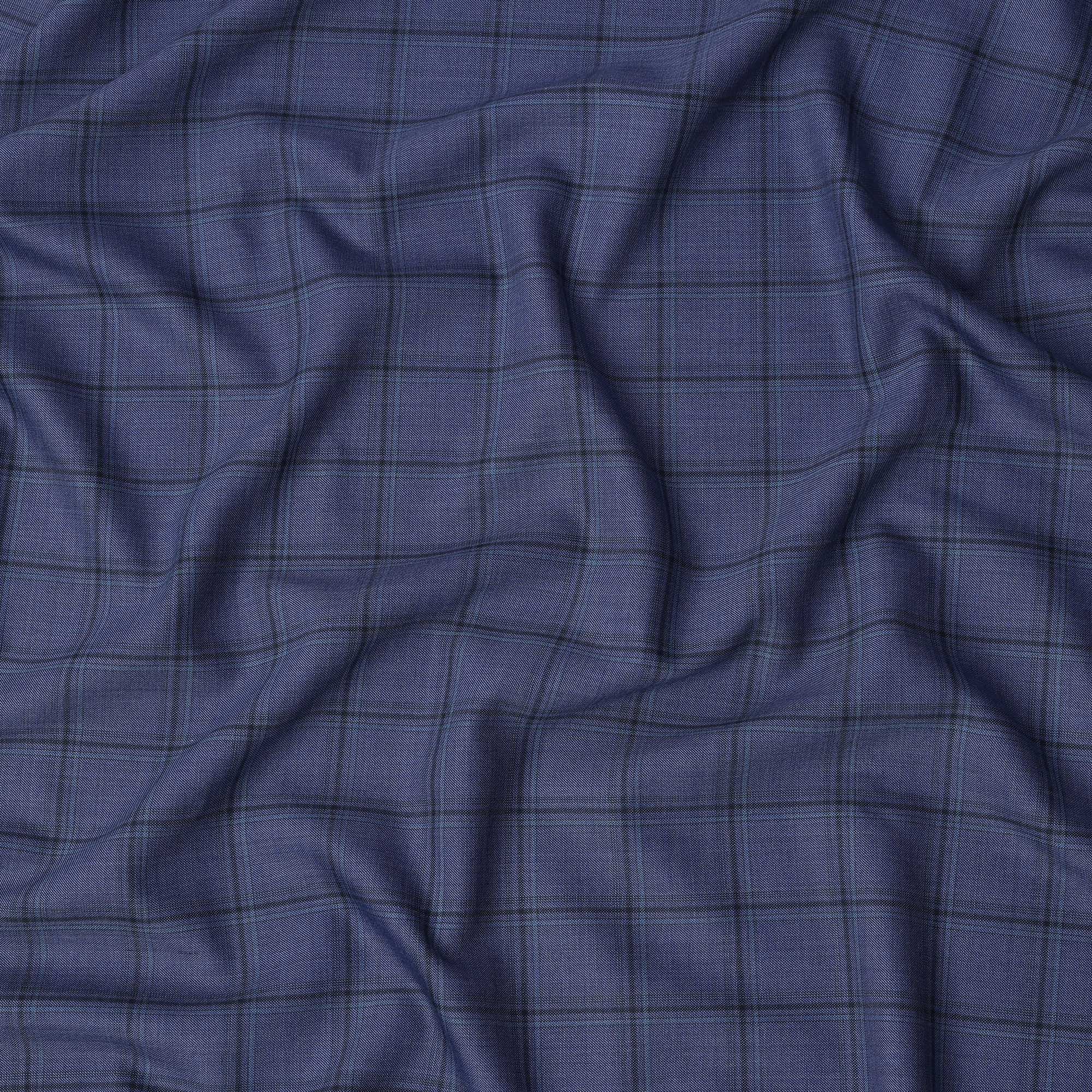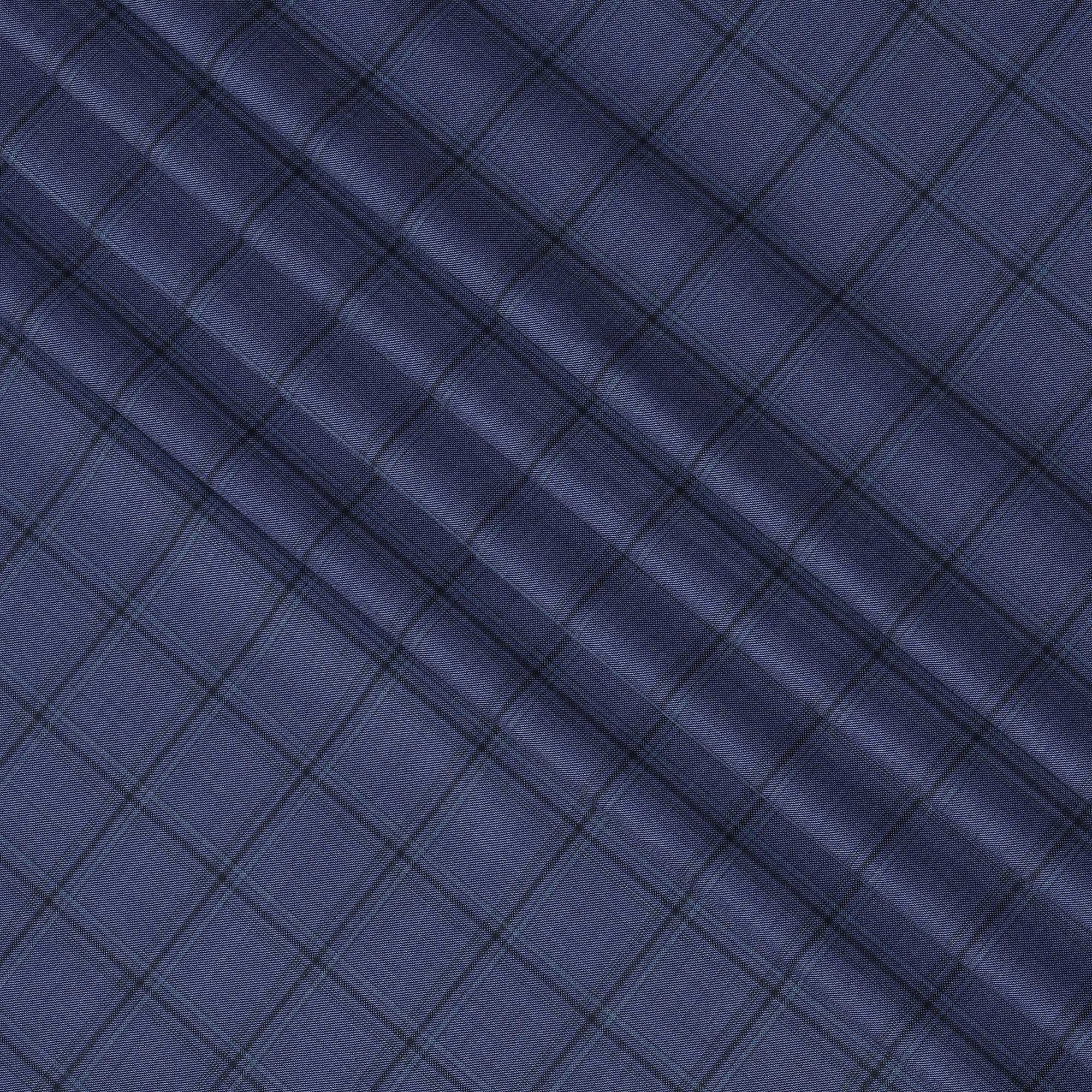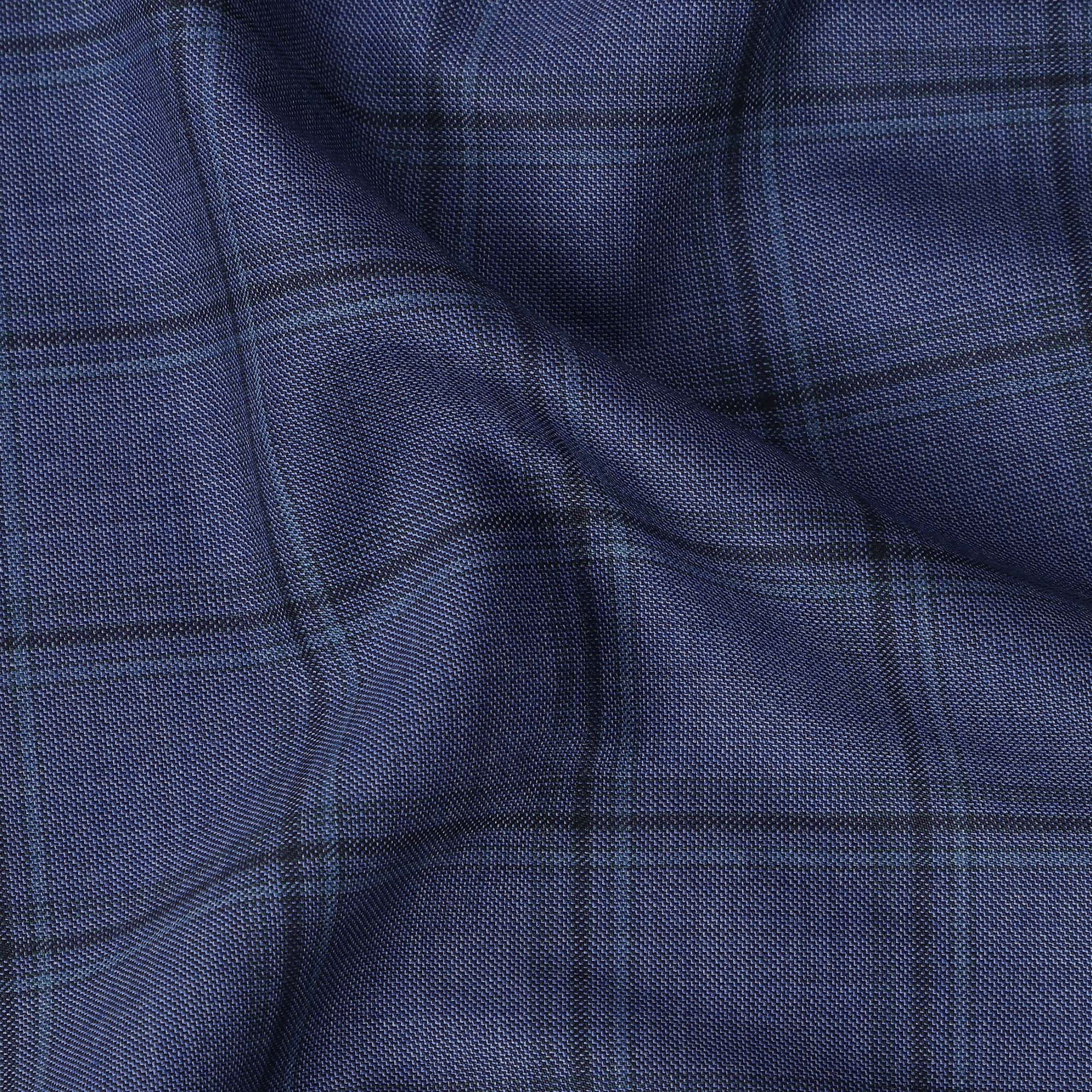 Blue Check Premium Super 130's Italian All Wool Suiting Fabric, Width 150 Cms, 3.50 Mtrs, Italy-D25452