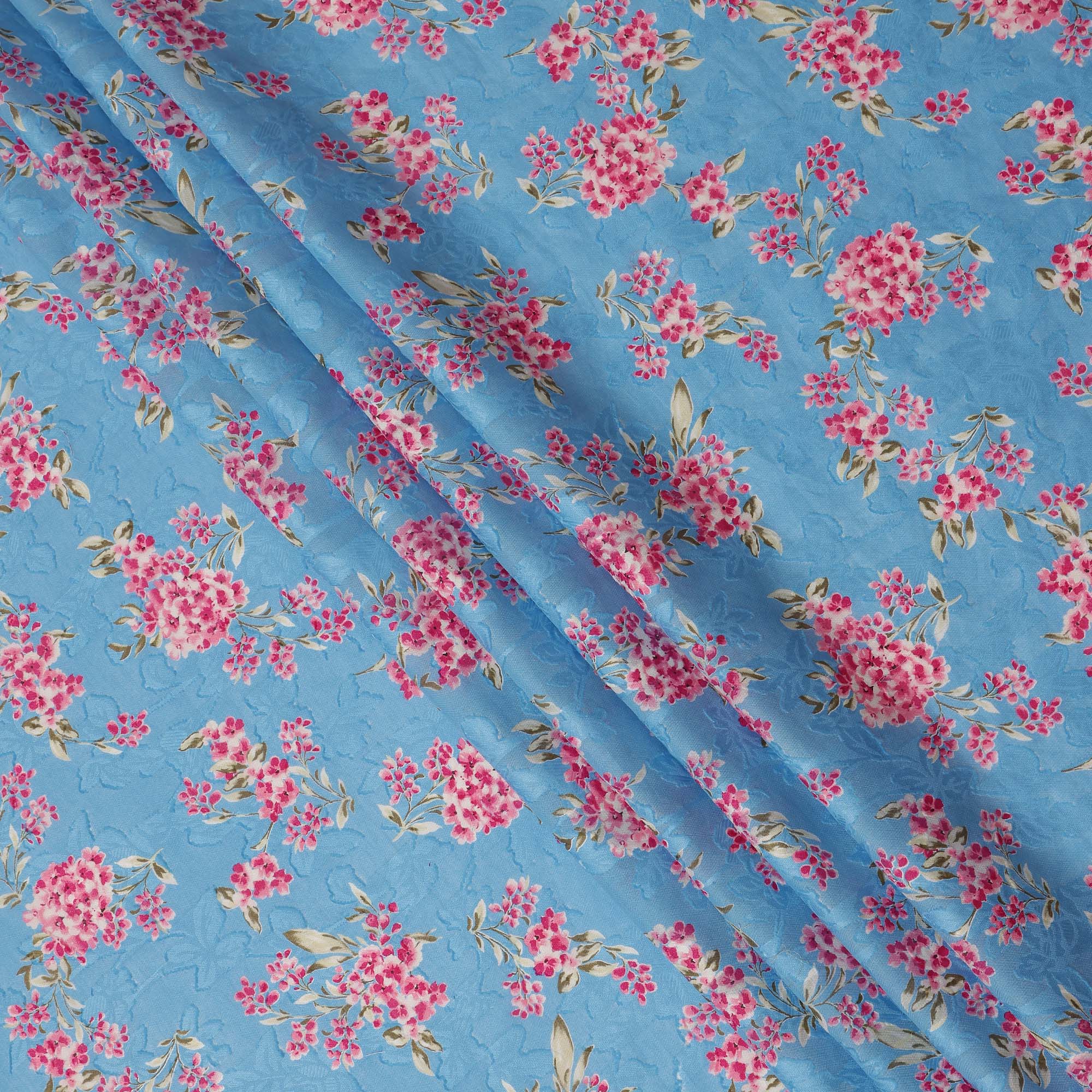 Refreshing blue base highlighted with vibrant pink and magenta floral prints
