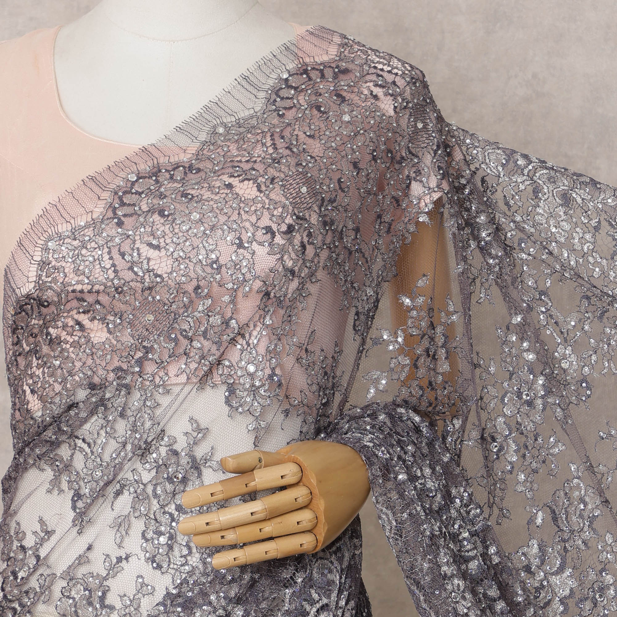 Authentic French Chantilly lace with metallic threads and stone embellishments